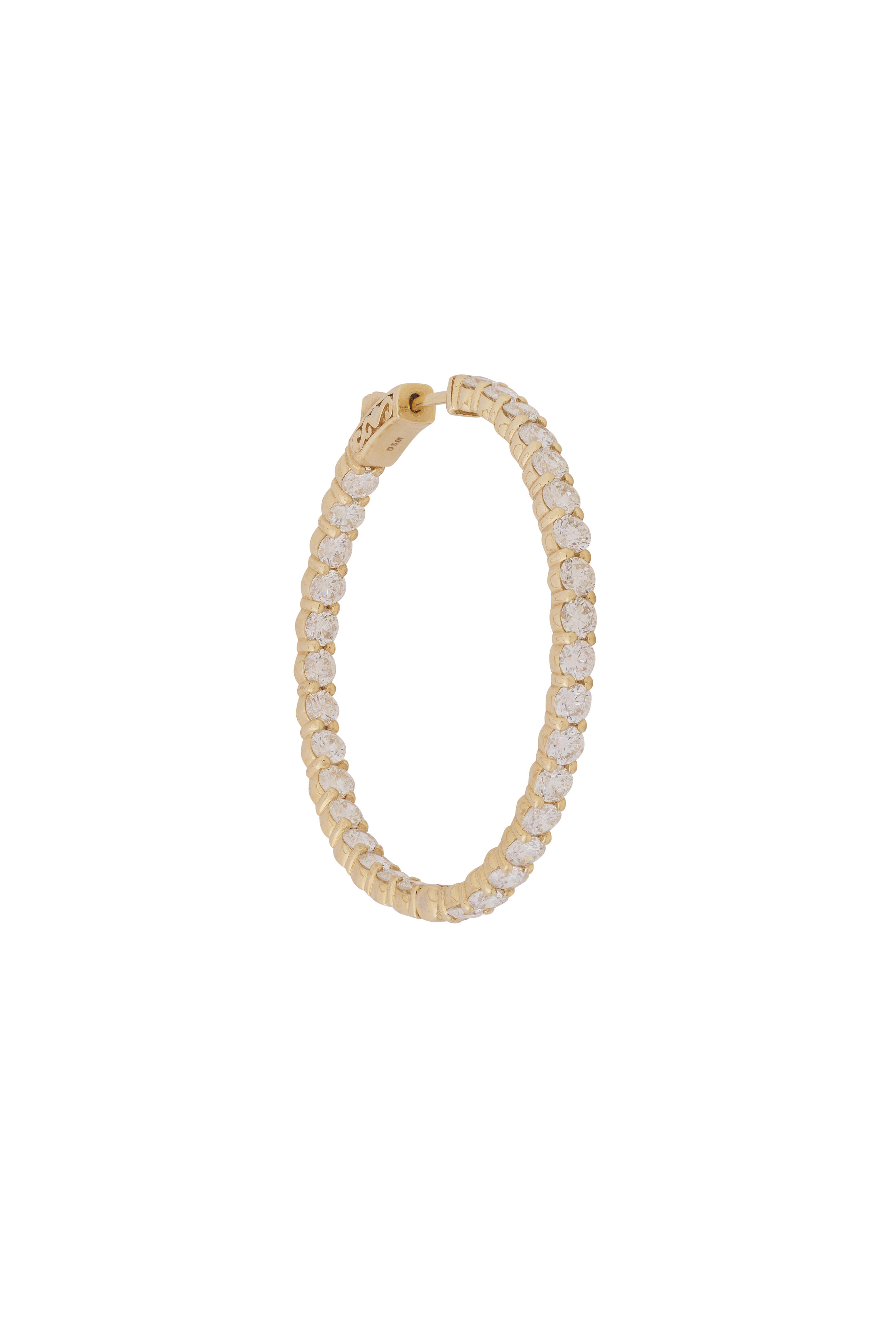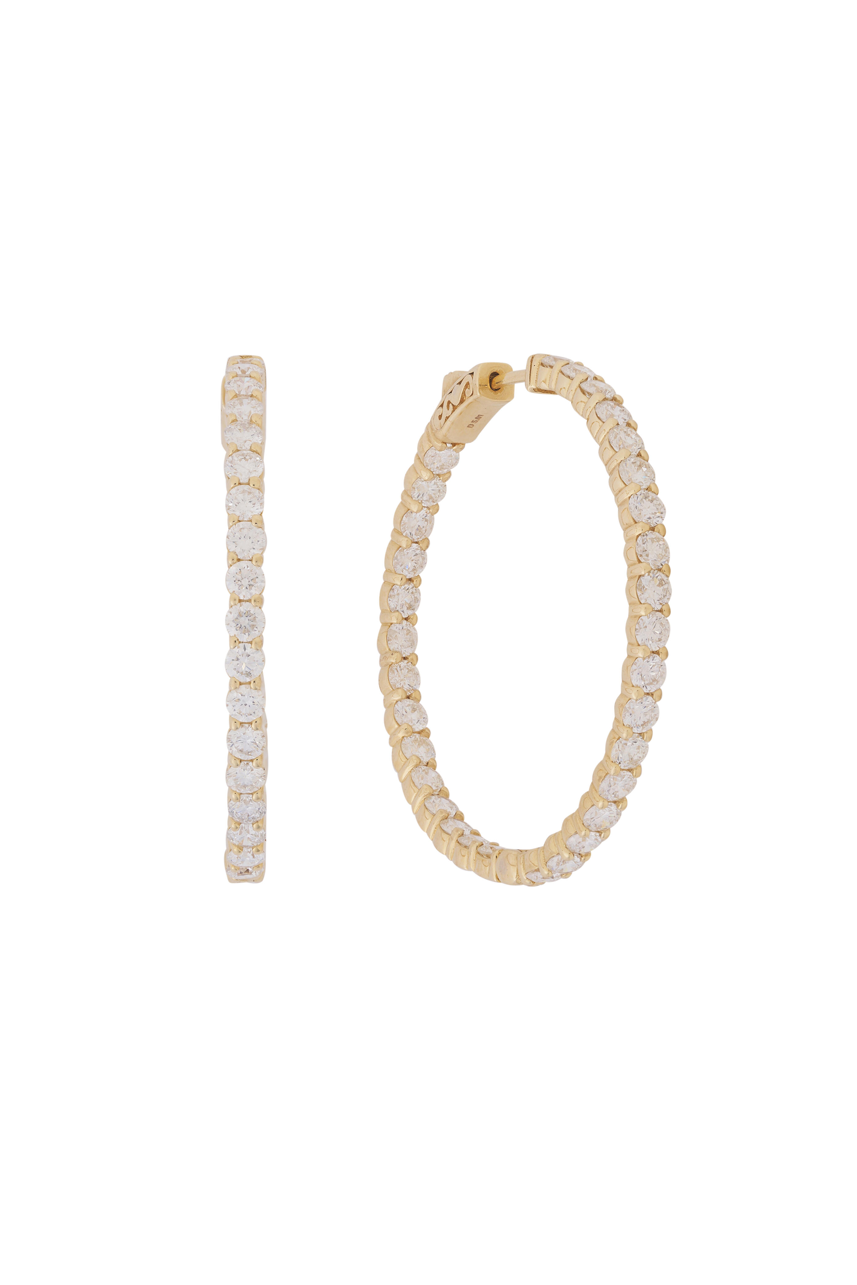 14k Yellow Gold Diamond Hoops