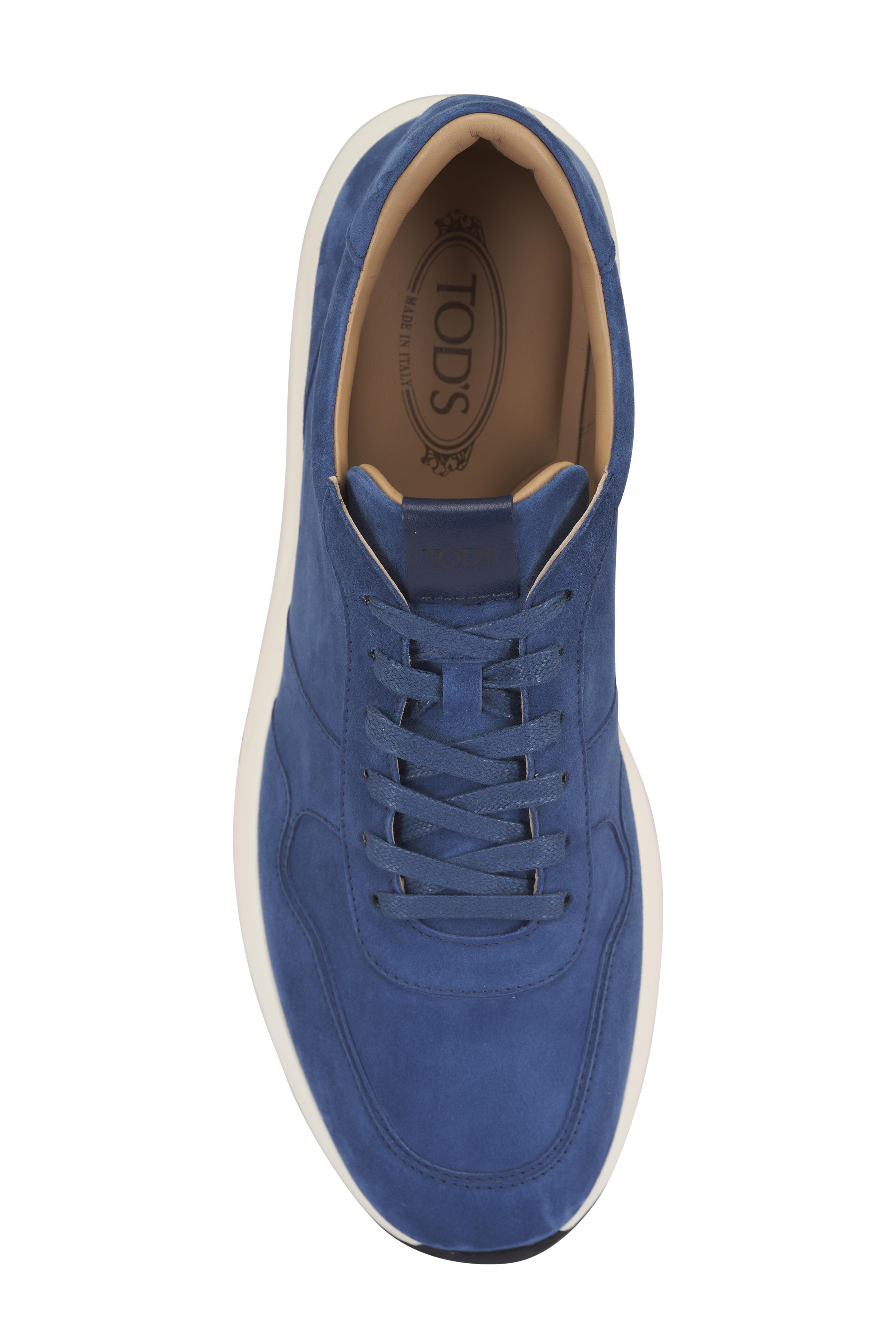 Suede upper. Tapered toe. Lace up closure. Leather lining and insole. Rubber pebble sole. Made in Italy.