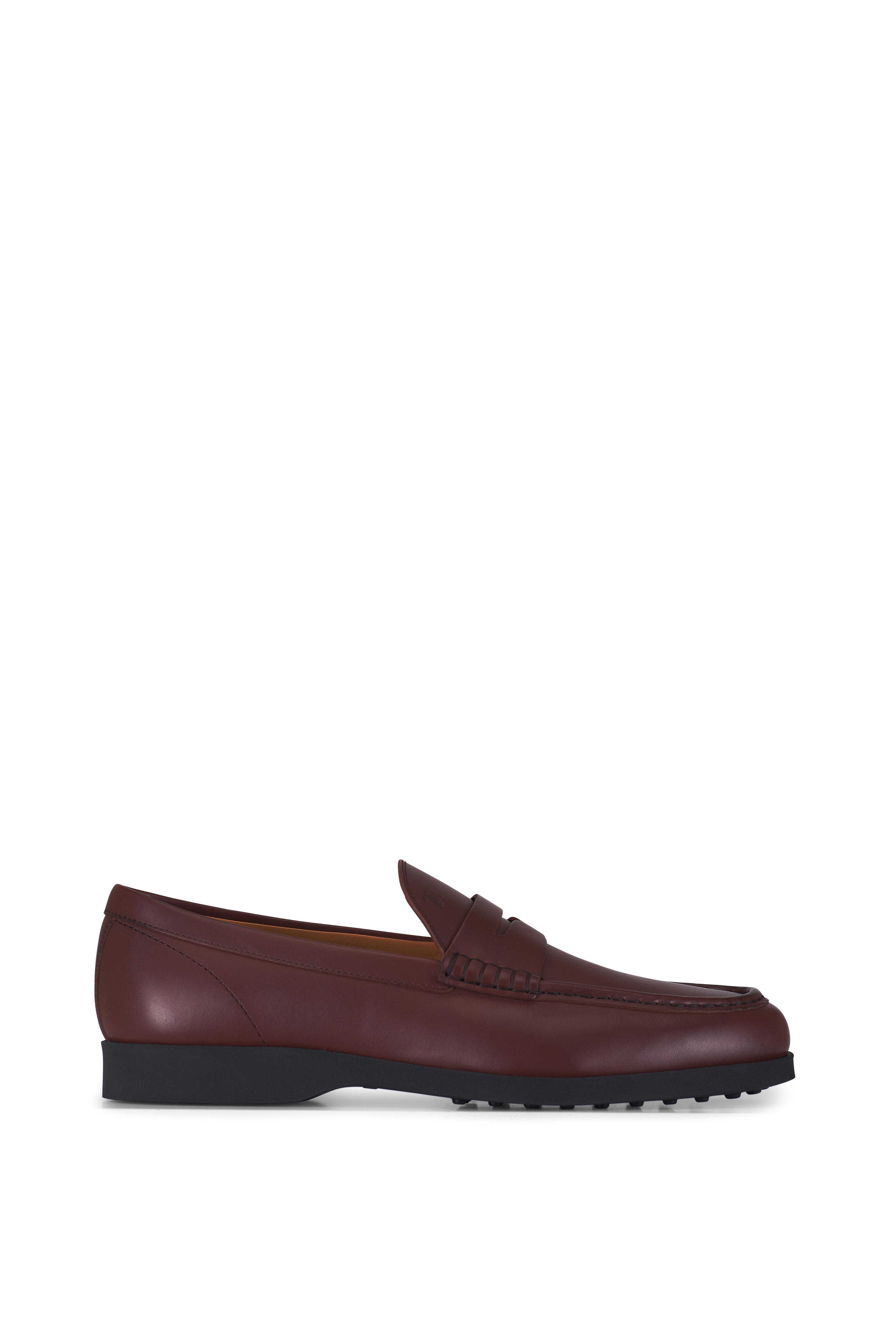 Leather upper. Round toe. Penny strap at vamp. Leather lining and insole. Pebbled rubber sole. Made in Italy.