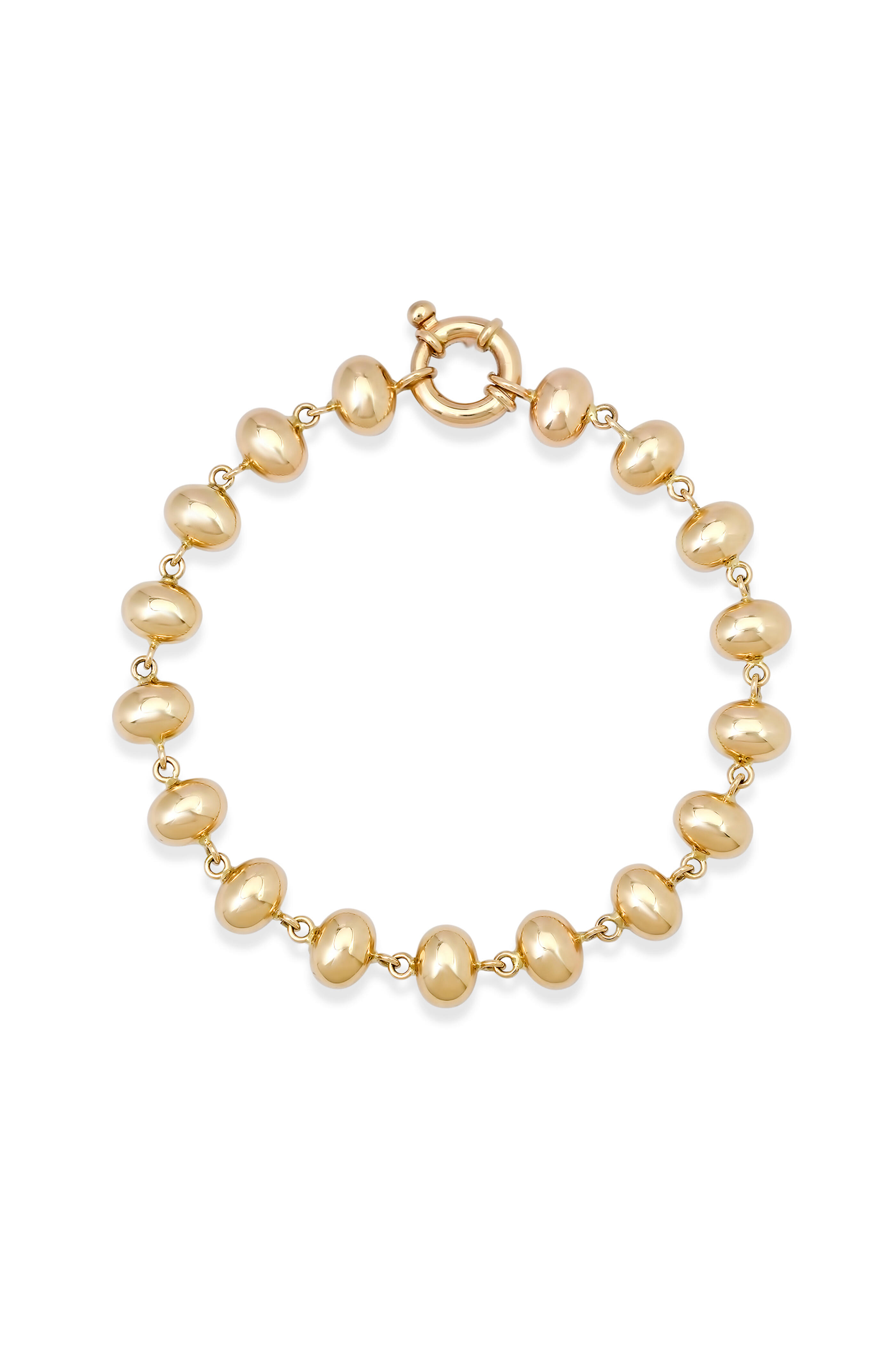 14k Yellow Gold. 7" length. Compatible with small and mini pendants. Width measures 7.68mm.