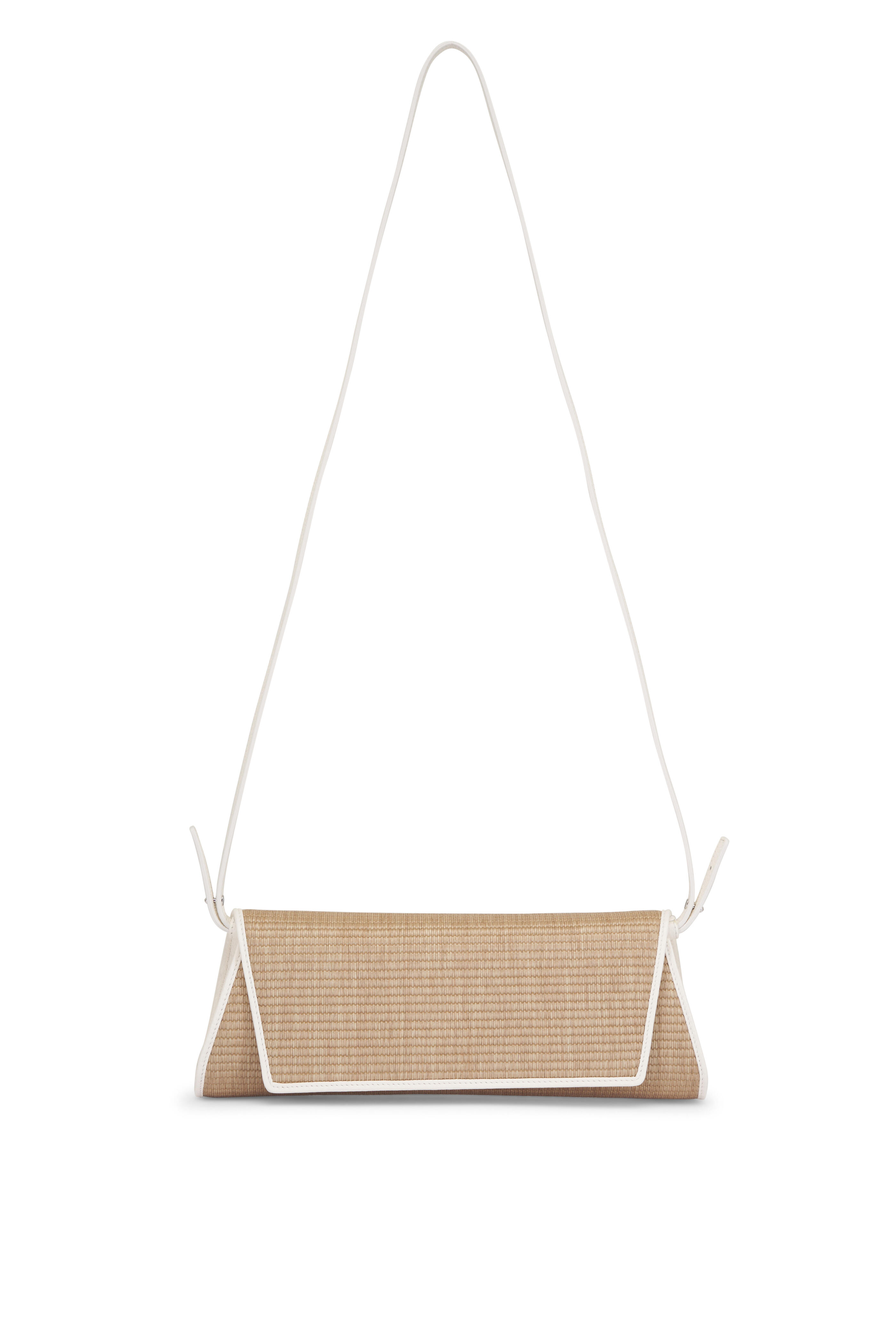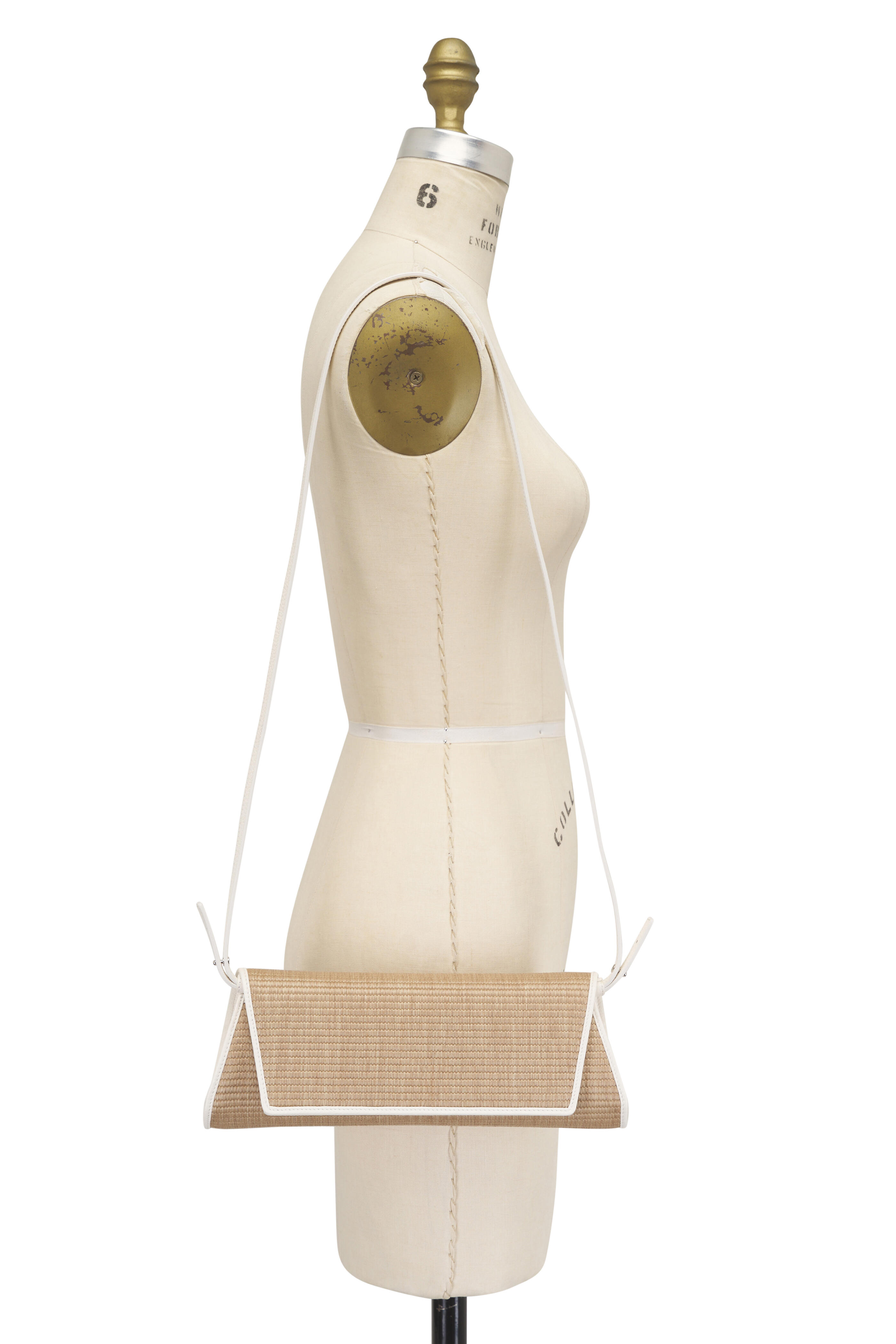 Small Anouk Raffia & Leather Trapezoid Clutch