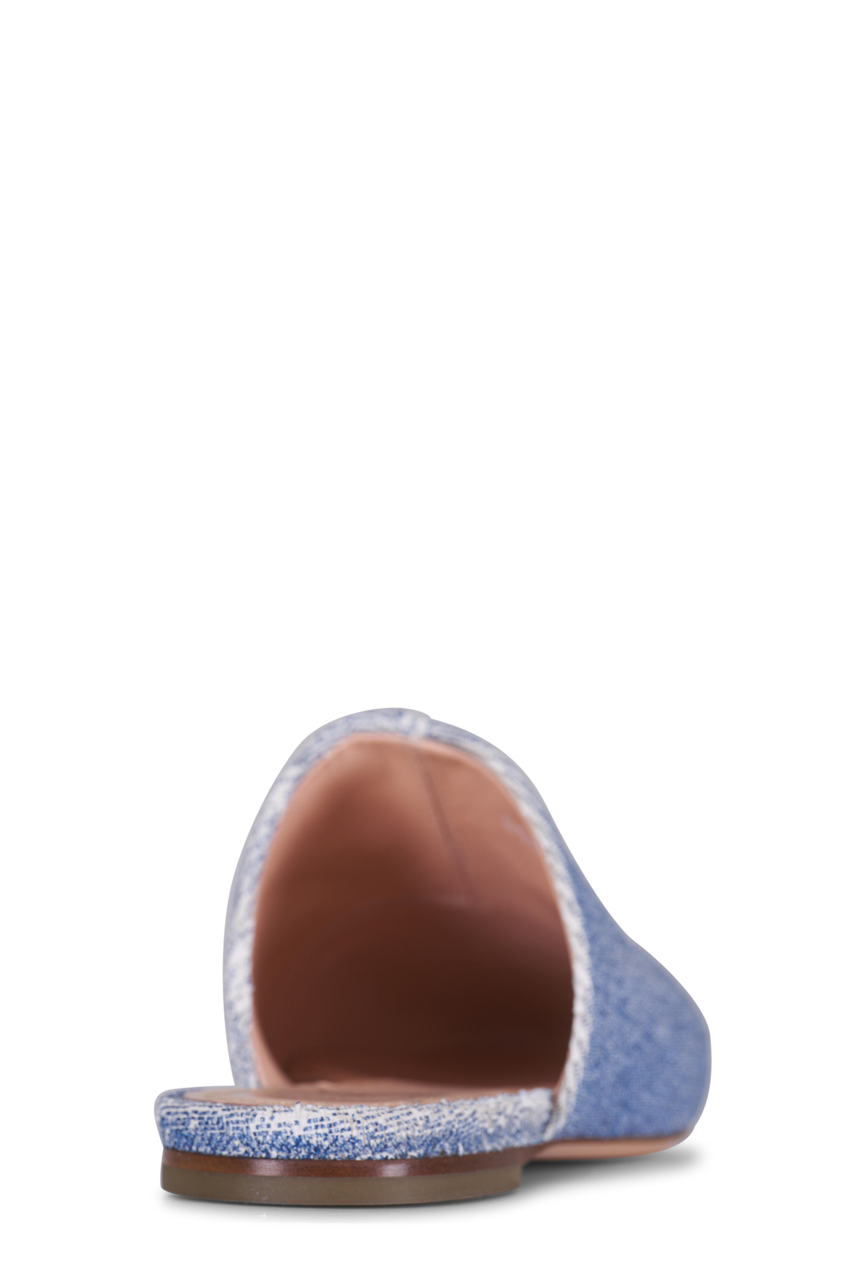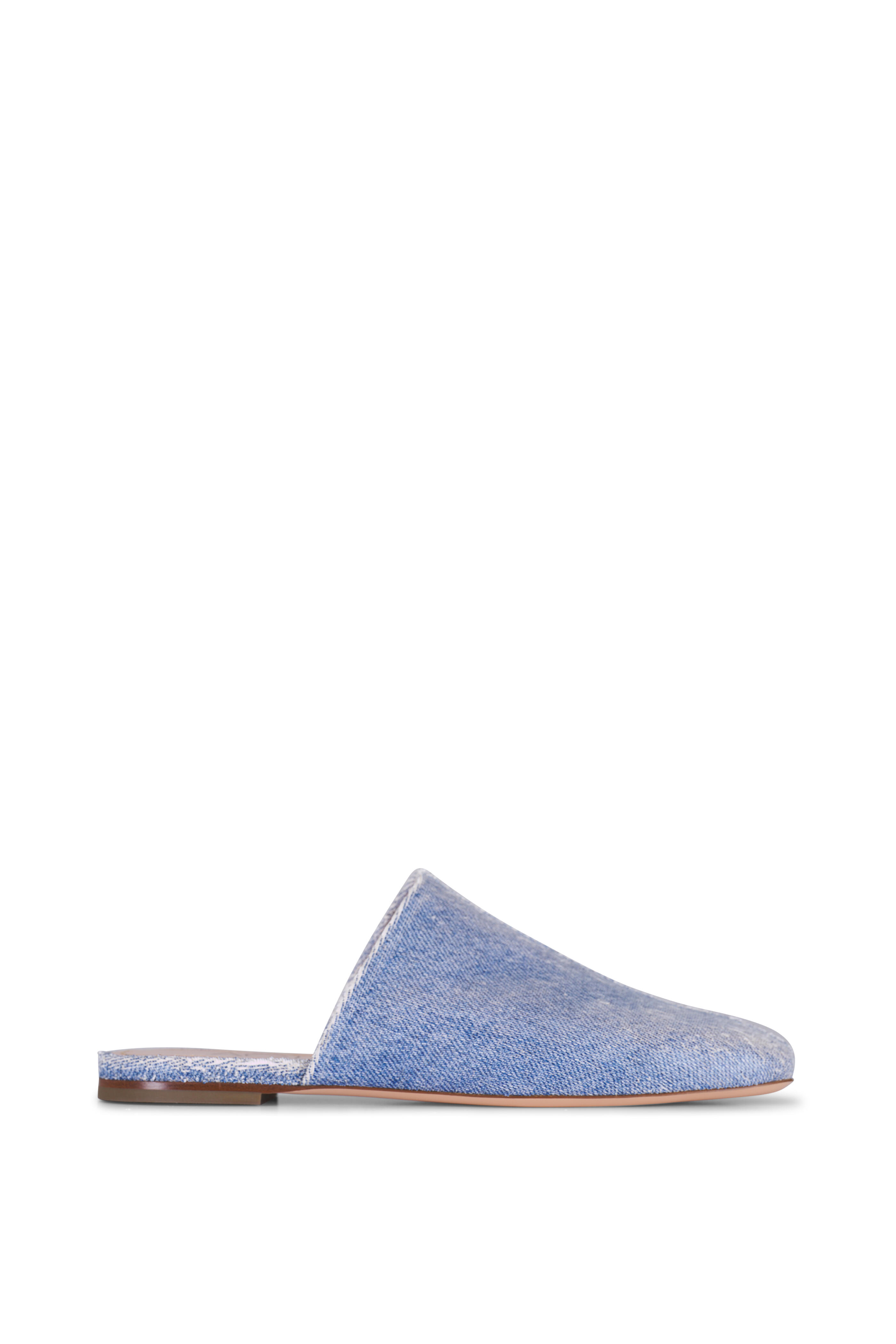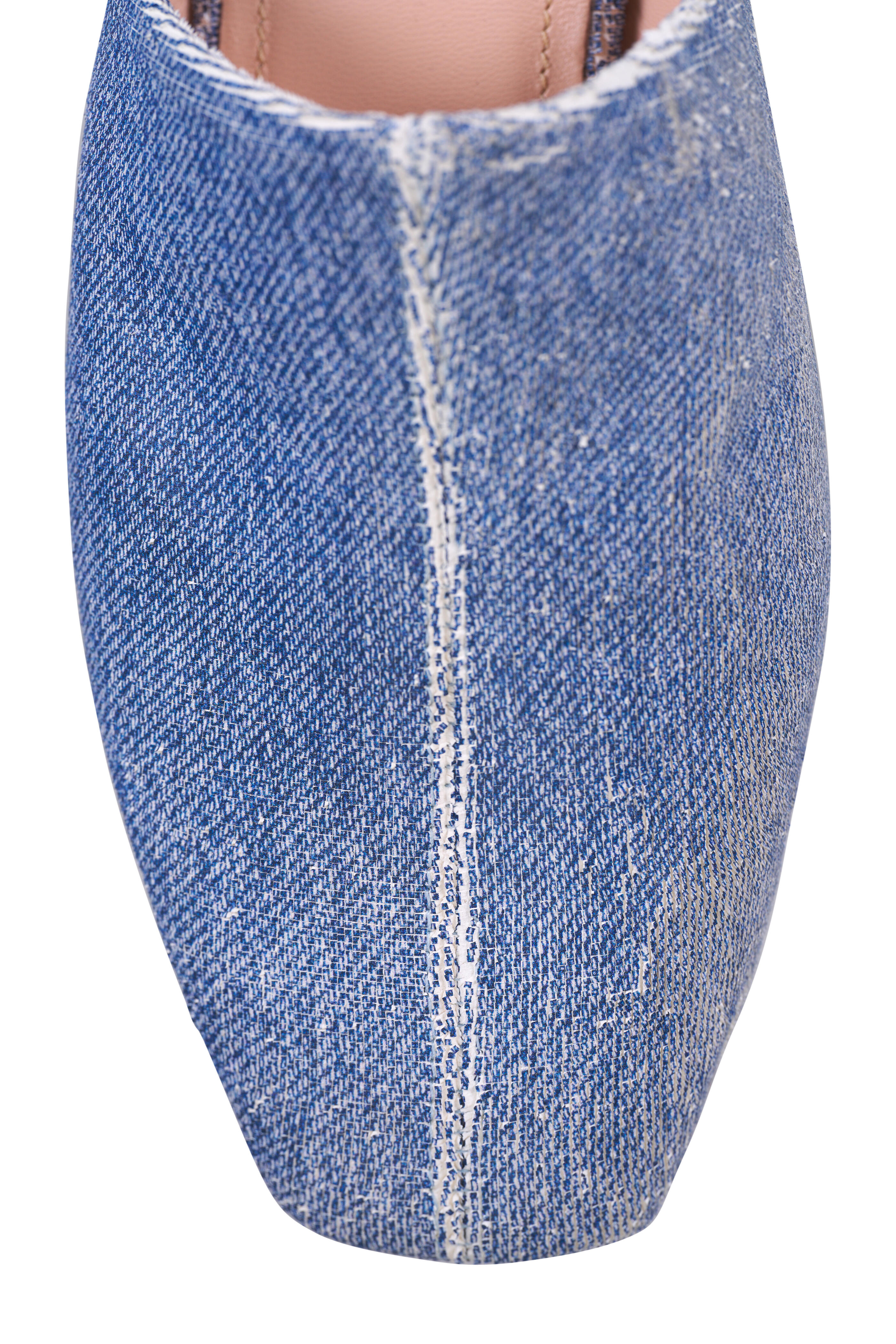 Laser-etched leather upper with denim effect. Square toe. Slip on style. Leather lining and insole. Leather & rubber sole. Made in Italy.
