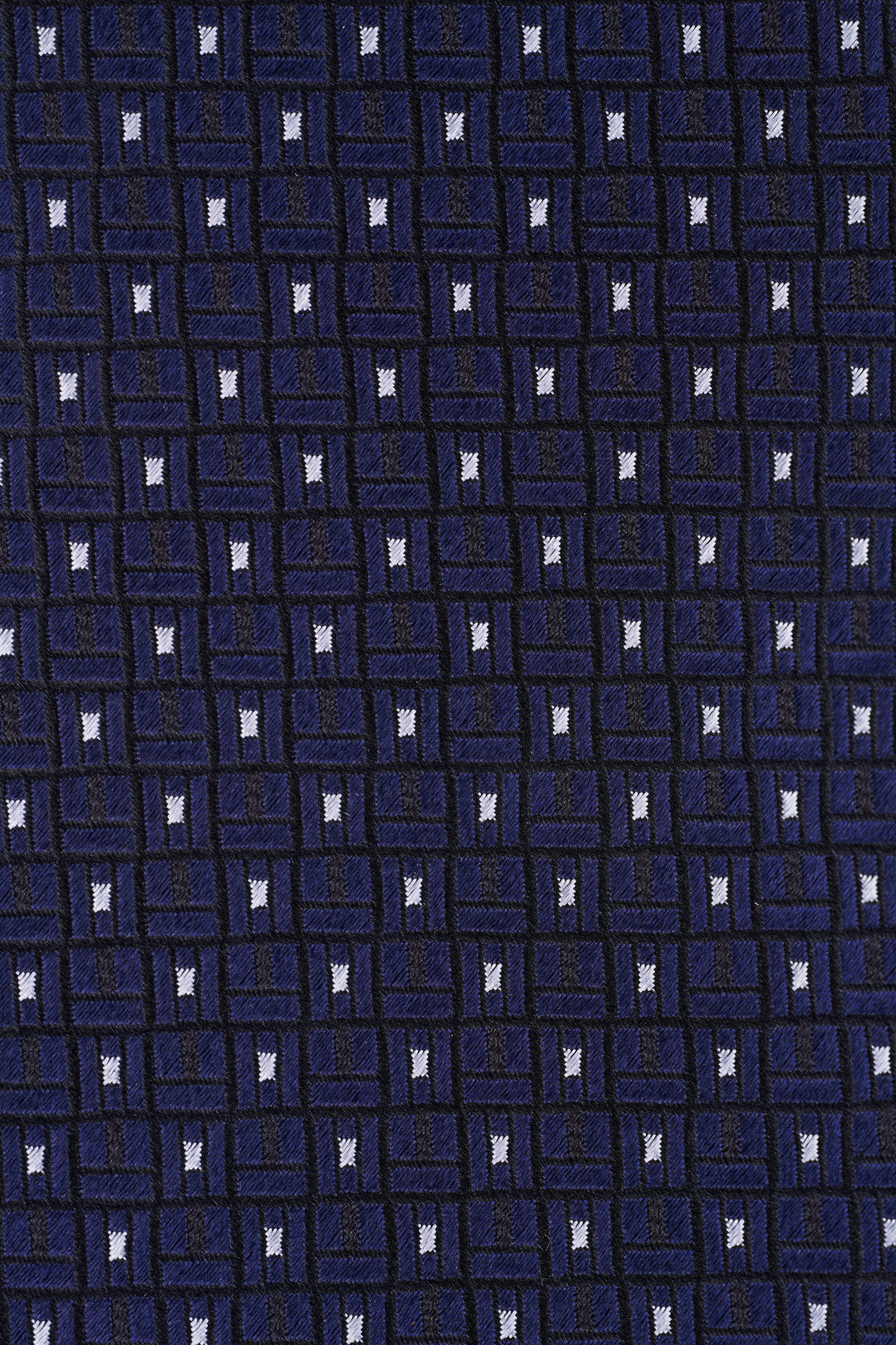 Navy Blue Geometric Print Silk Necktie