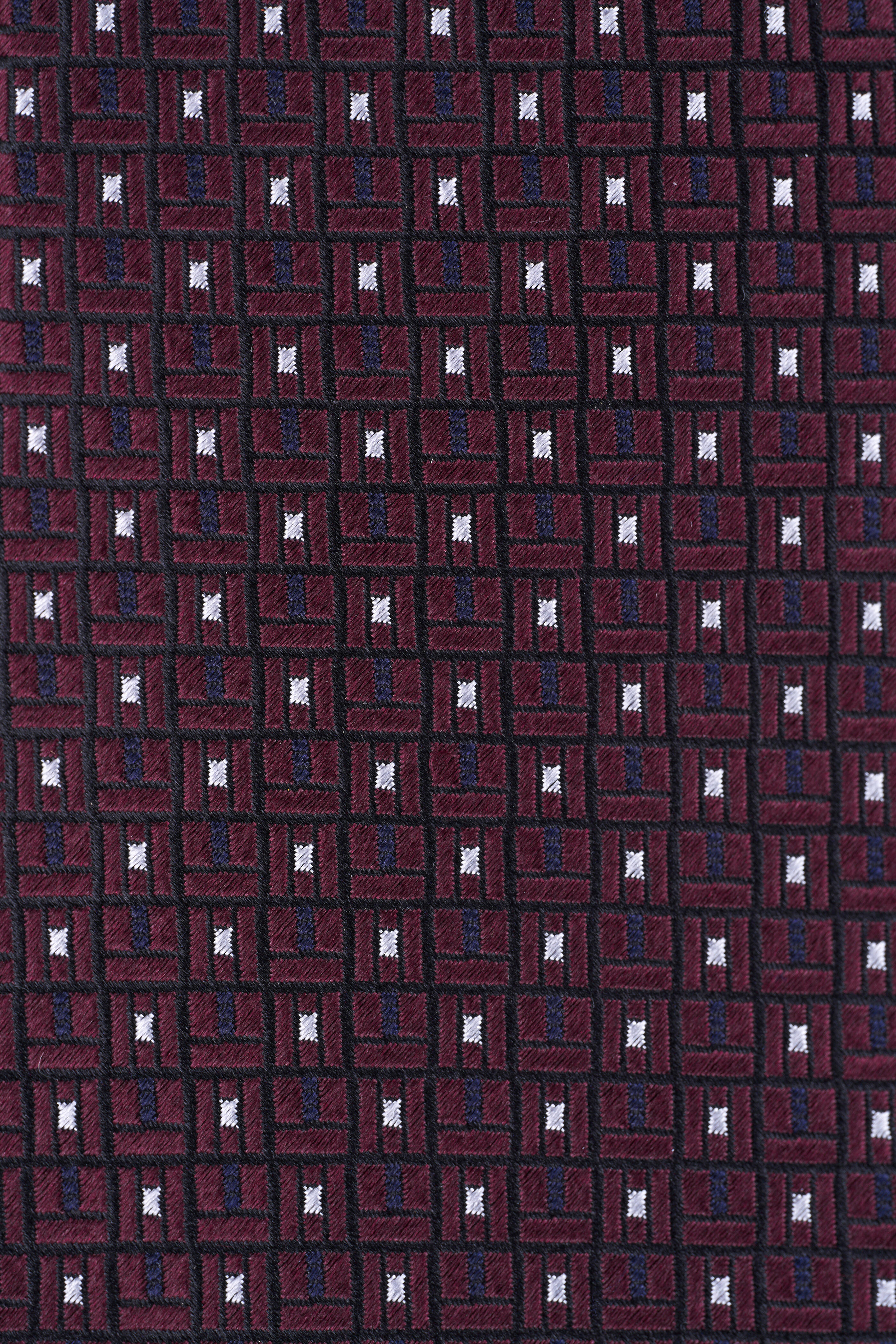 Dark Red Geometric Print Silk Necktie