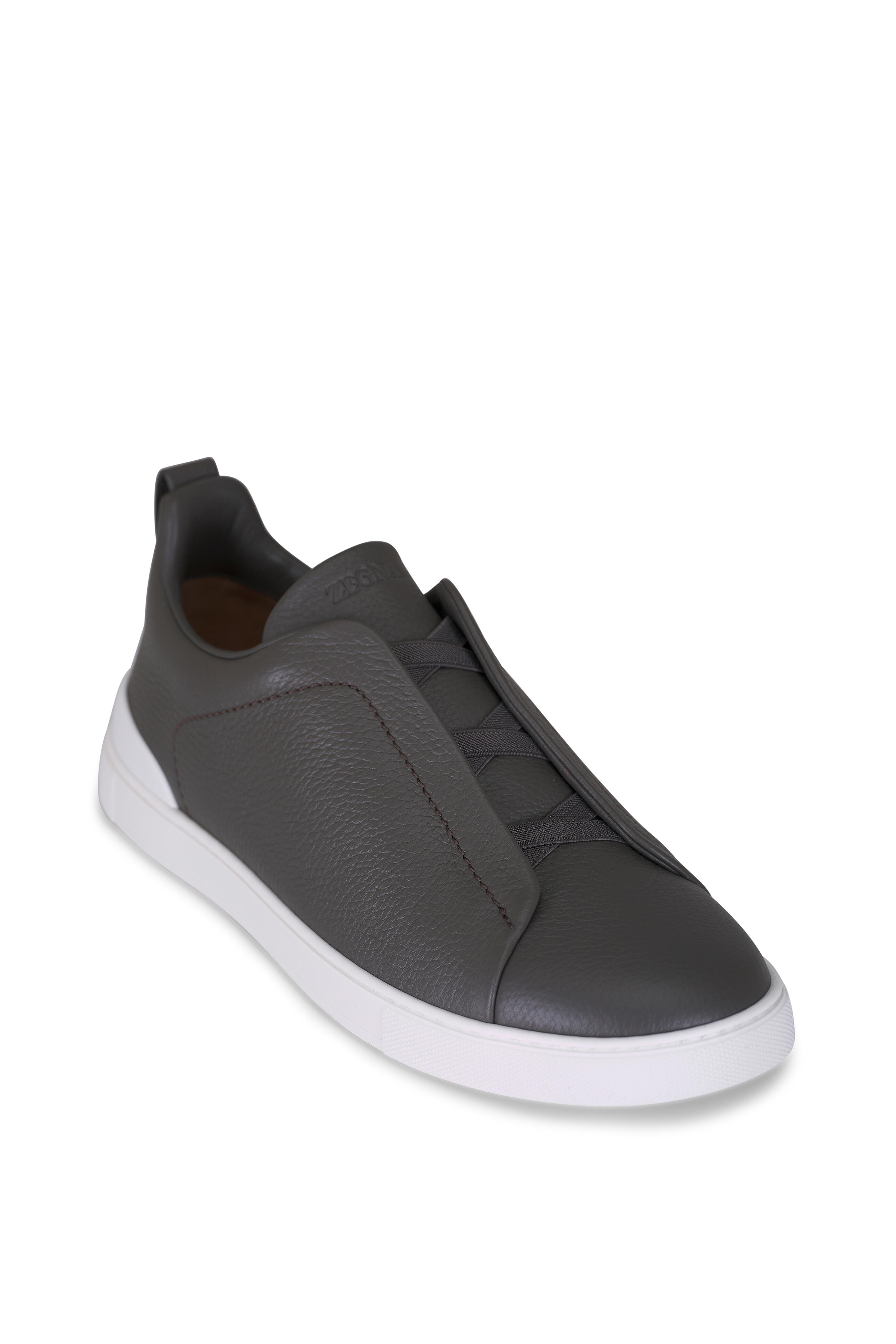 Triple Stitch Grey Deerskin Leather Sneaker
