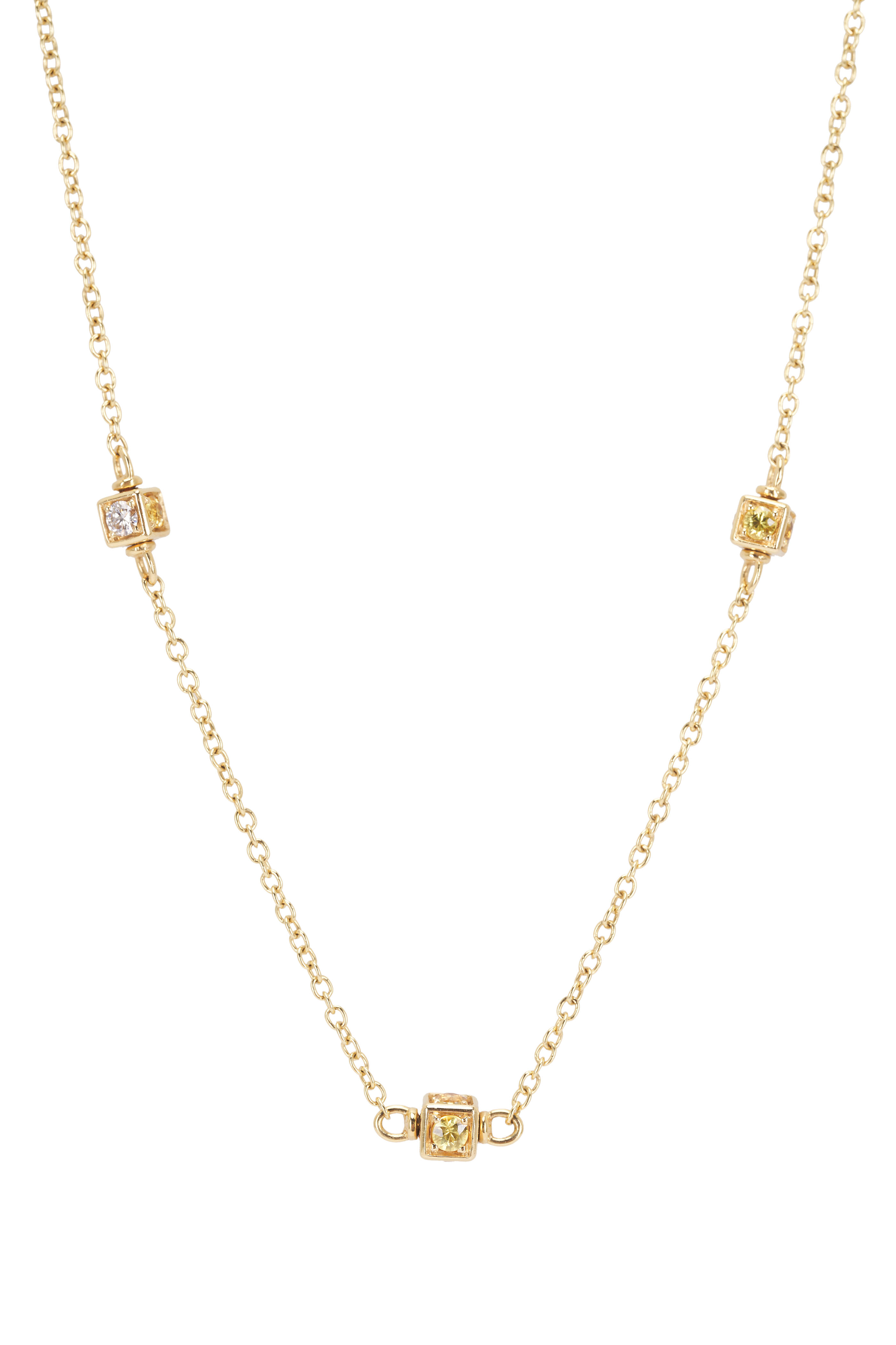 18k Yellow Gold Diamond & Sapphire Short Necklace