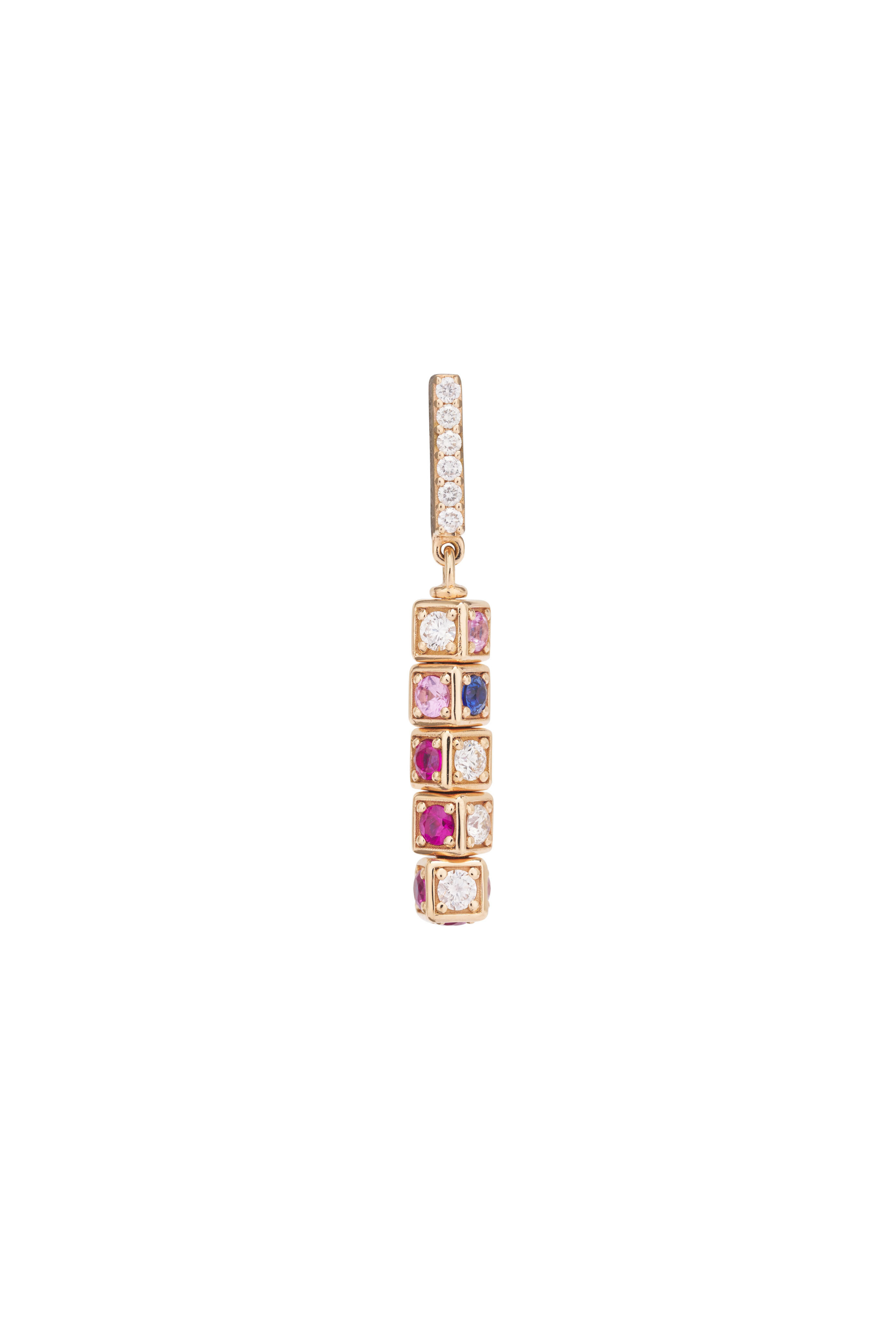 18k Rose Gold. 0.73 ct Diamond. 0.47 ct Blue Sapphire. 1.33 ct Pink Sapphire.