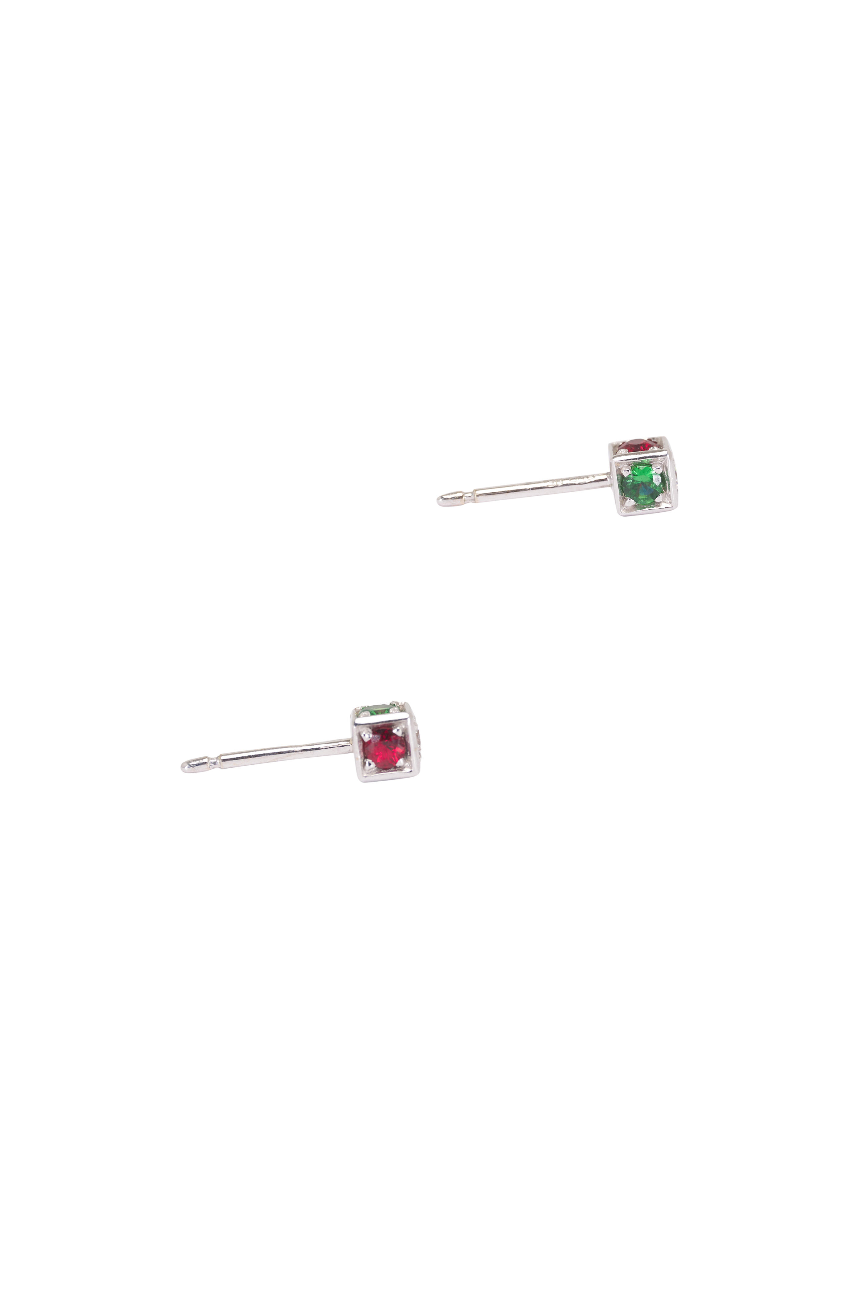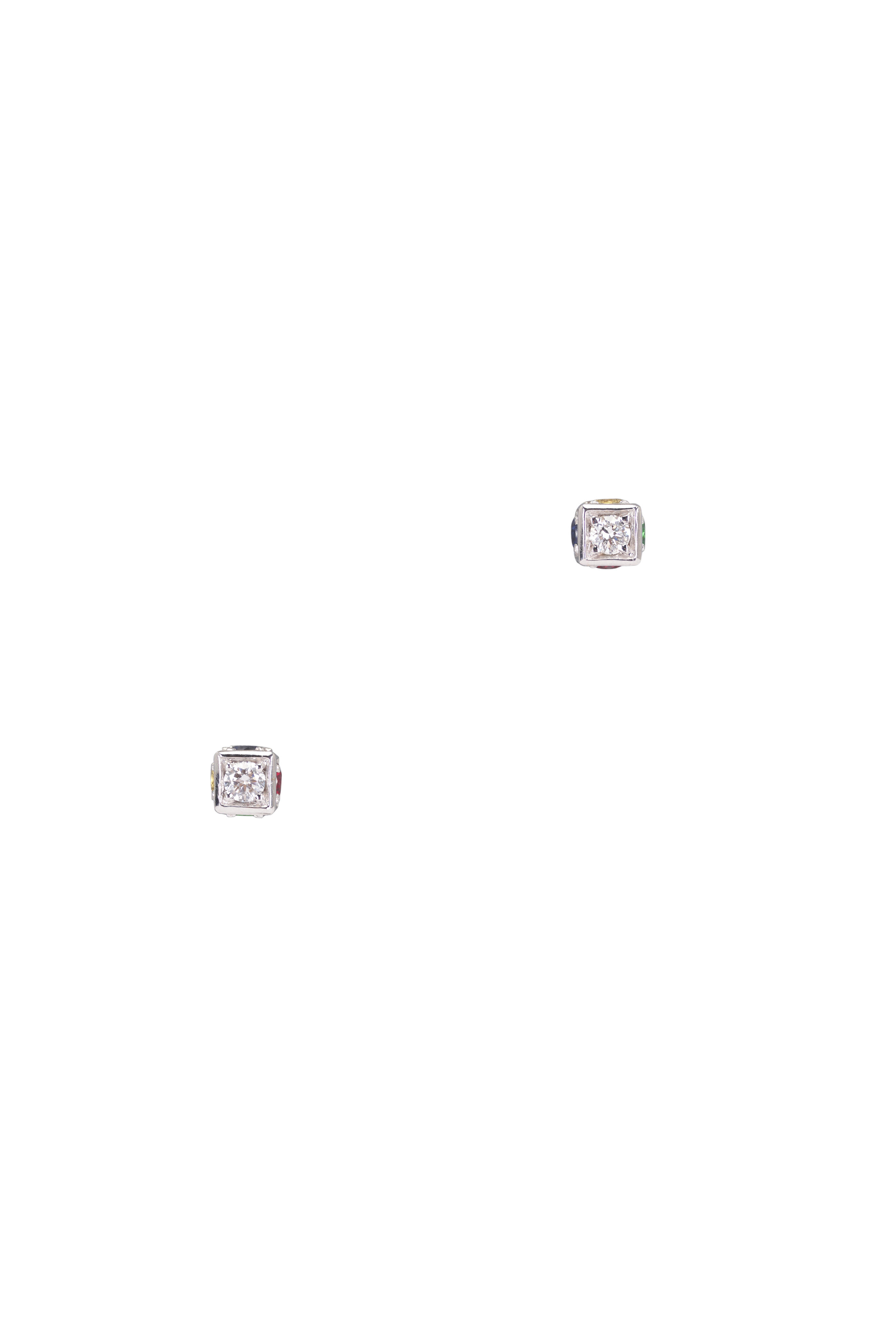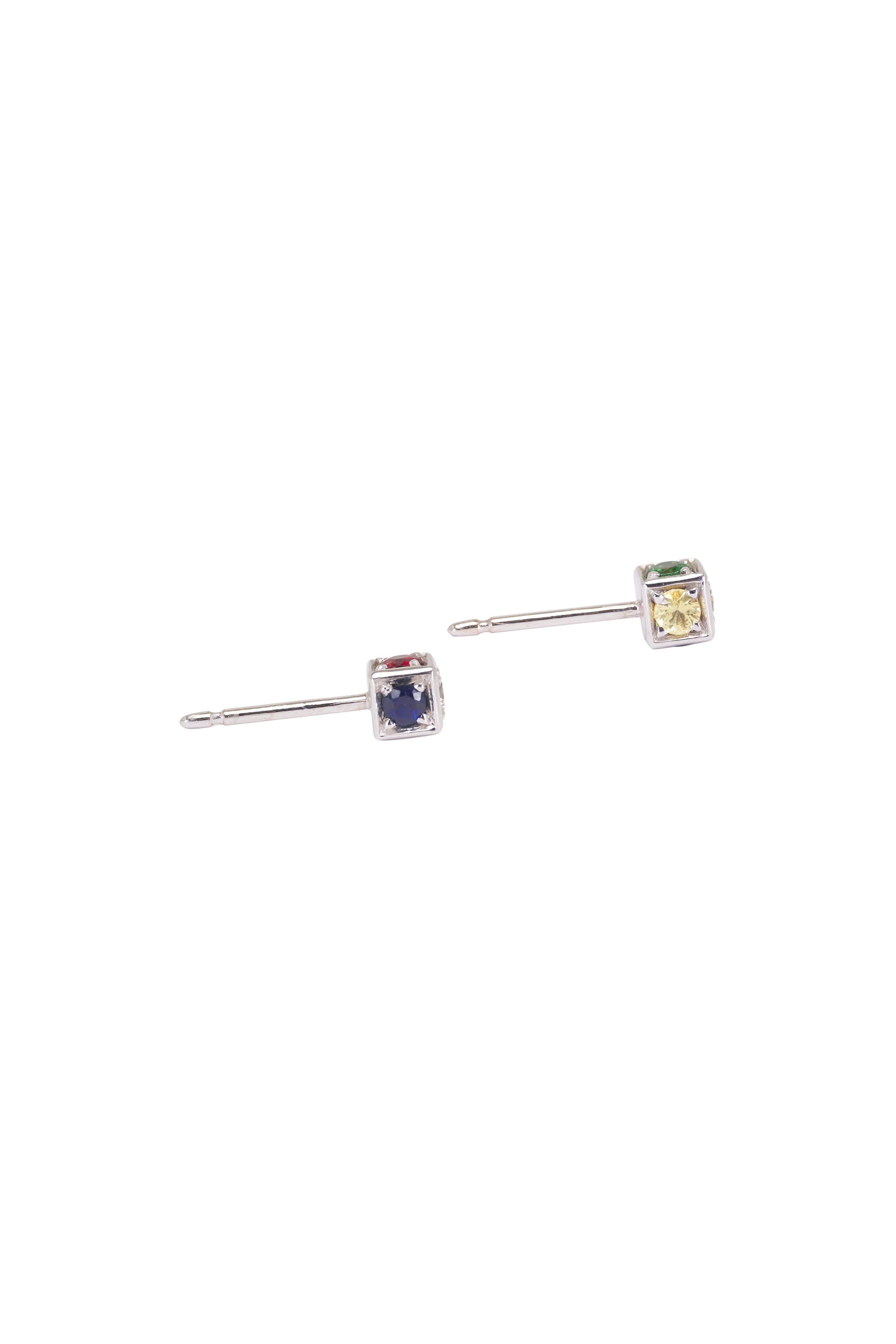 18k White Gold. 0.17 ct Blue Sapphire. 0.16 ct Yellow Sapphire. 0.13 ct Diamond. 0.16 ct Tsavorite. 0.18 ct Red Sapphire.