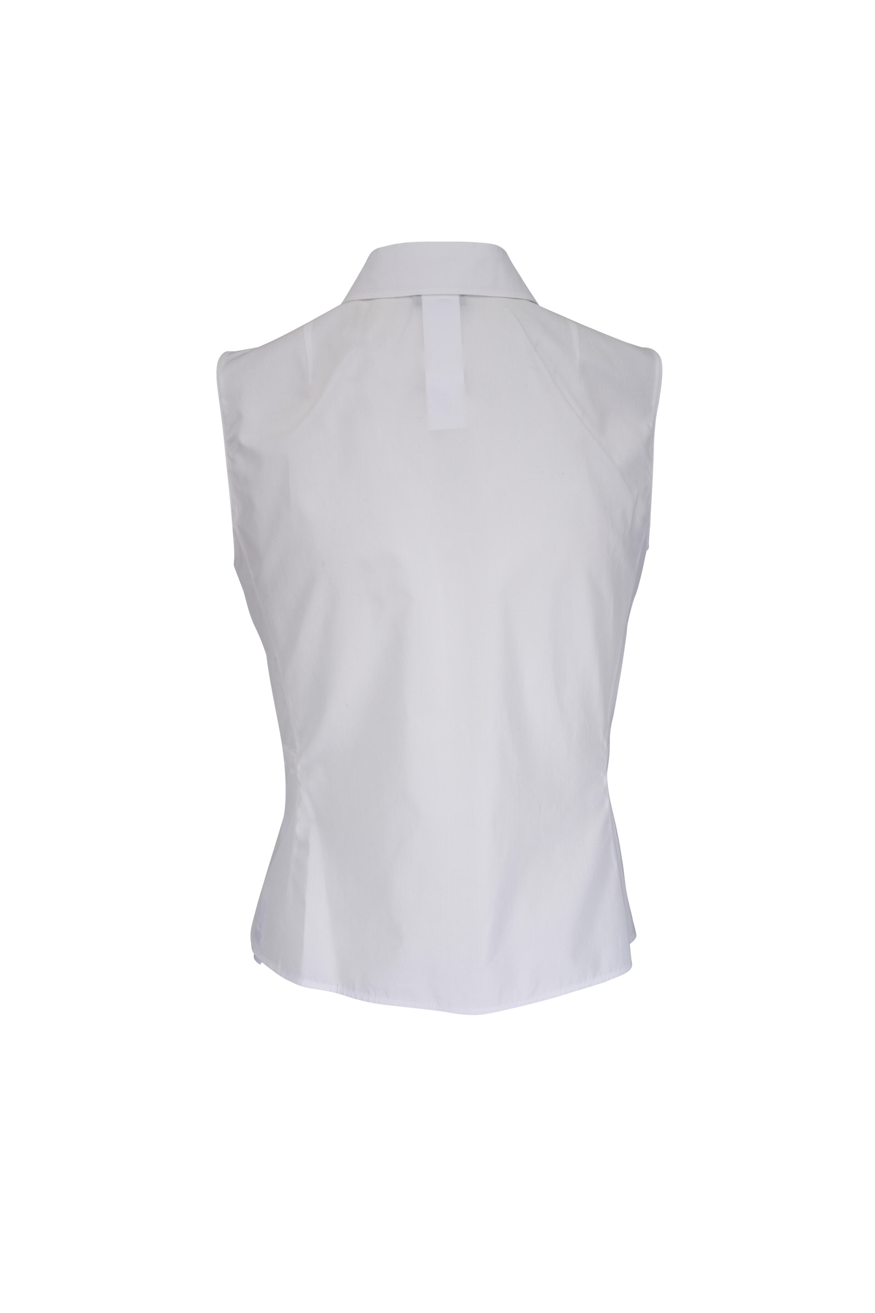 Point collar. Concealed front button placket. Chest patch pocket. Internal drawstrings at waist. Imported. Approximately 21" shoulder to hem (measurements taken from size 4). 100% cotton. Dry clean.