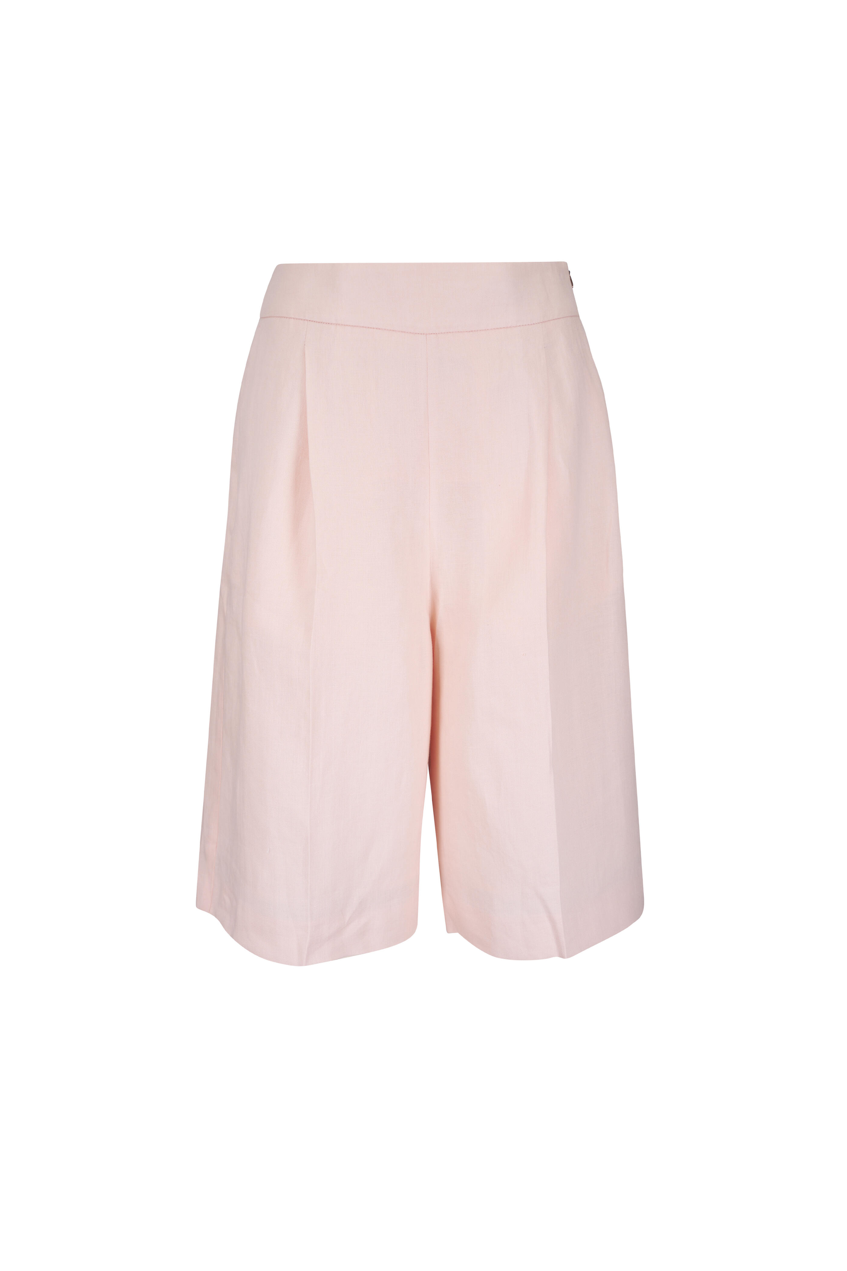 Concealed side zip. Elasticized back waist. Side slip pockets. Pleated. Made in Italy. Fits true to size.. 100% Linen. Dry clean.