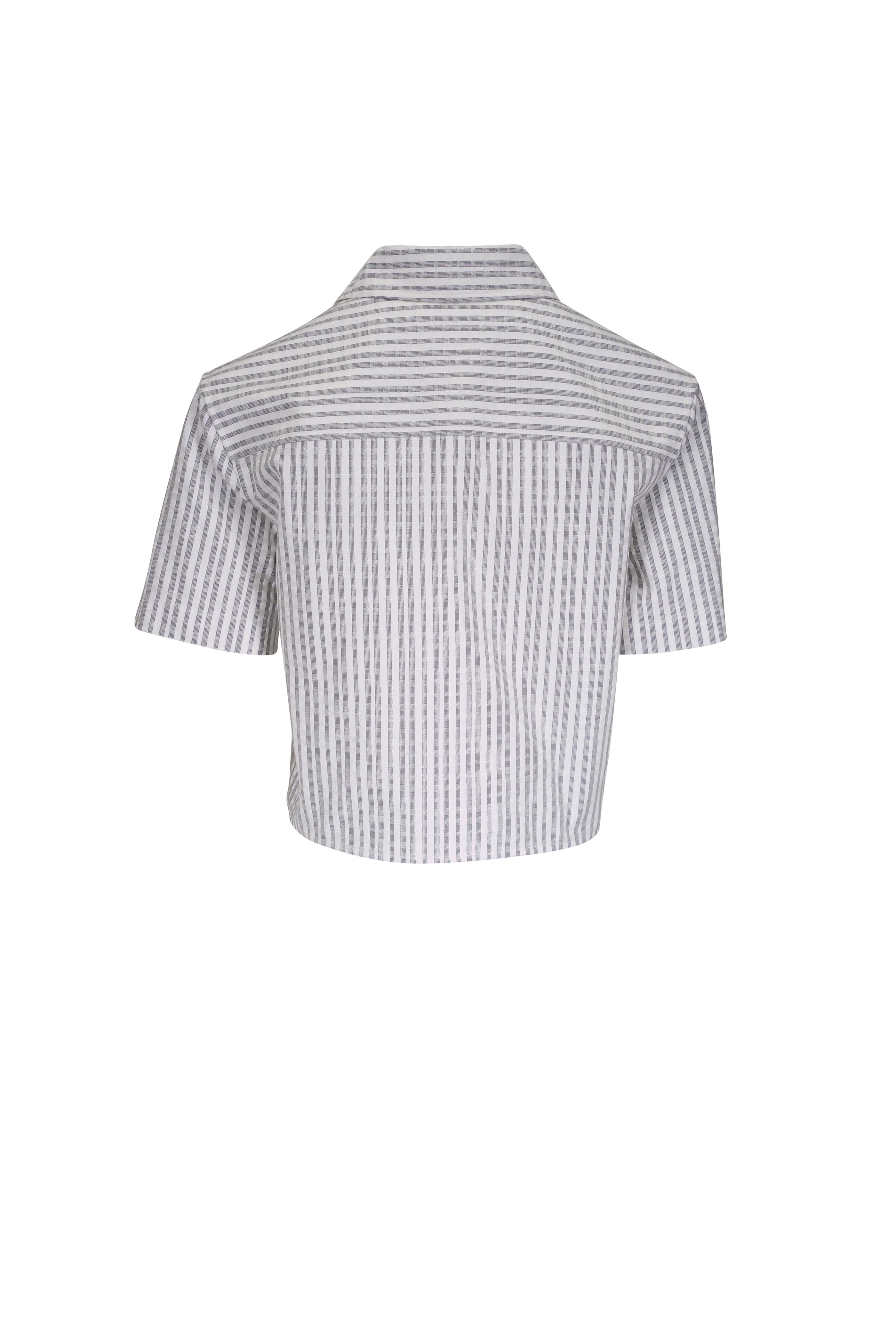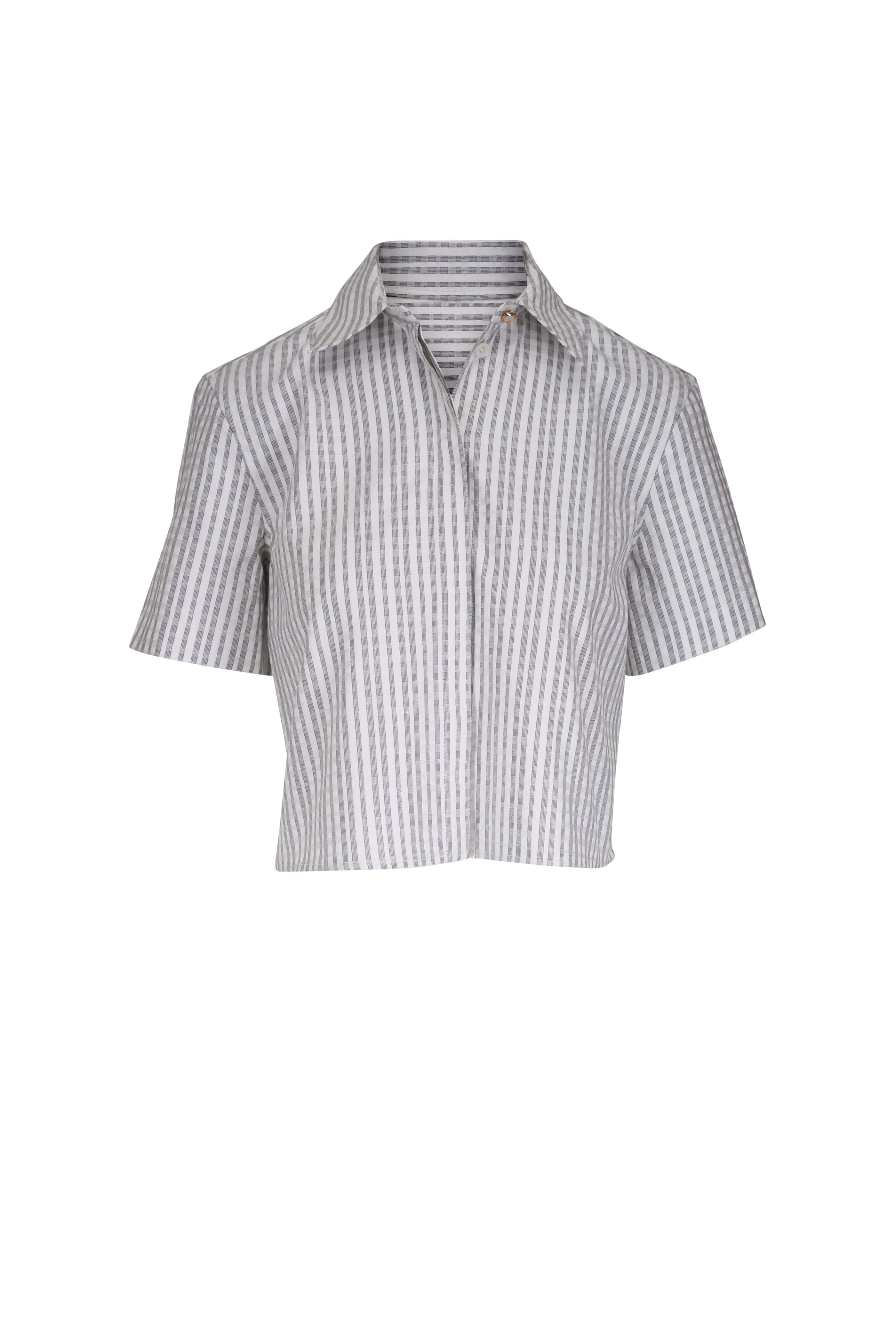 • Agnona - White & Gray Textured Plaid Cotton & Silk Blouse