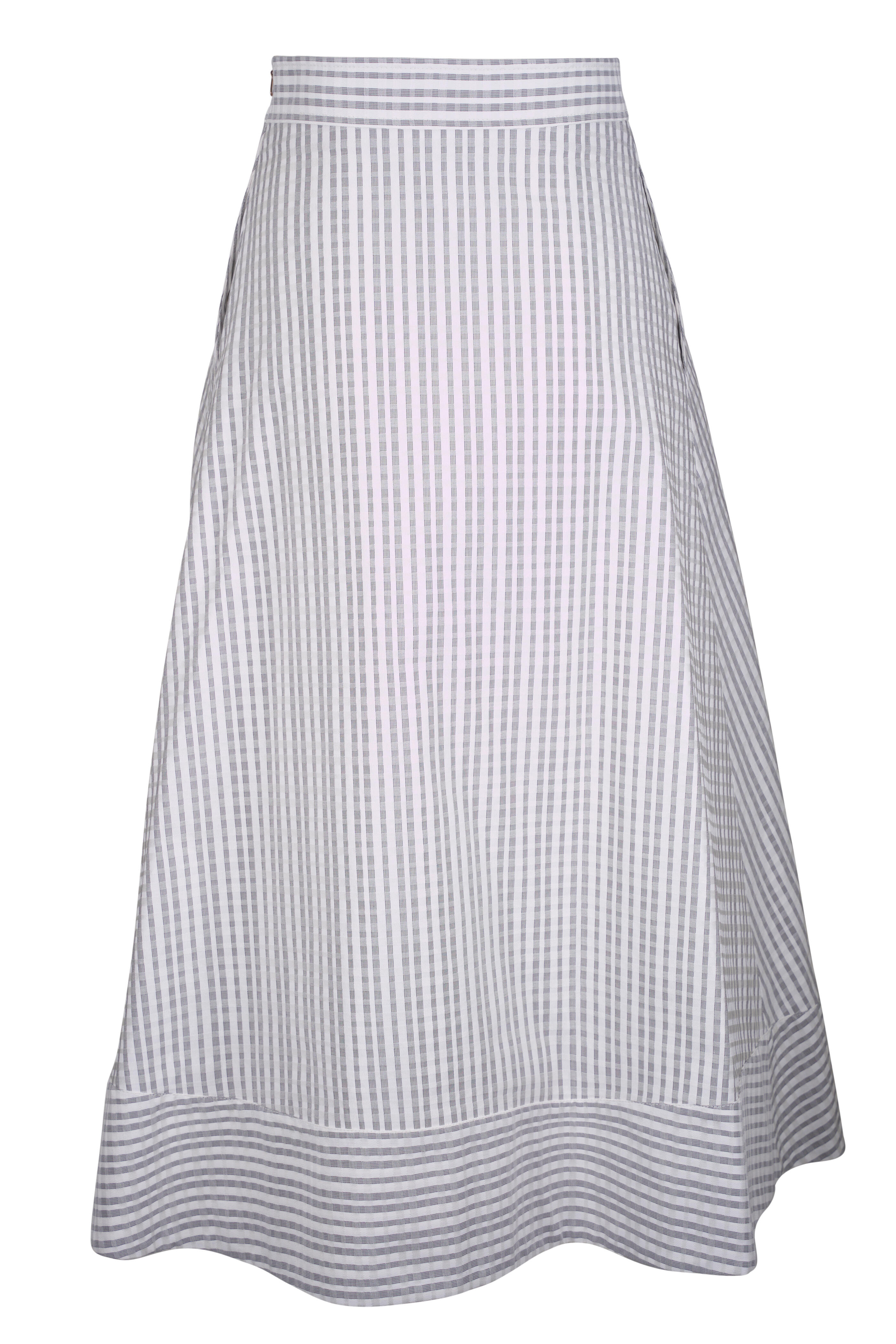 Banded waist. Concealed side zip. On-seam pockets. Made in Italy. 32.5" length. 65% cotton, 35% silk. Dry clean.