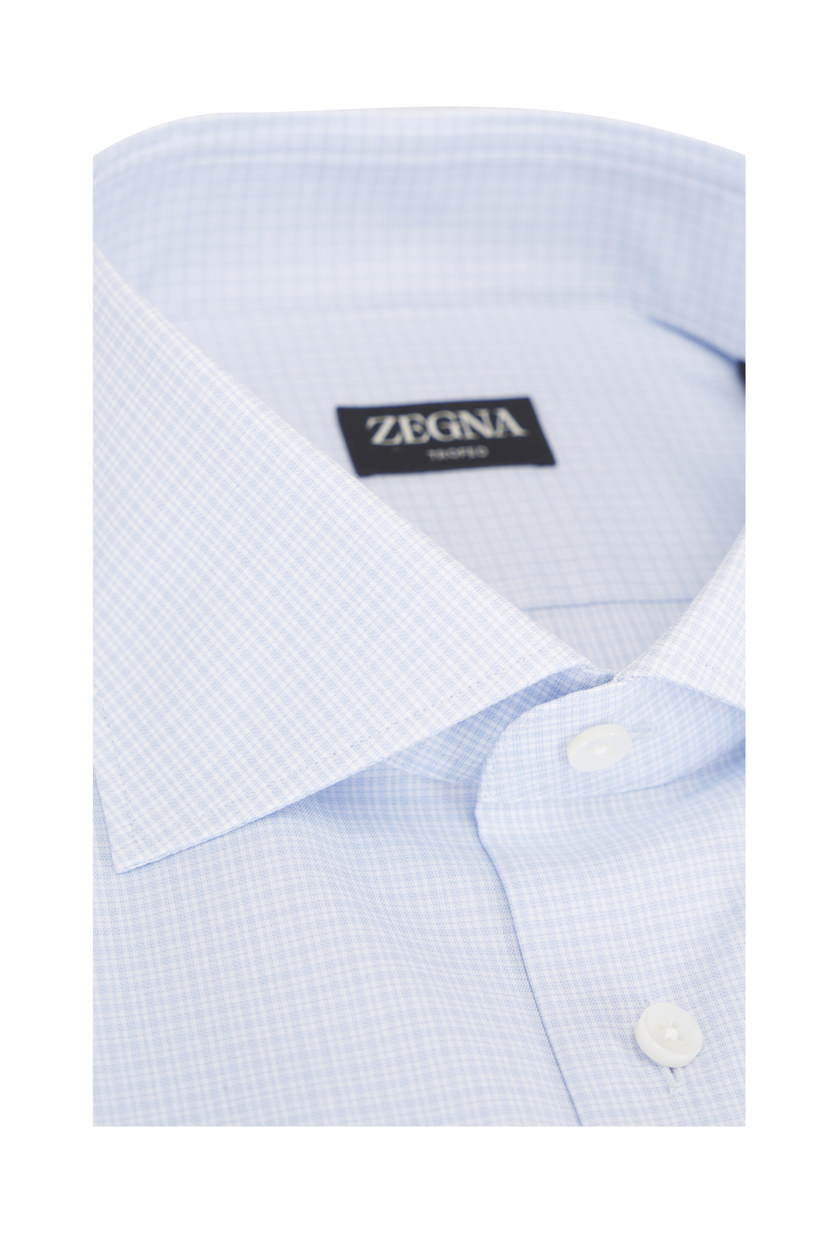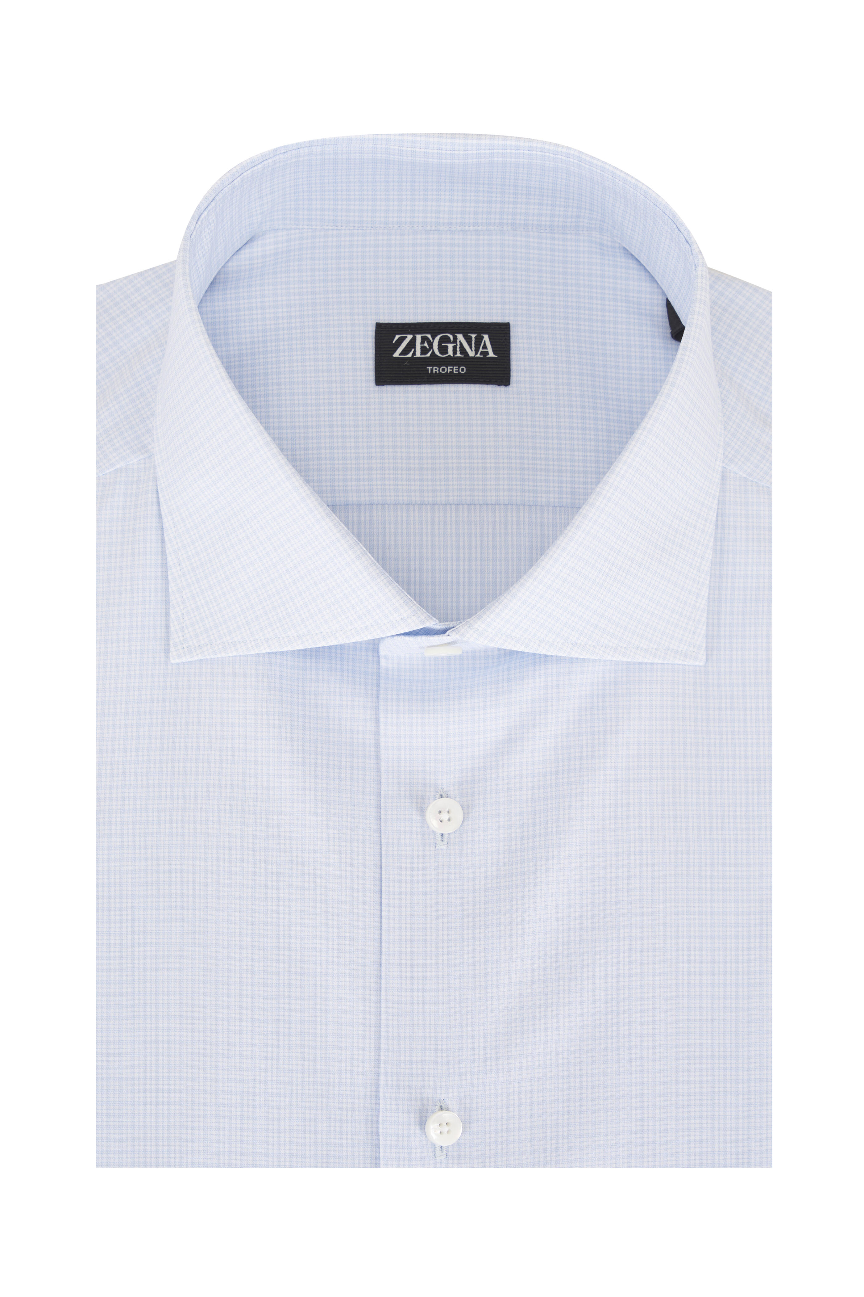 Spread collar. Front button placket. Single button barrel cuffs. Made in Italy. 100% cotton. Dry clean.