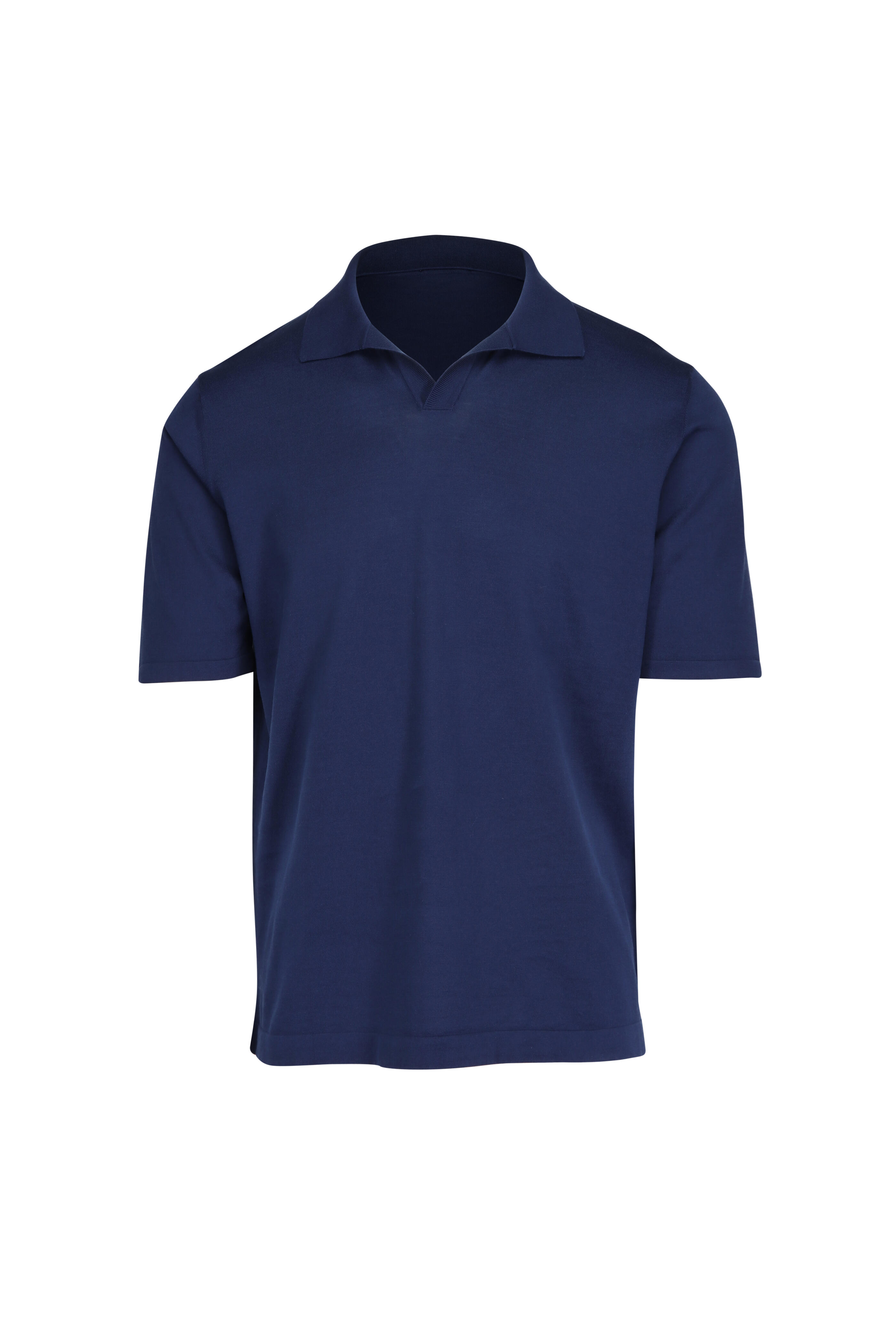 Johnny collar. Buttonless placket. Short sleeves. Pullover style. Made in Italy. 100% cotton. Dry clean.