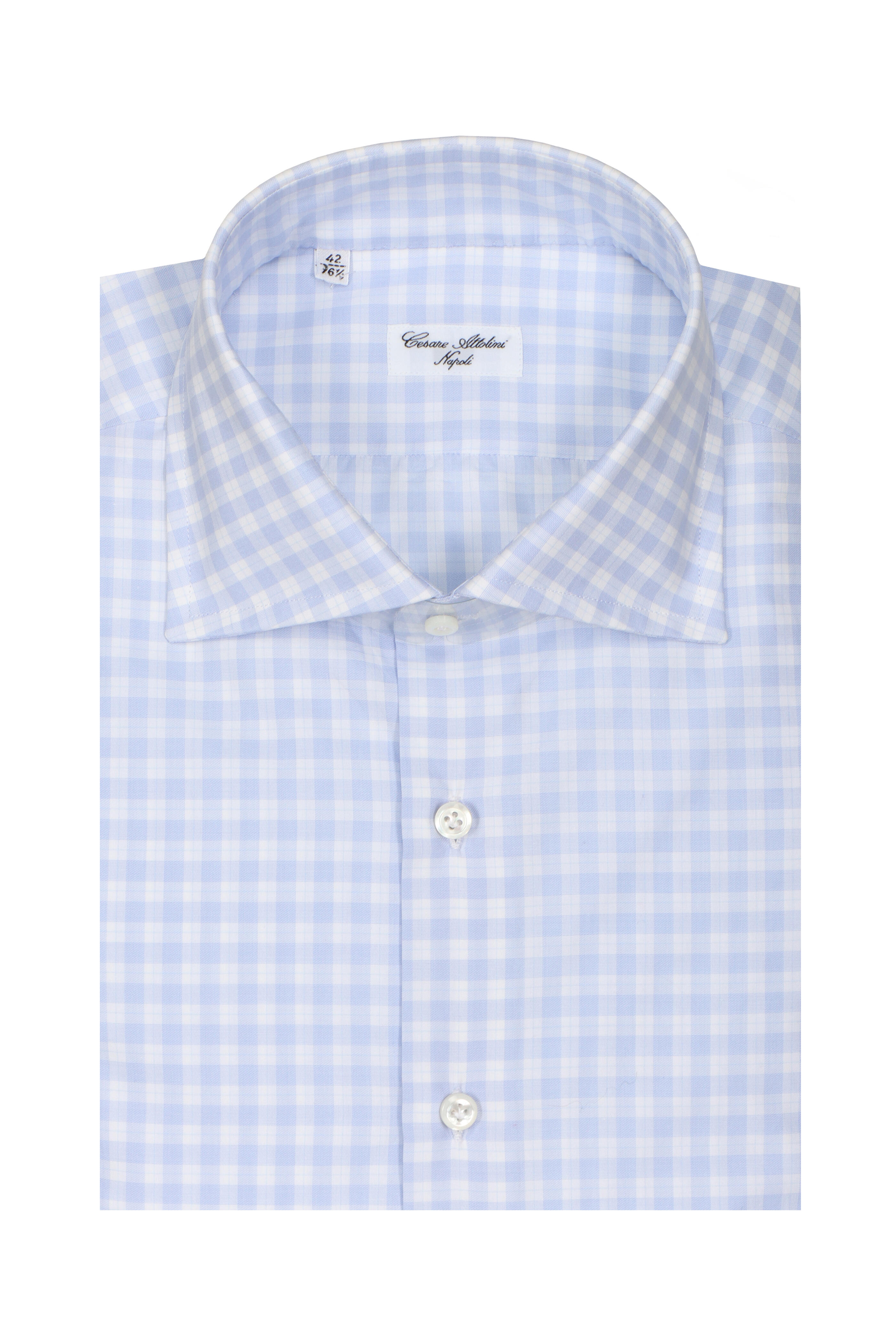 Spread collar. Front button placket. Single button cuffs. Made in Italy. 100% cotton. Dry clean.