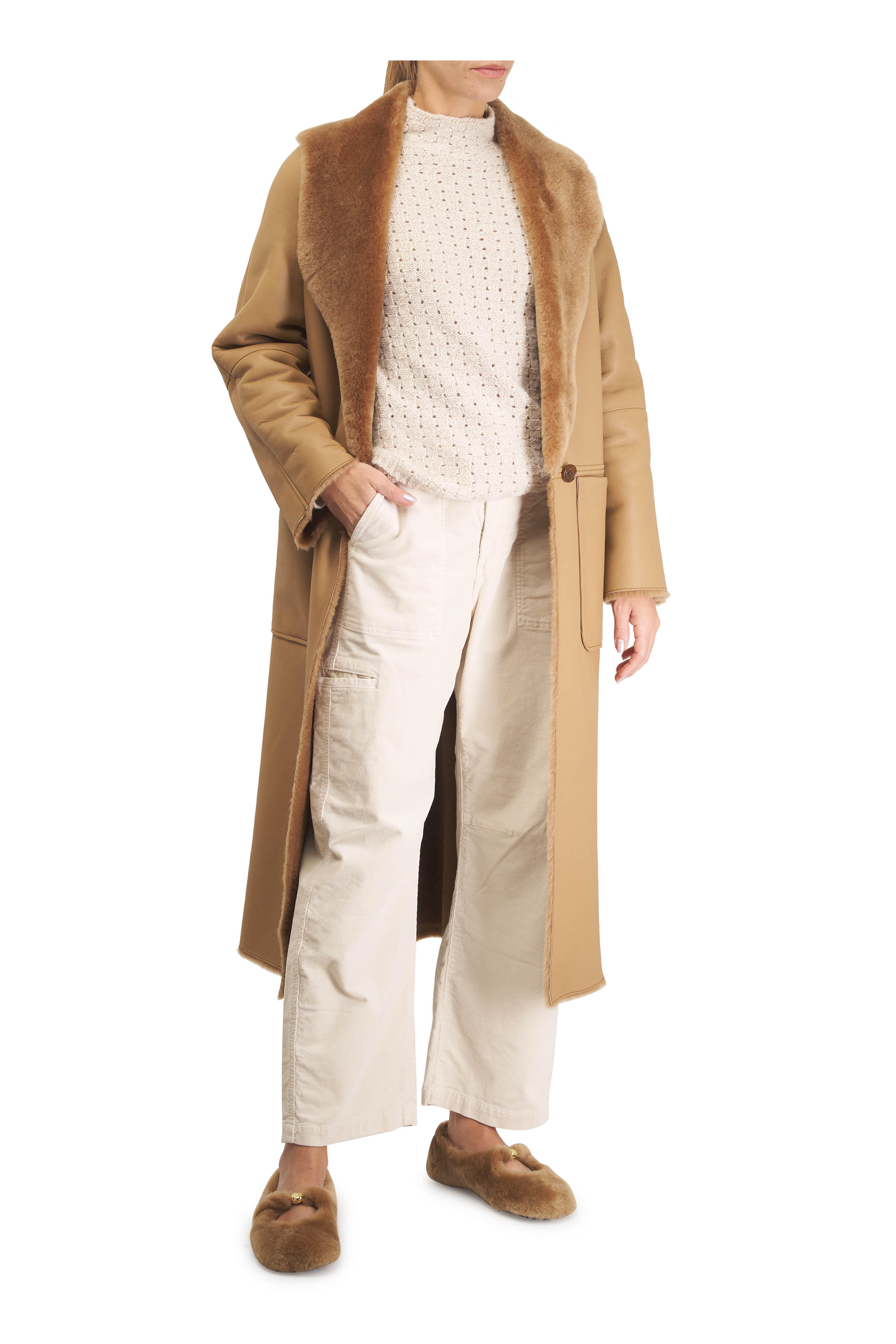 Mock neckline. Made in the UK. 100% cashmere. Dry clean.