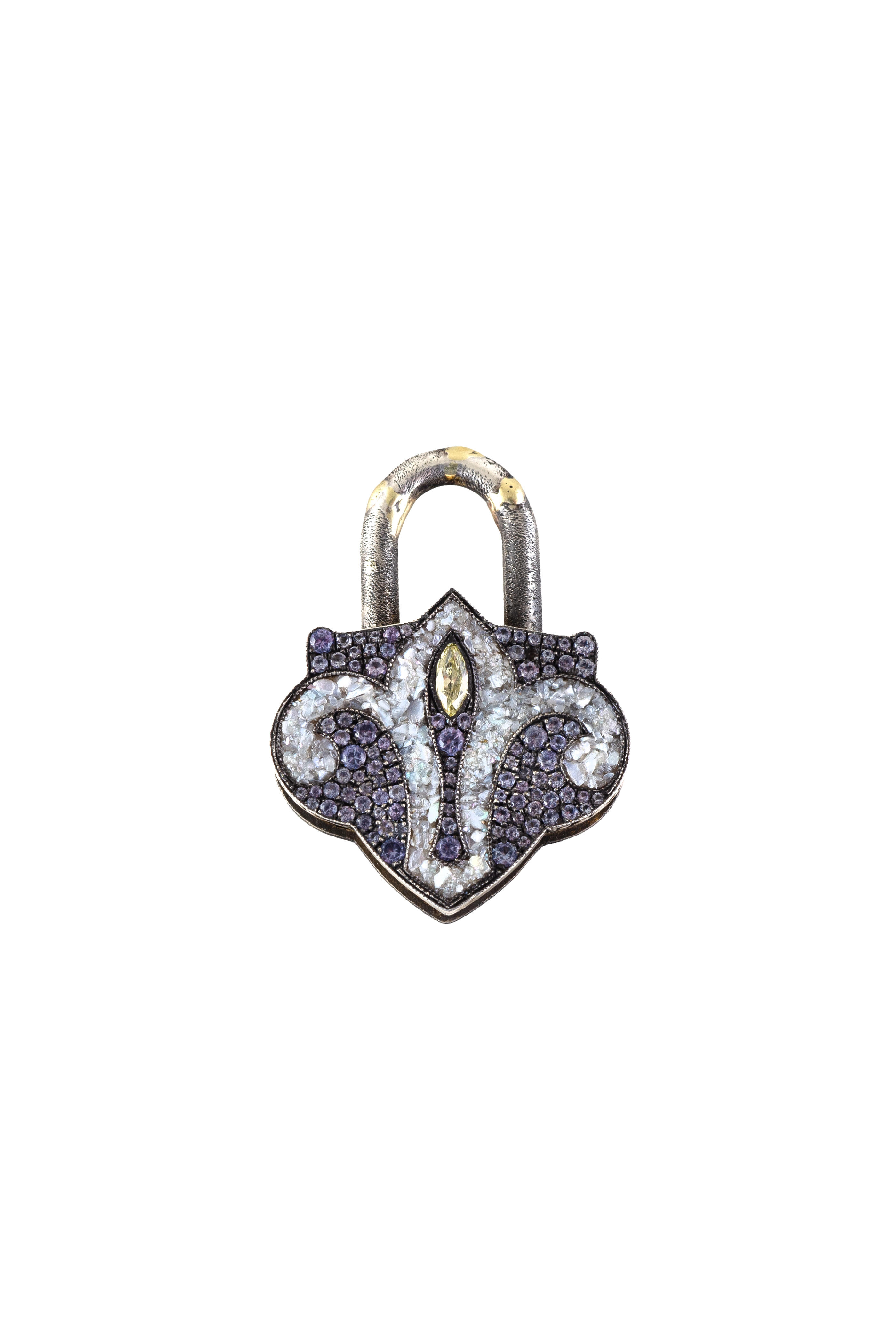 Micro Mosaic Diamond Aspen Leaf Padlock Pendant