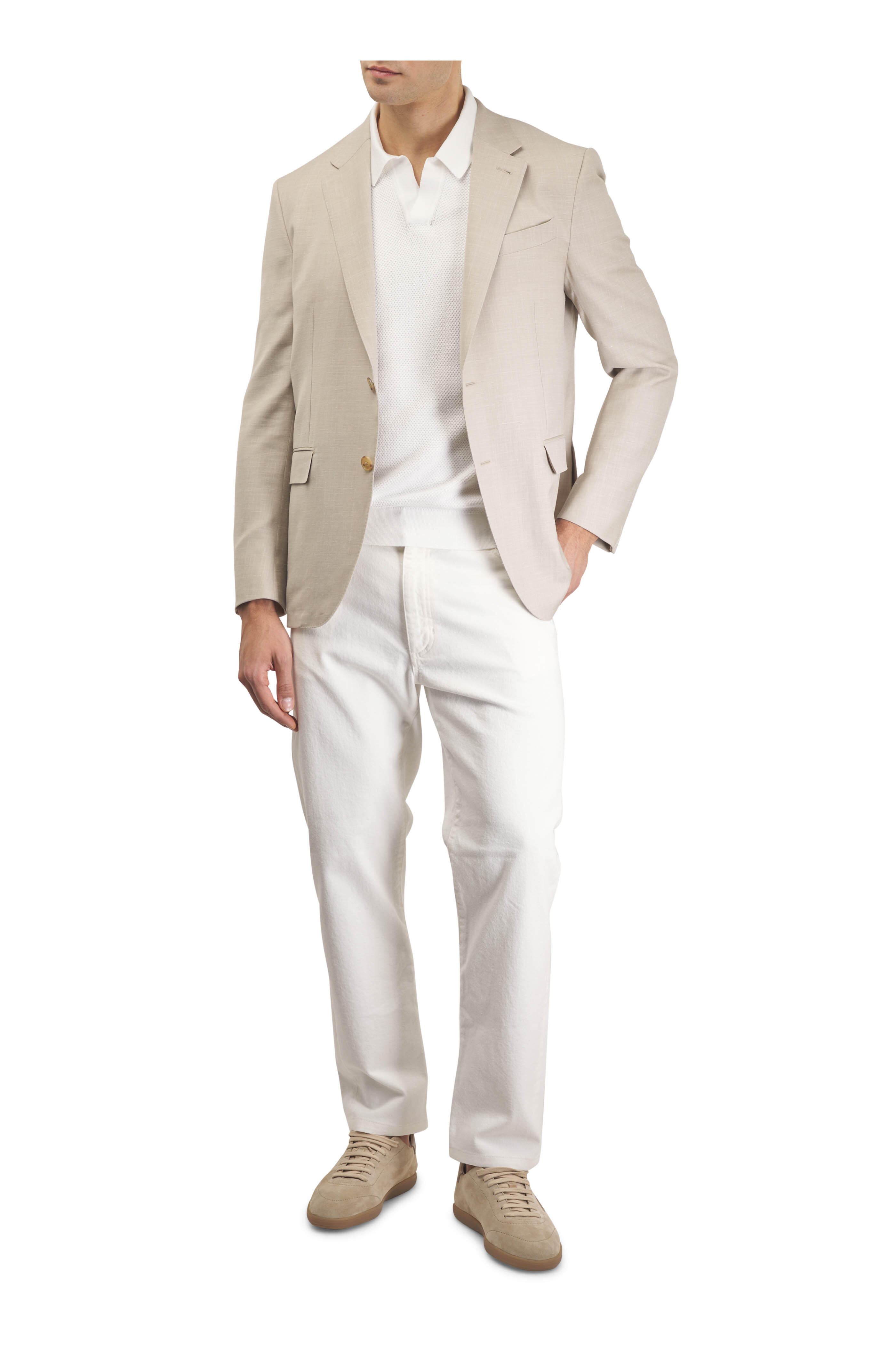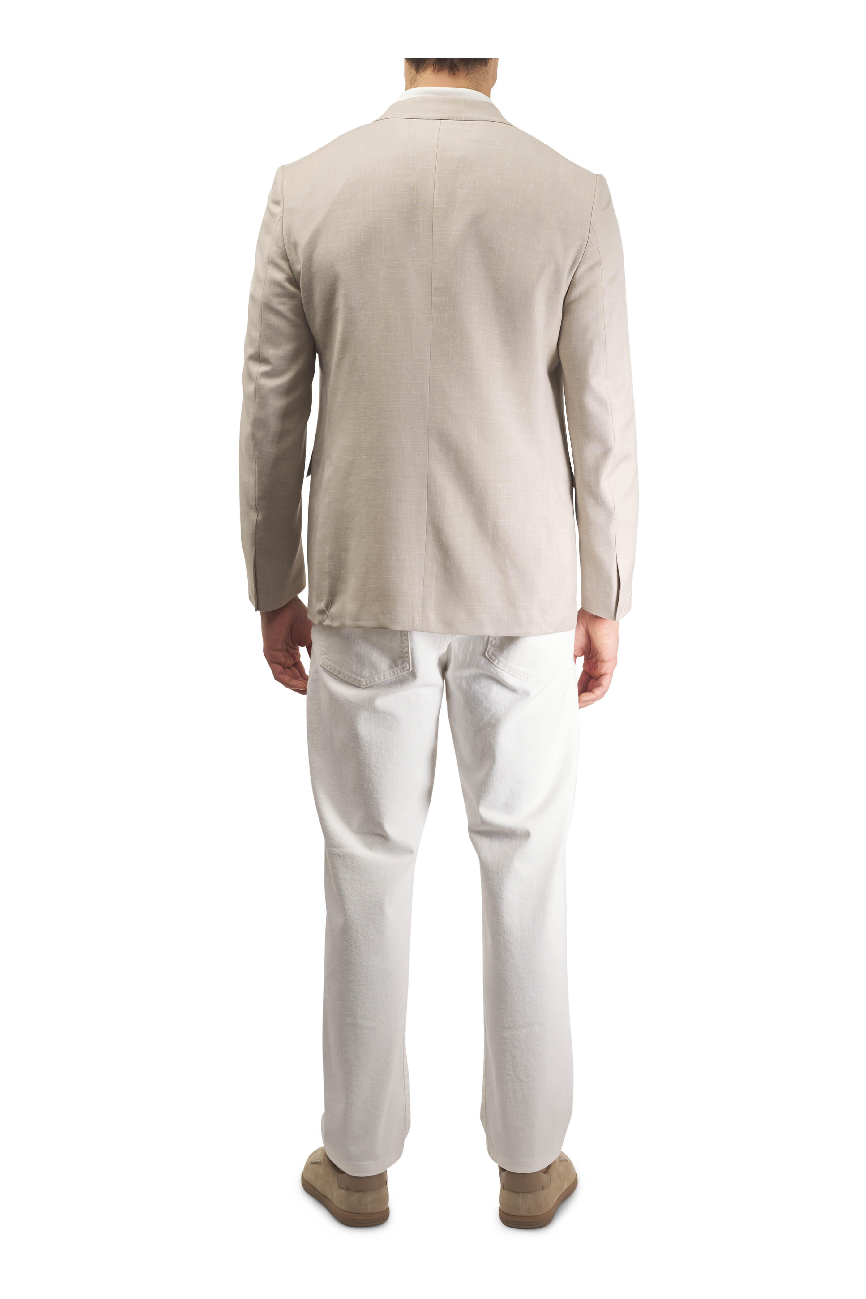 Light Beige Wool, Silk & Linen Crossover Sportcoat