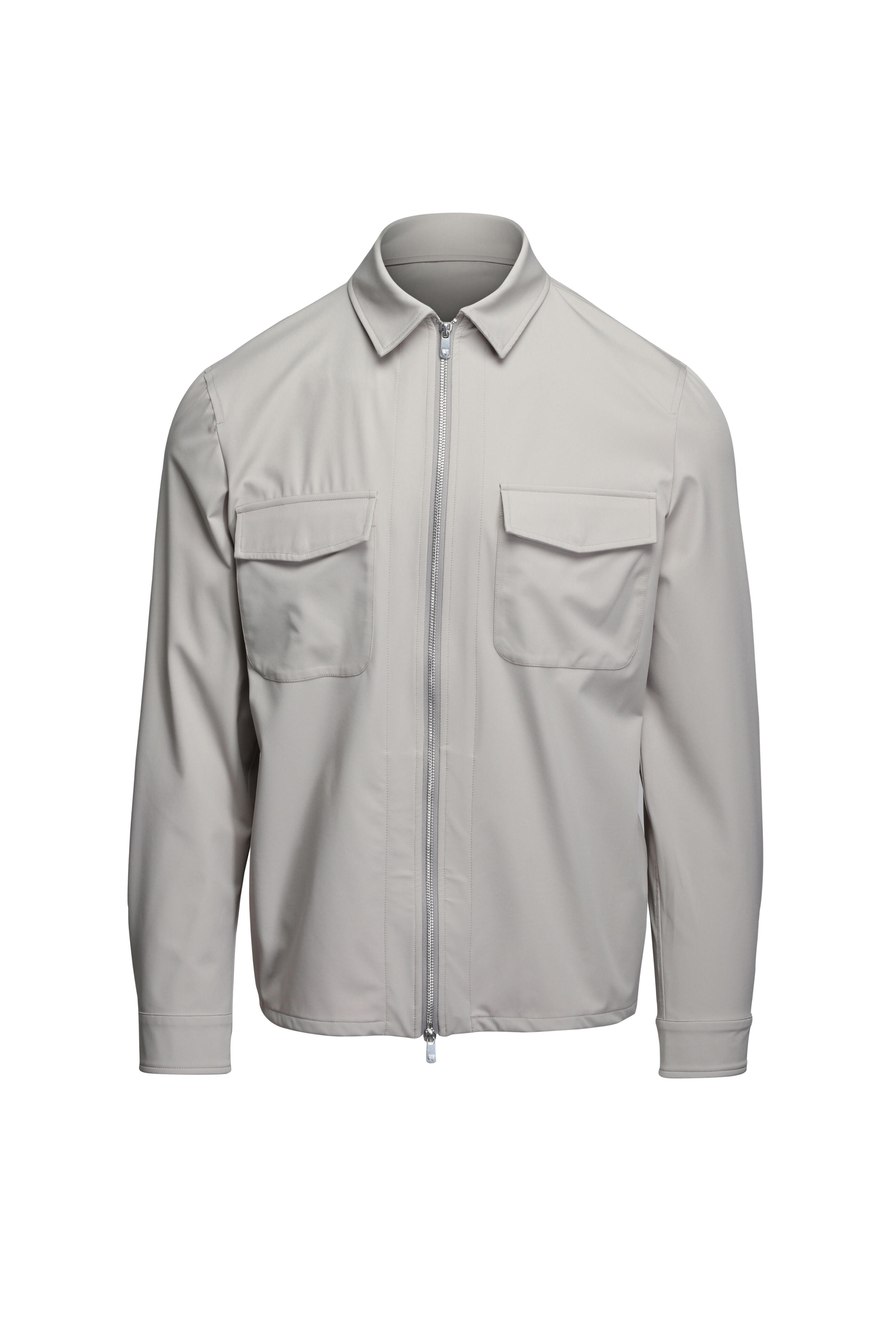 Spread collar. Two way front zip. Chest flap pockets. Single button cuffs. Made in Italy. 83% polyamide, 17% elastane. Dry clean.