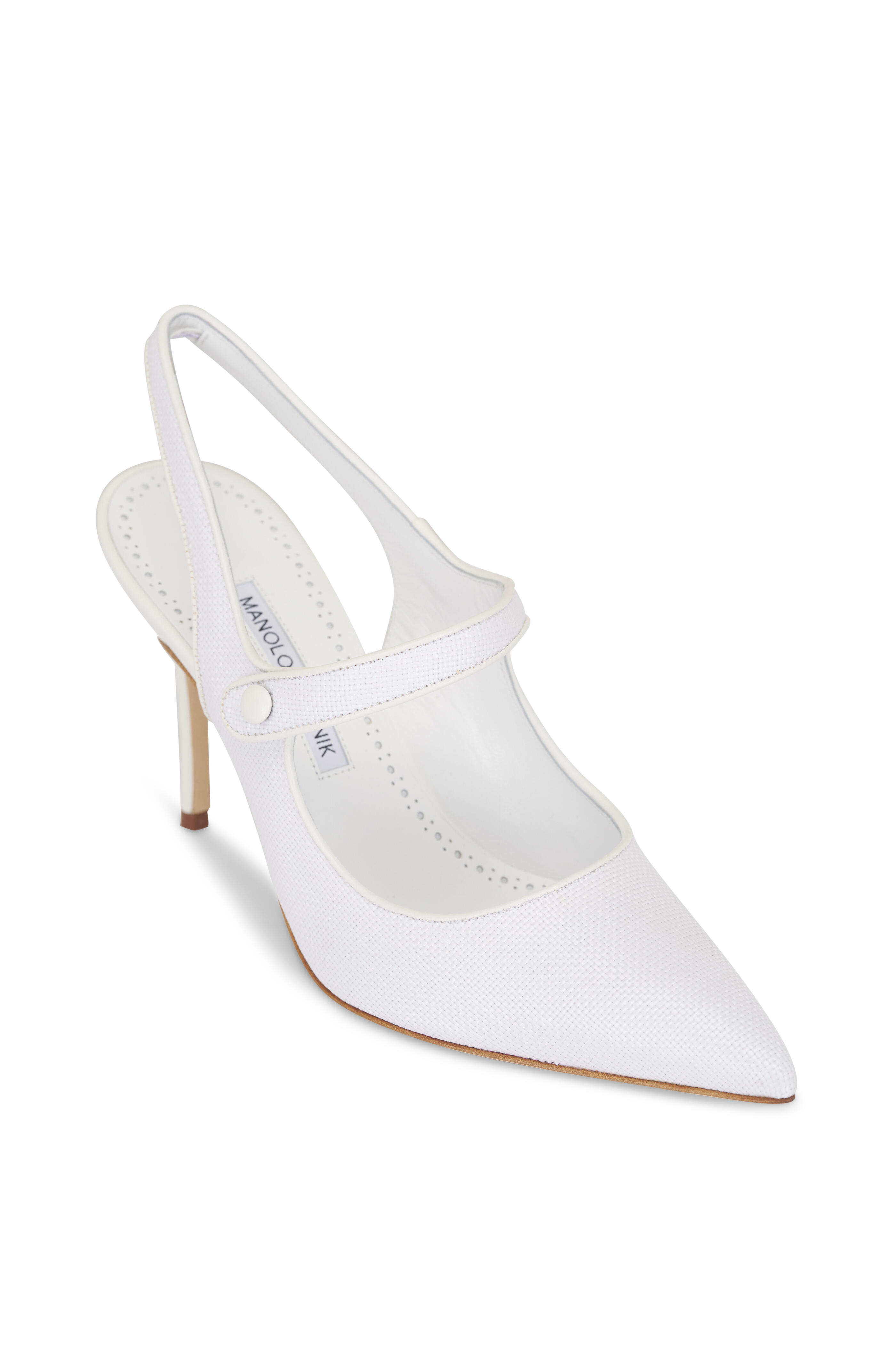 Raffia upper. Pointed toe. Slingback. Band at vamp. Leather lining and insole. Leather sole. Made in Italy. Heel measurement: 90mm.