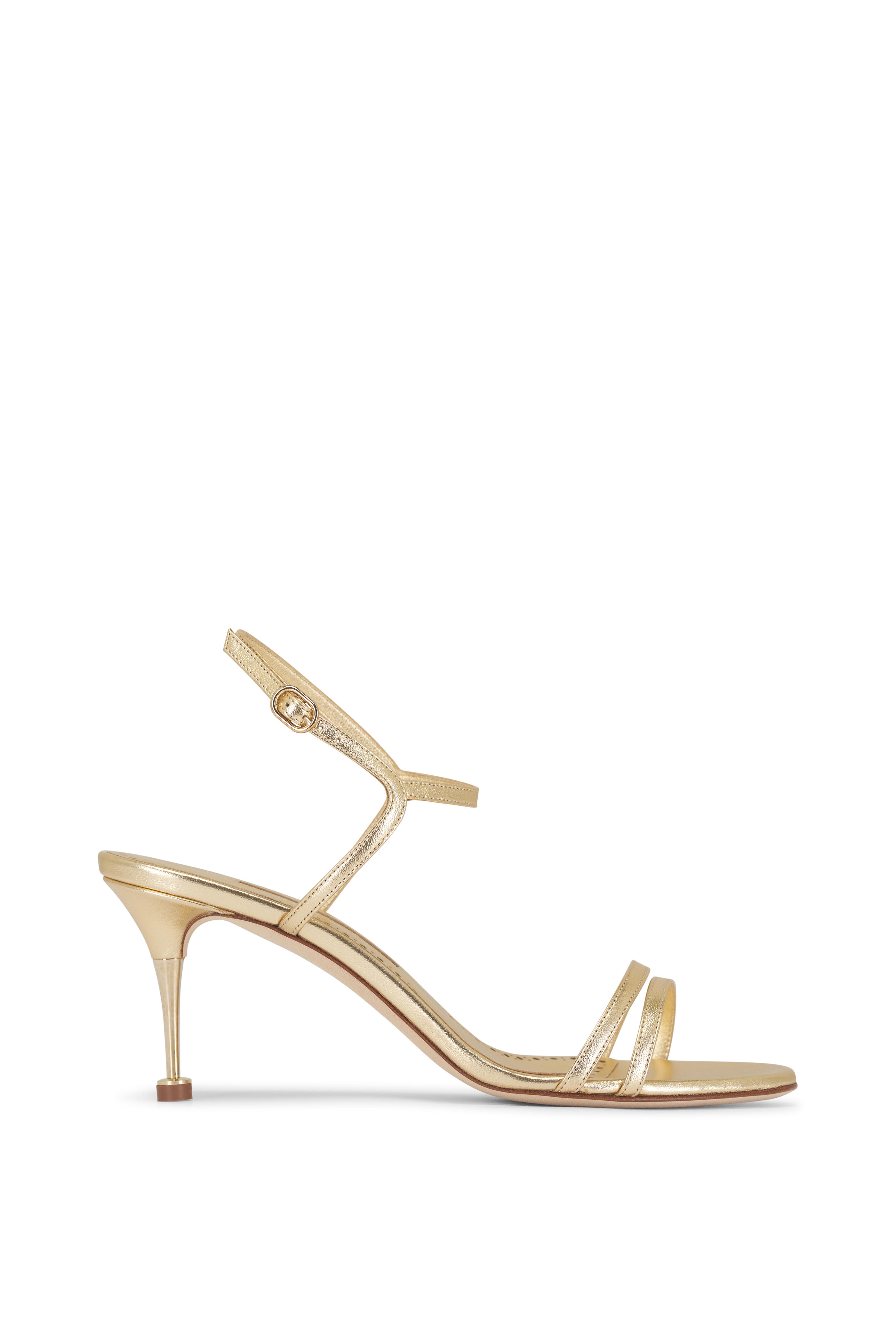 Ciagalo Gold Leather Strappy Sandal, 70mm