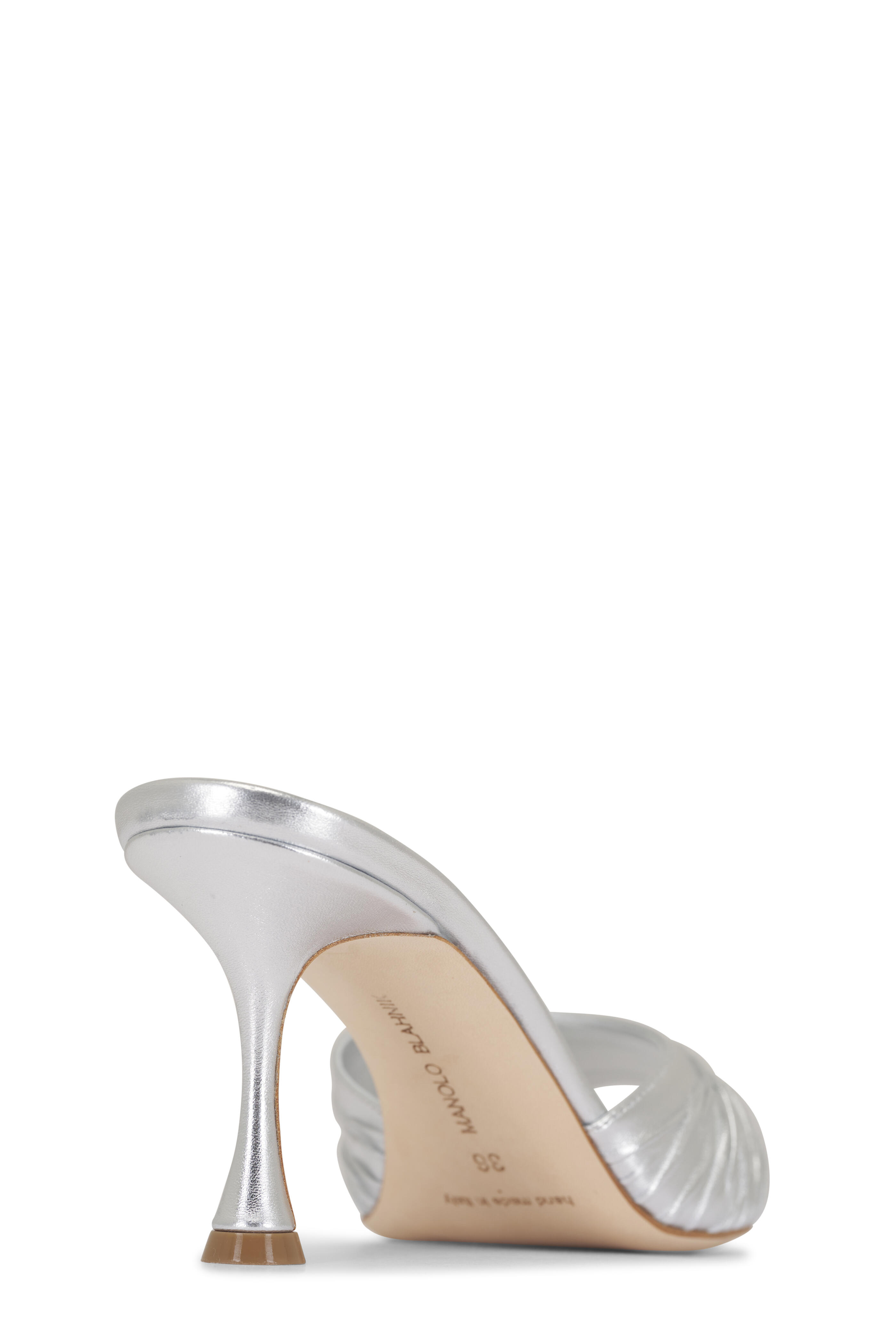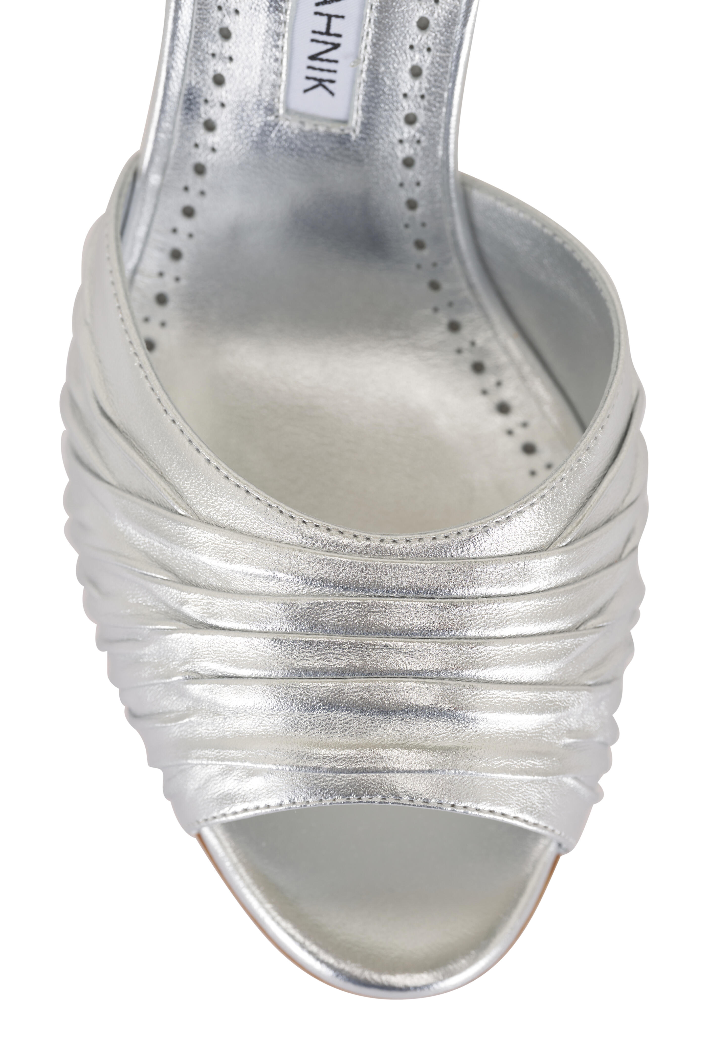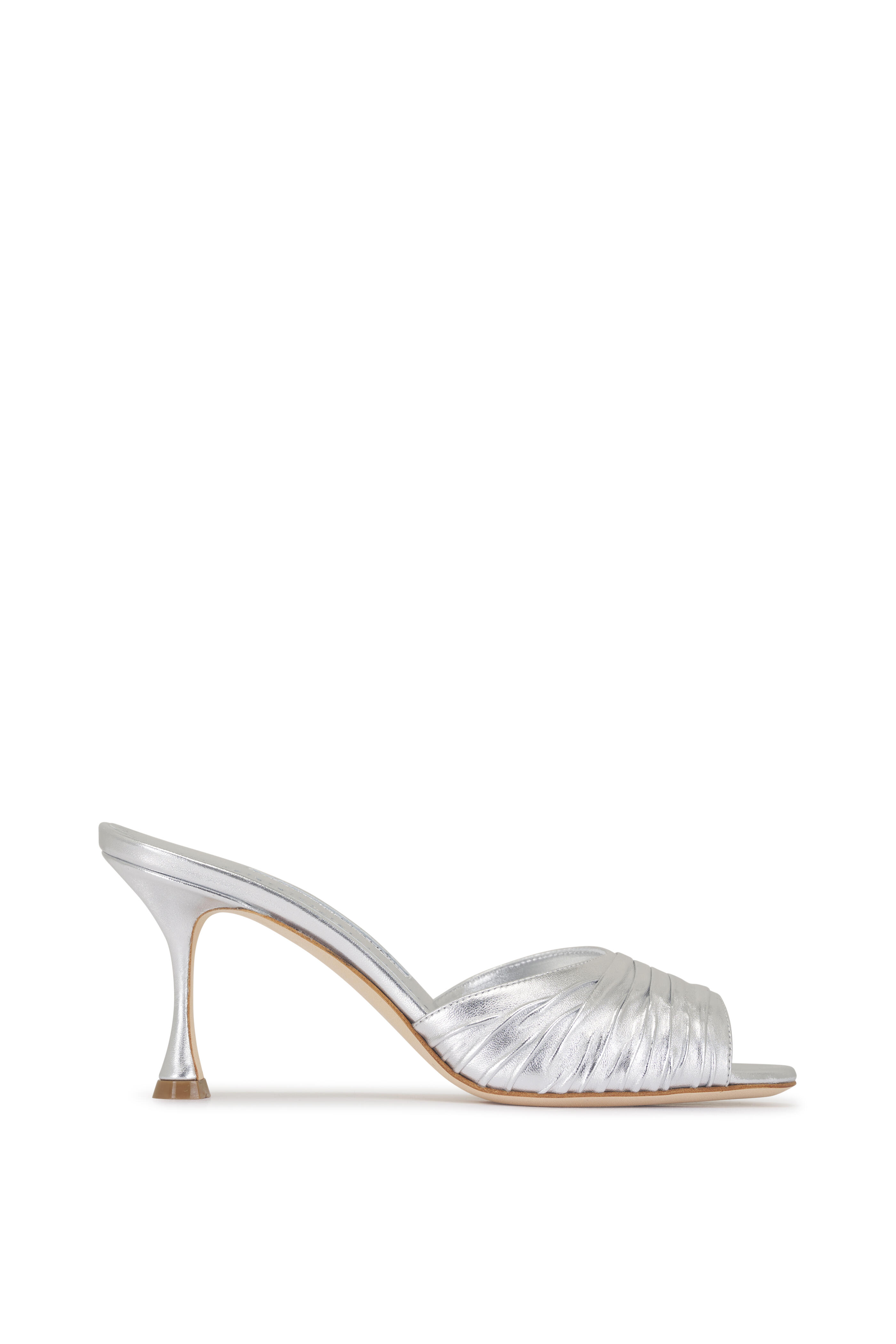 Pirua Silver Ruched Leather Sandal, 70mm