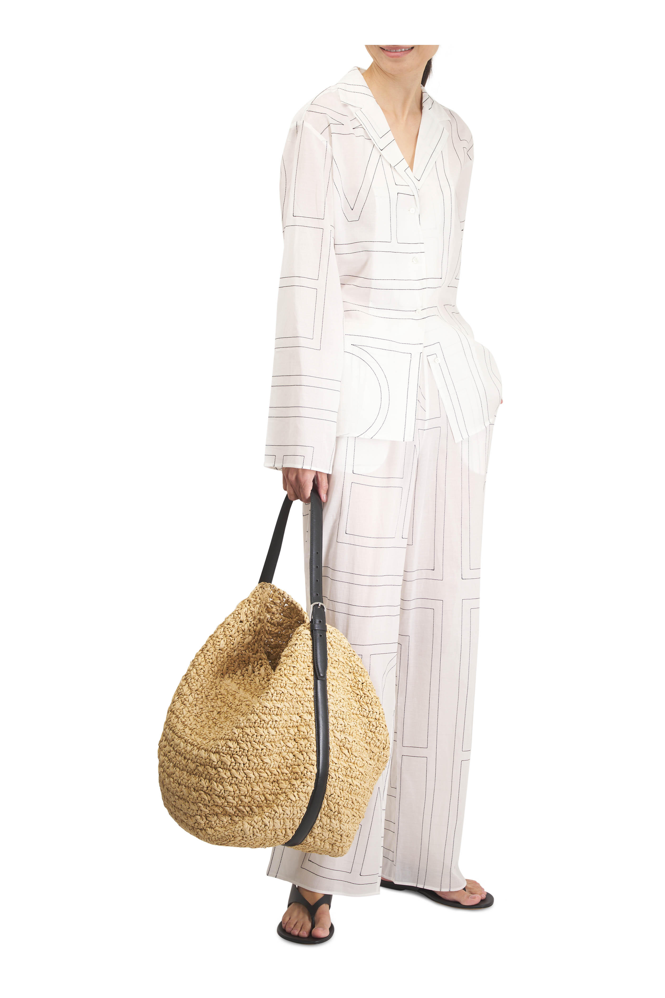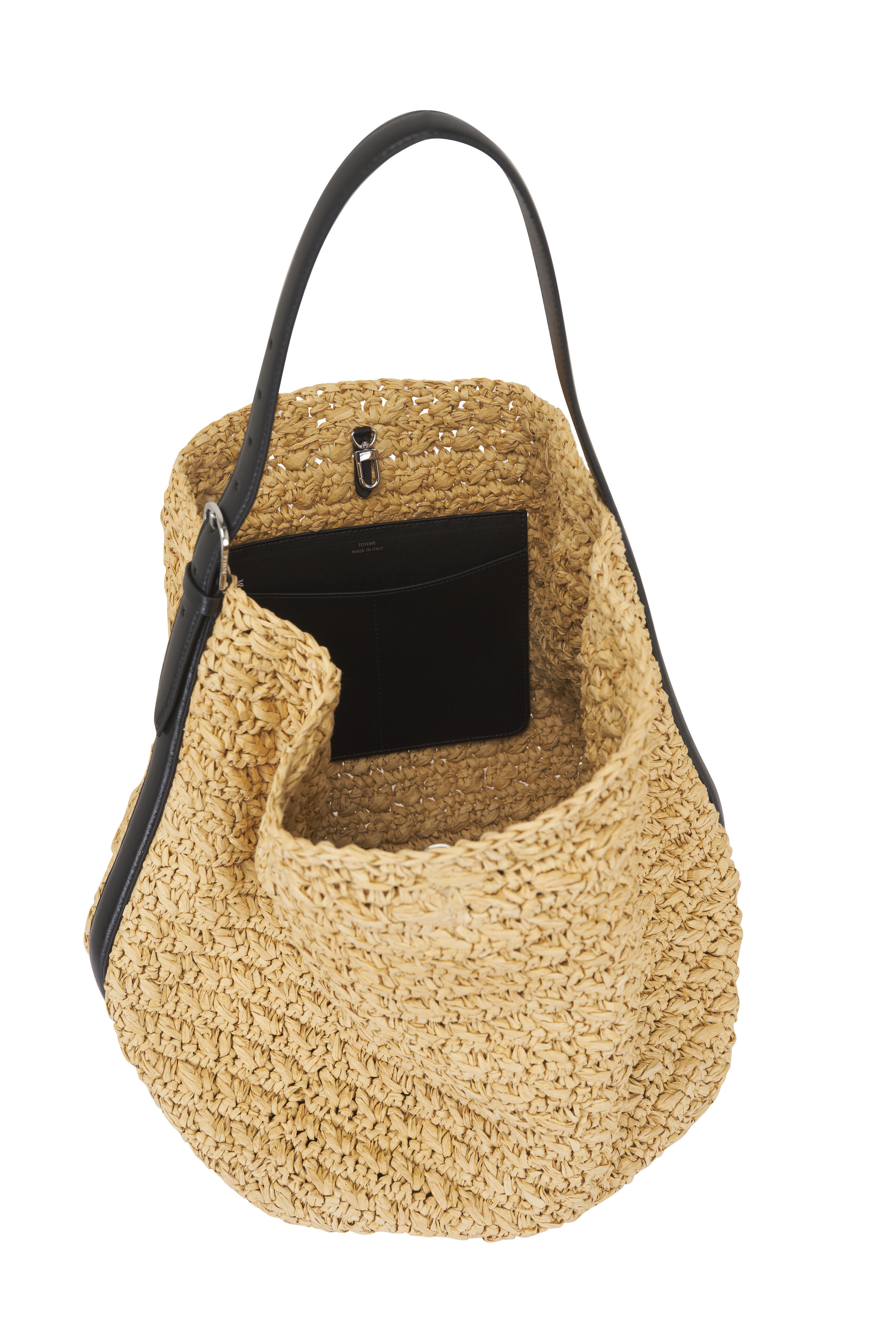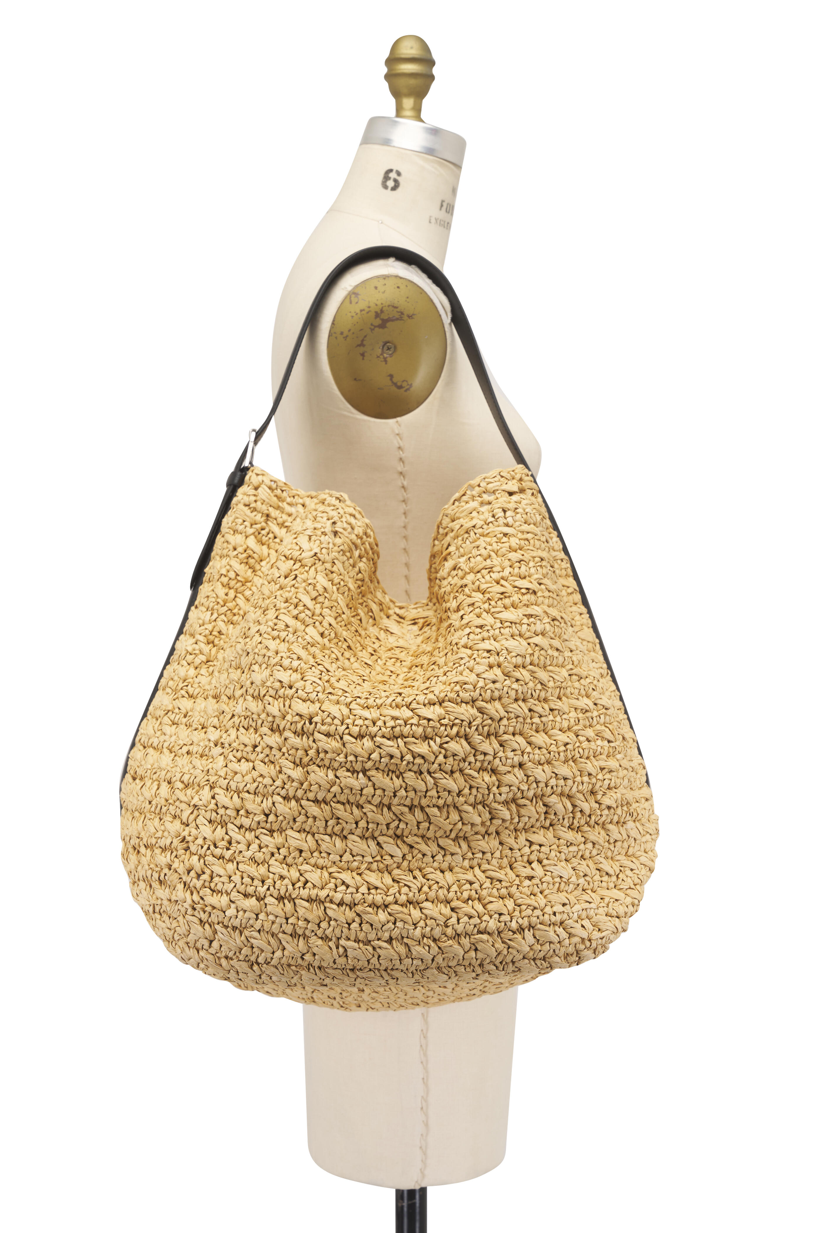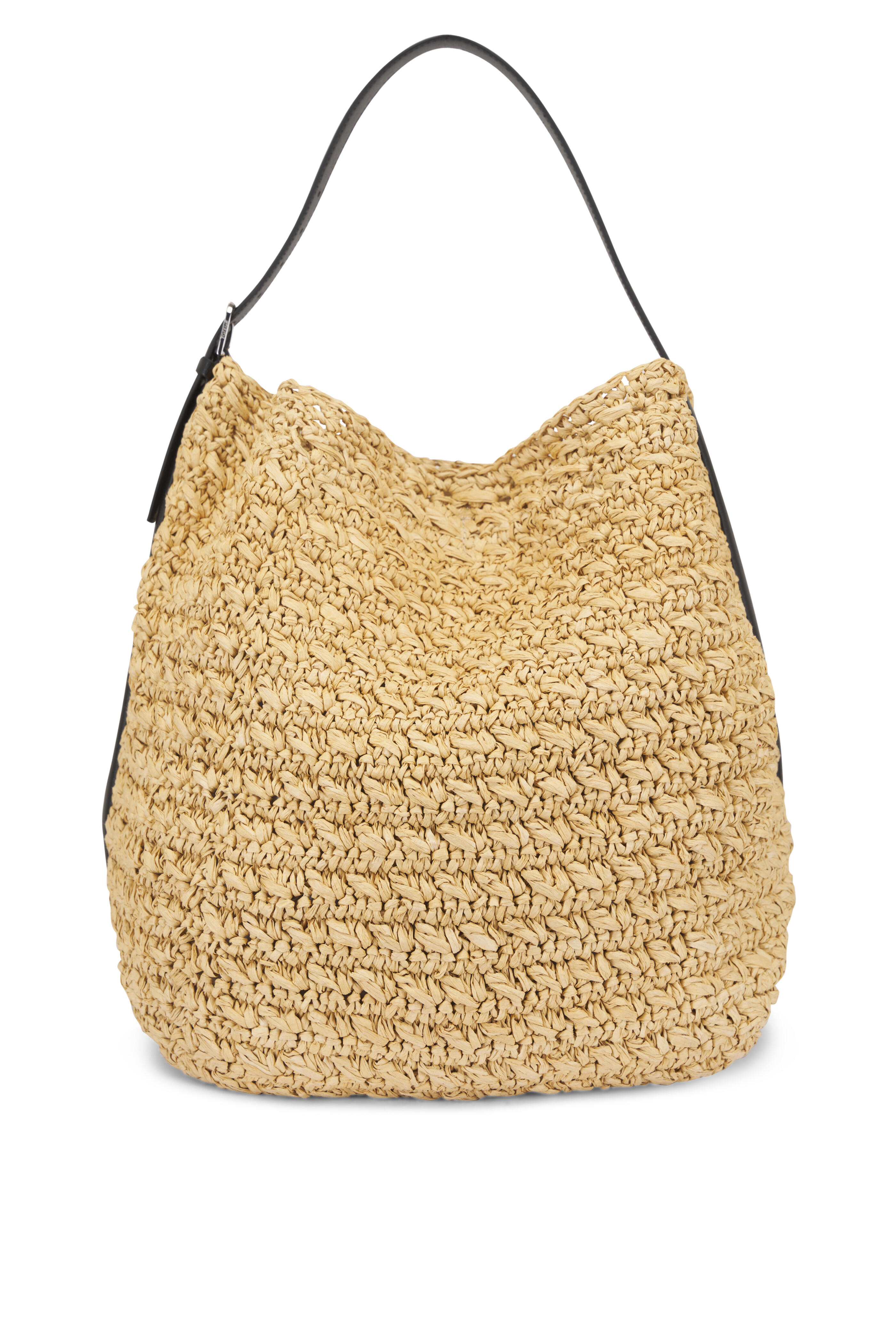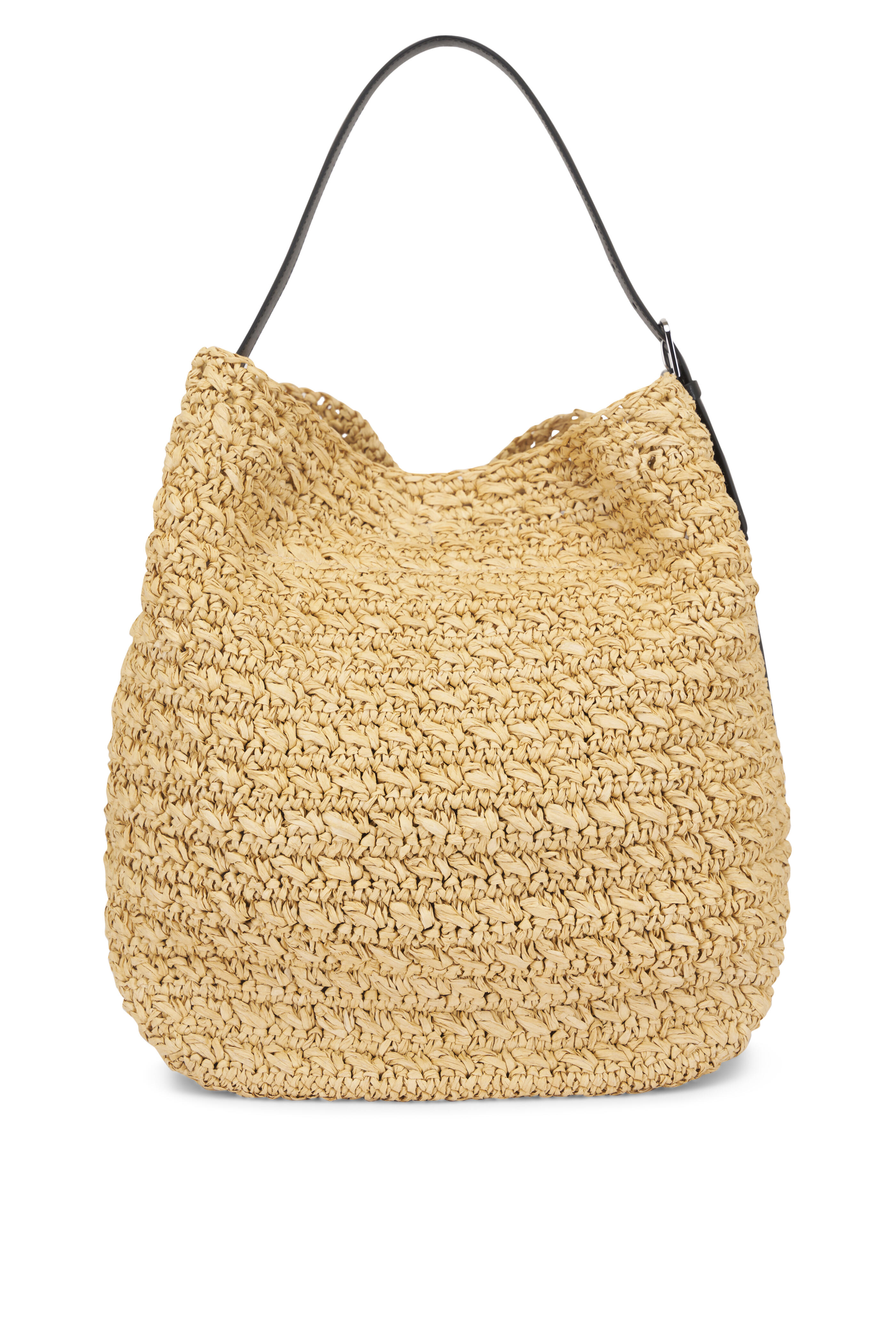Adjustable shoulder strap. Top latch closure. Leather trim. Unlined. Silver-toned hardware. Made in Italy. Width: 13.4". Height: 14.6". Depth: 10.6". Strap drop length: adjustable (29cm/11.4" on middle hole). 100% paper.