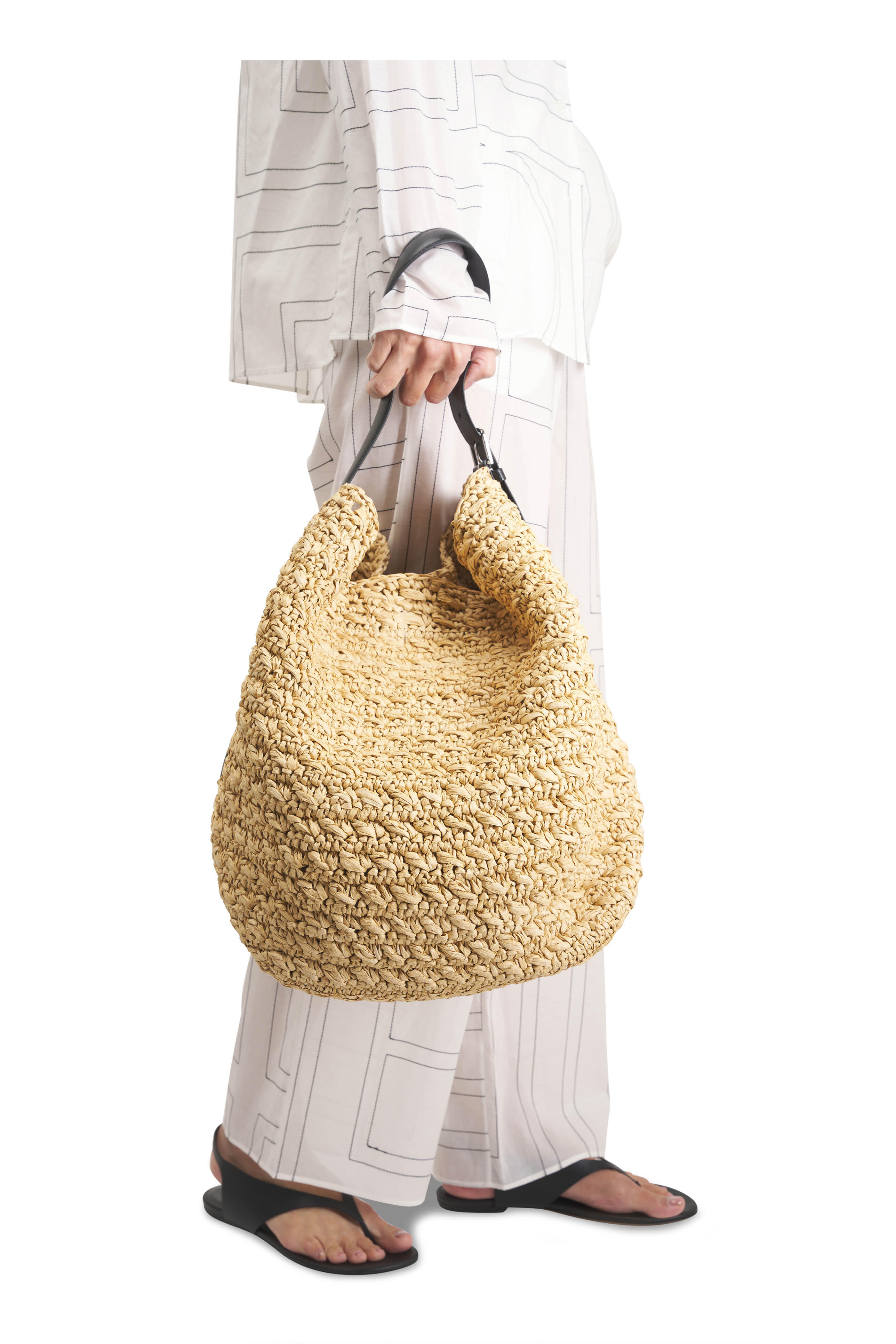 Natural Belted Raffia Tote
