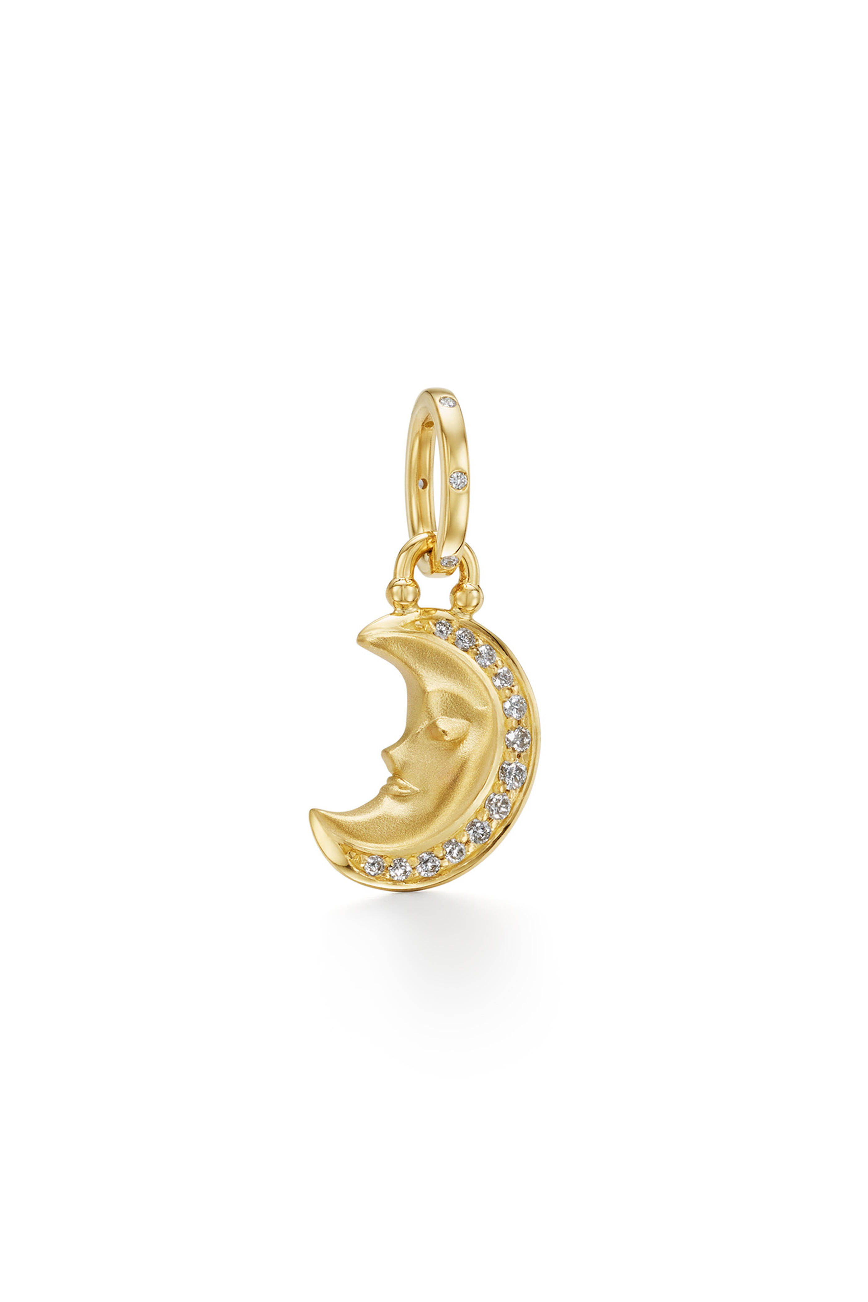 The 18K Blue Sapphire Crescent Moon Pendant is a sculptural miniature—one side lit with diamonds, the other with sapphires. It reveals both the light and dark sides of the moon, a quiet meditation on duality and illumination.