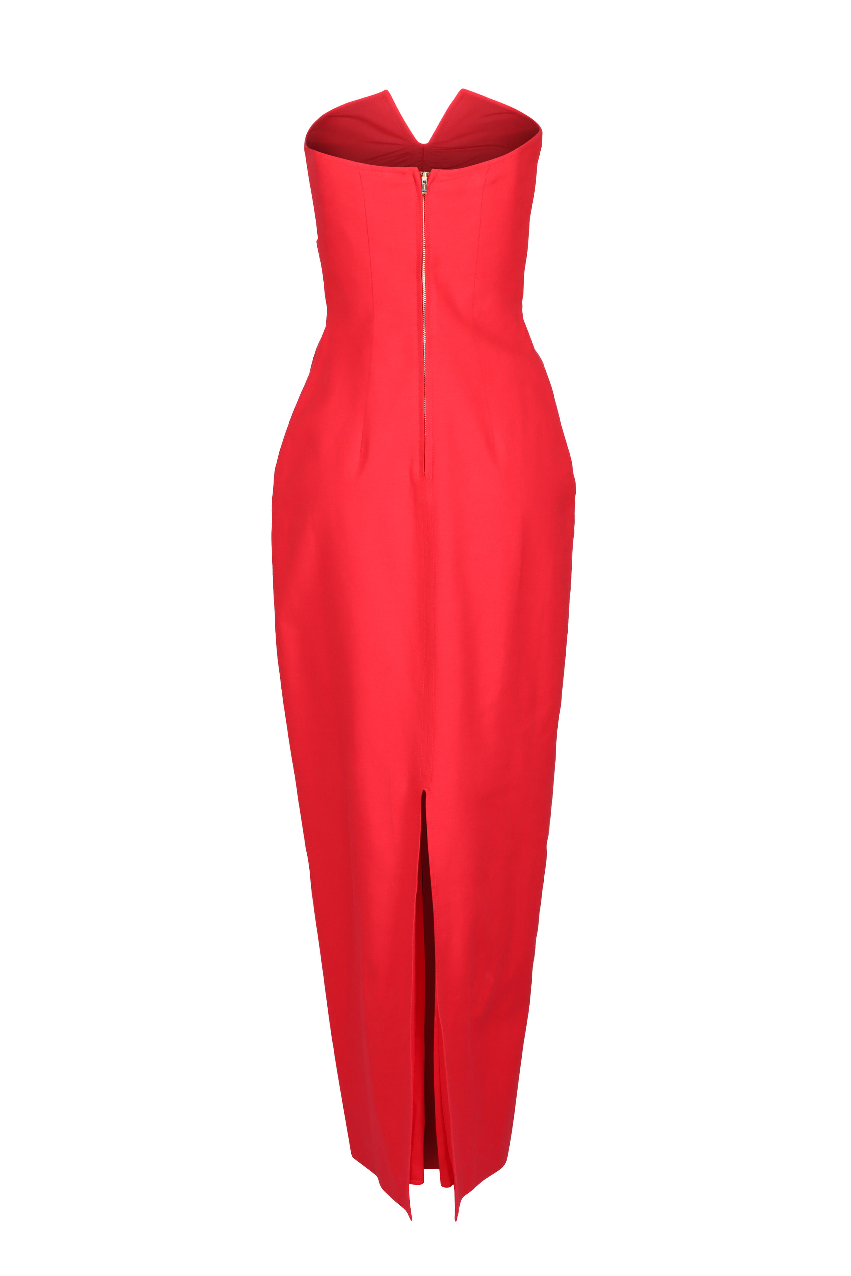 Strapless. Fine ruching at the cut-away neckline and back darts for shaping. Metal zip opening at the center back. Internal boning for structure. Imported. 55% linen 43% viscose 2% elastane blend. Dry clean.