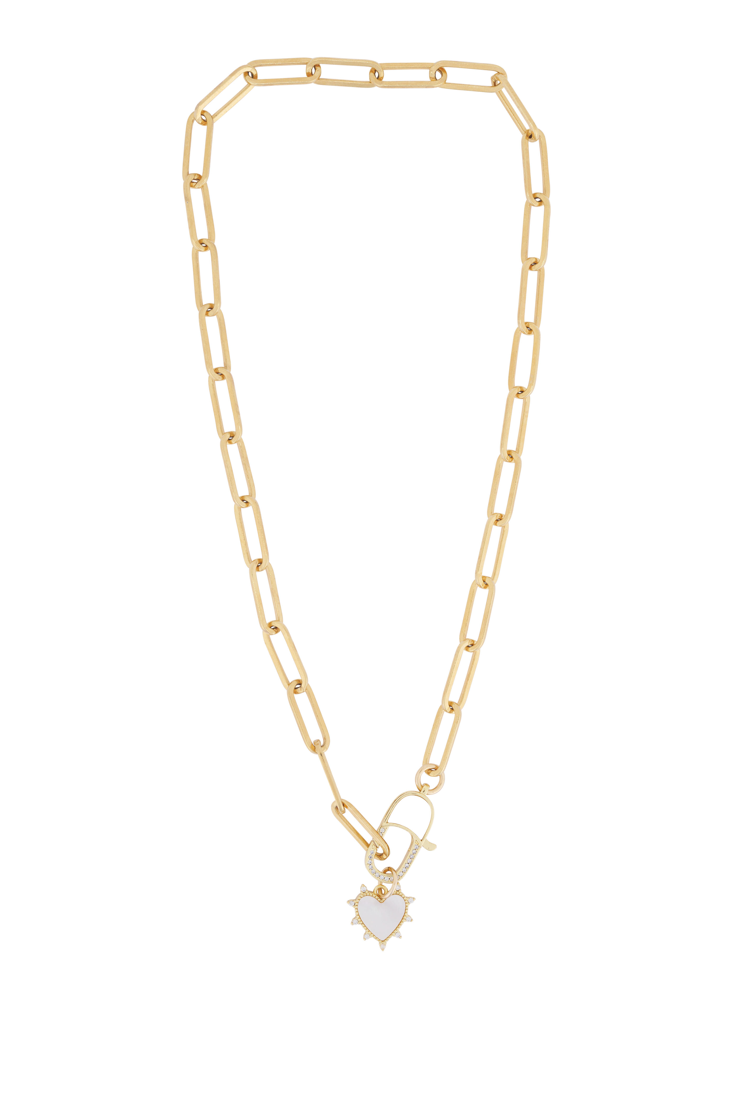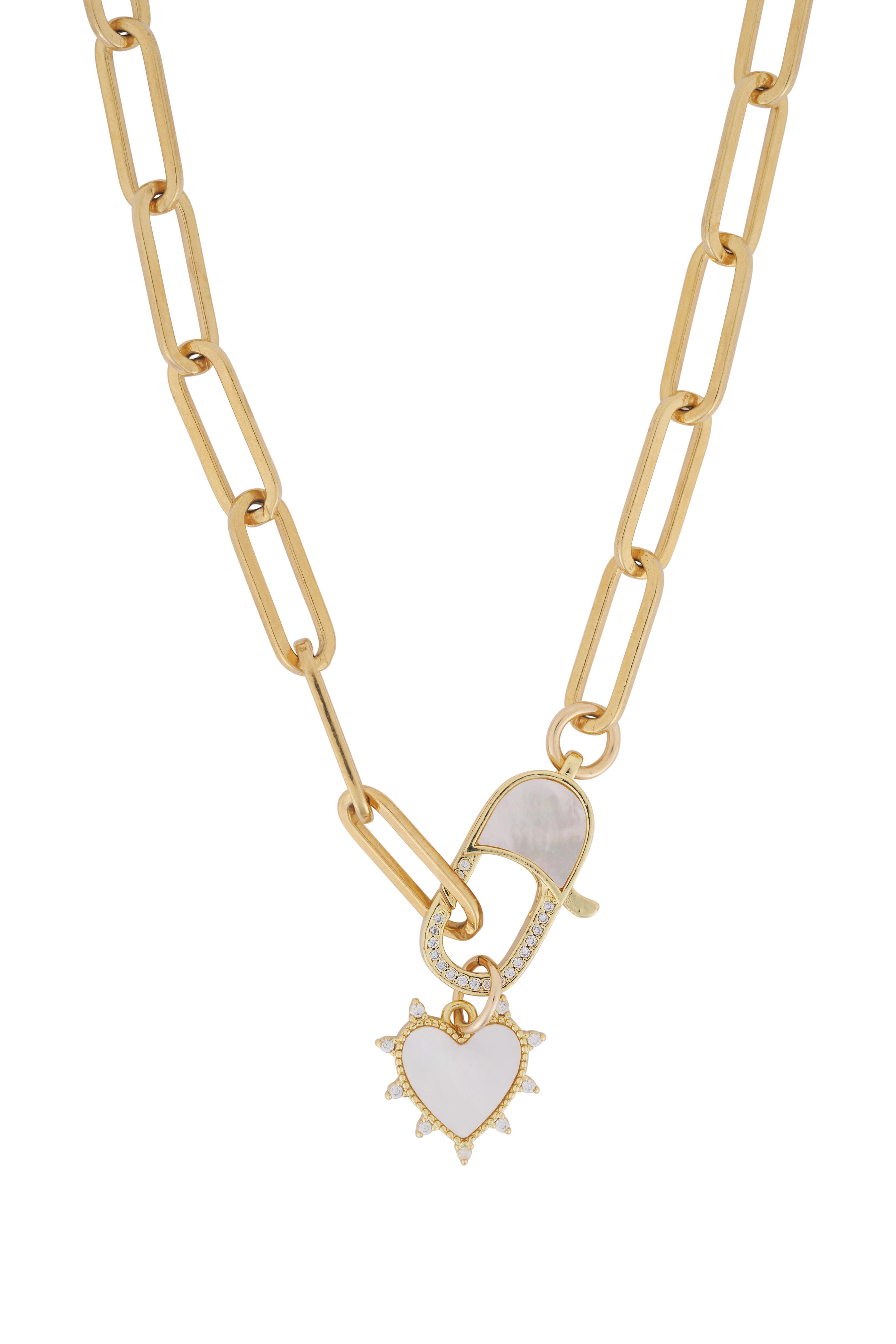 24k Gold Overlay. Mother of Pearl Heart Charm & Clasp.