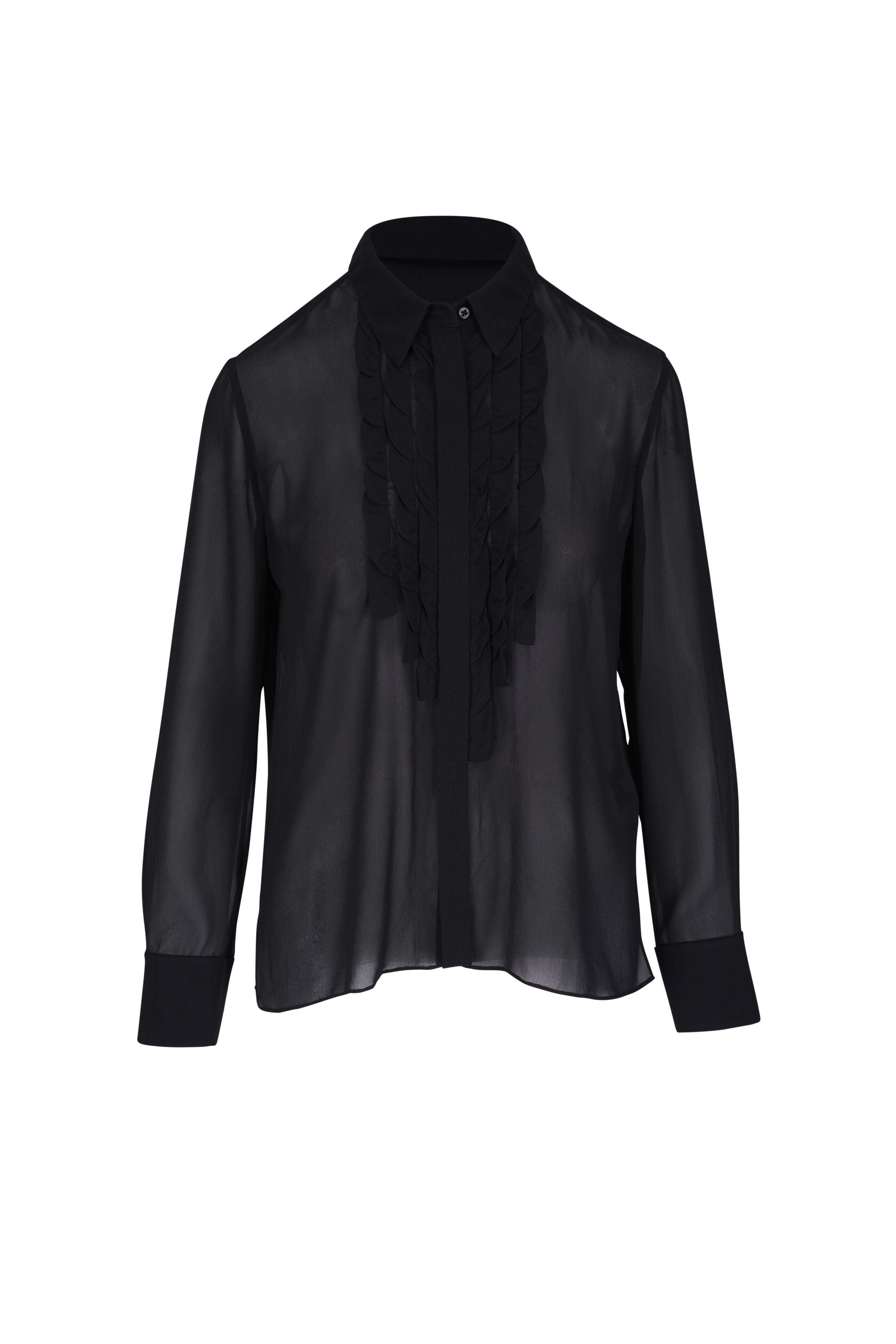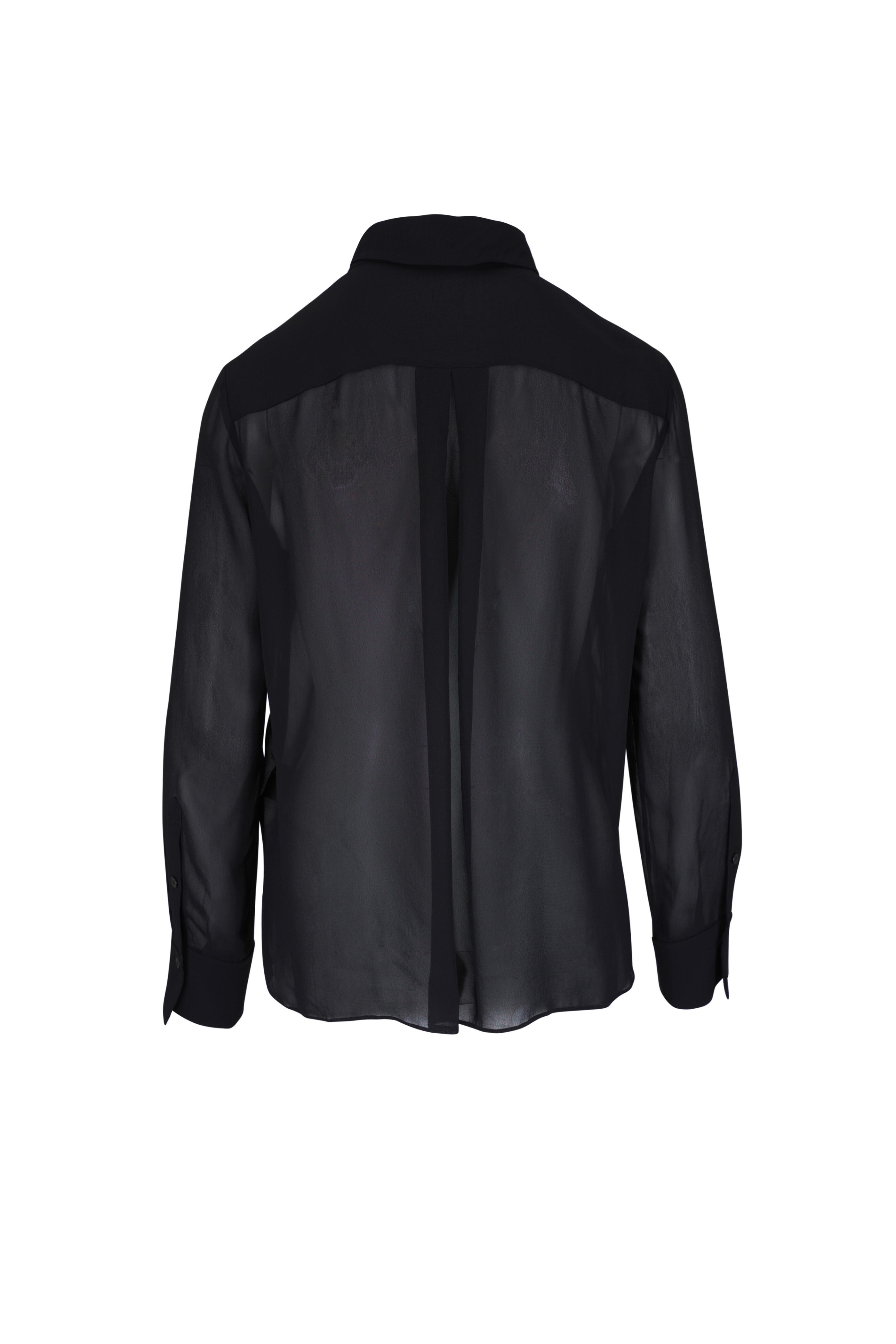 Spread collar. Concealed front button placket. Single button square cuffs. Imported. 100% viscose. Dry clean.