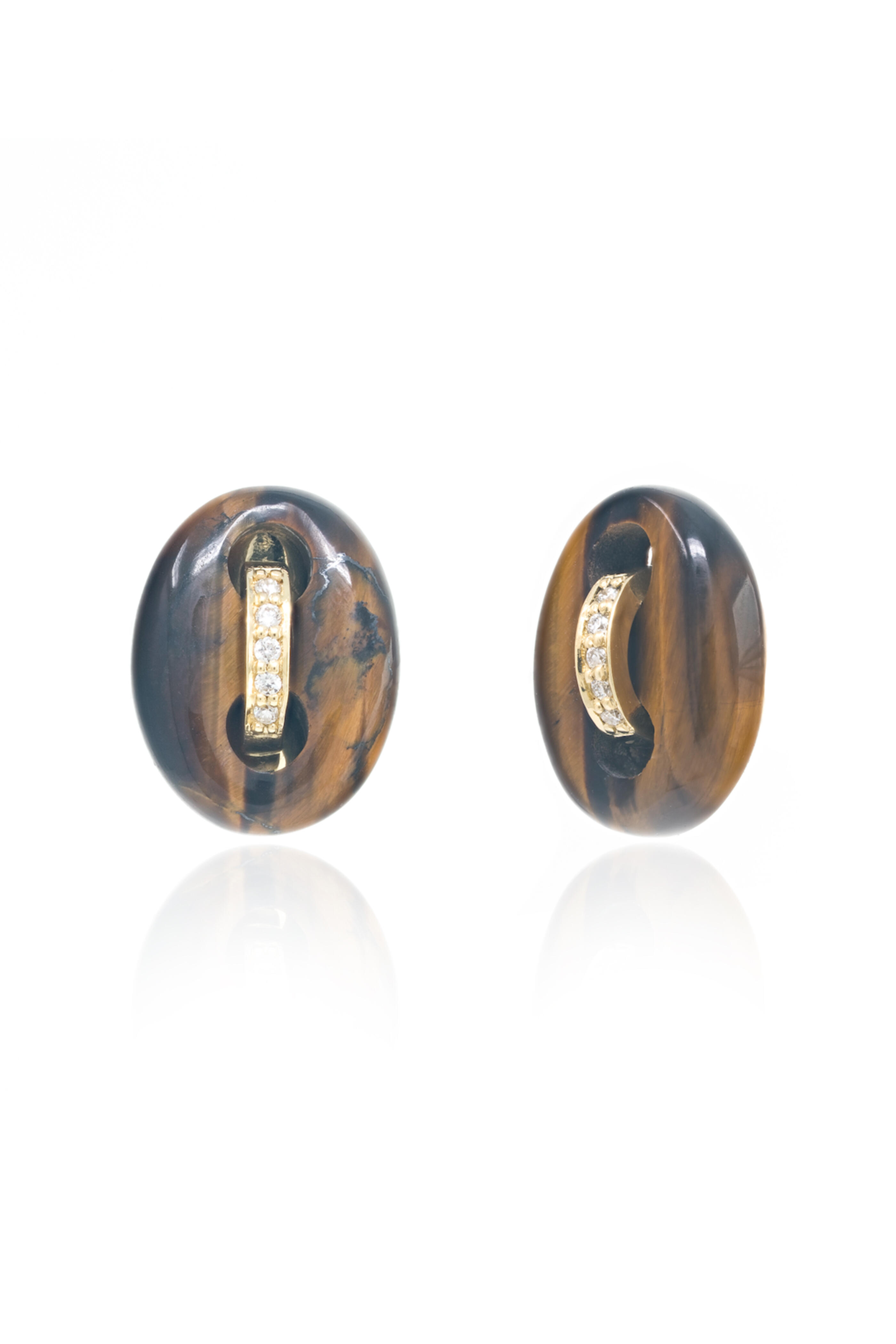 18k Yellow Gold Diamond Tigers Eye Mariner Studs
