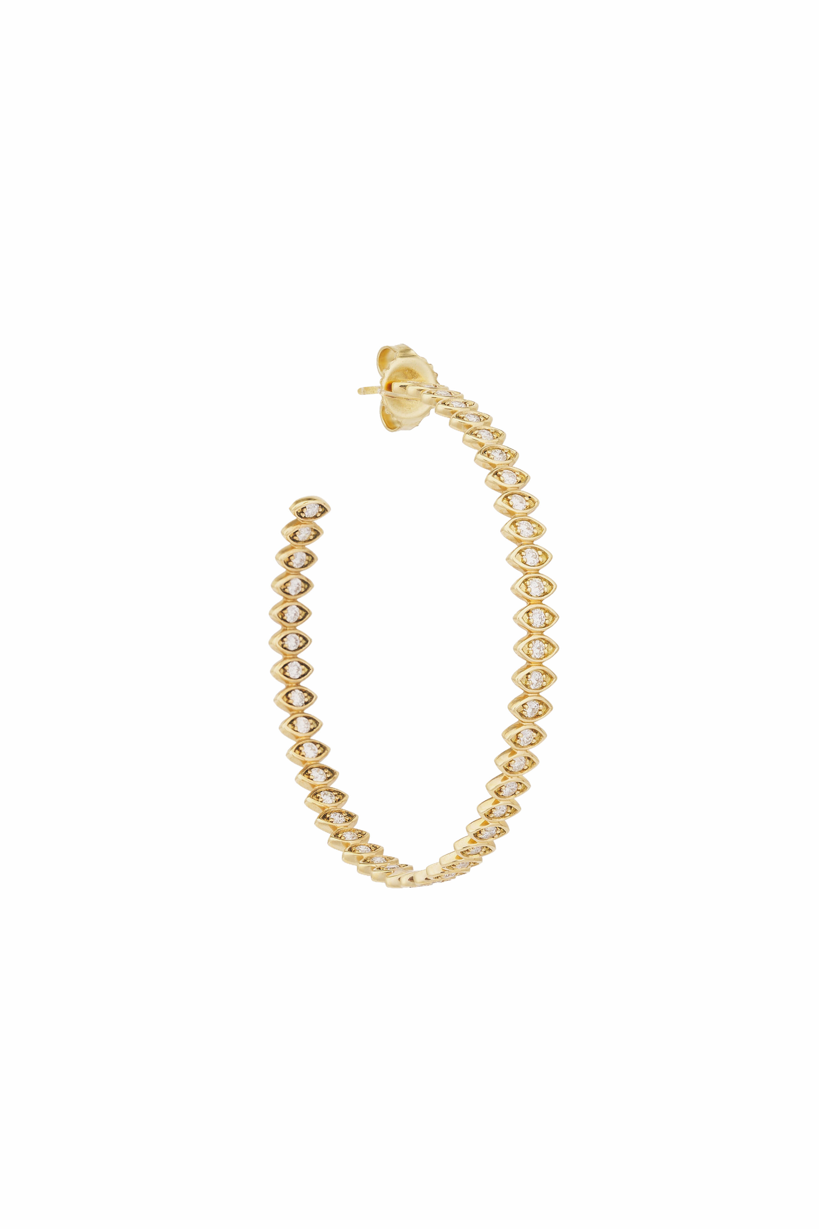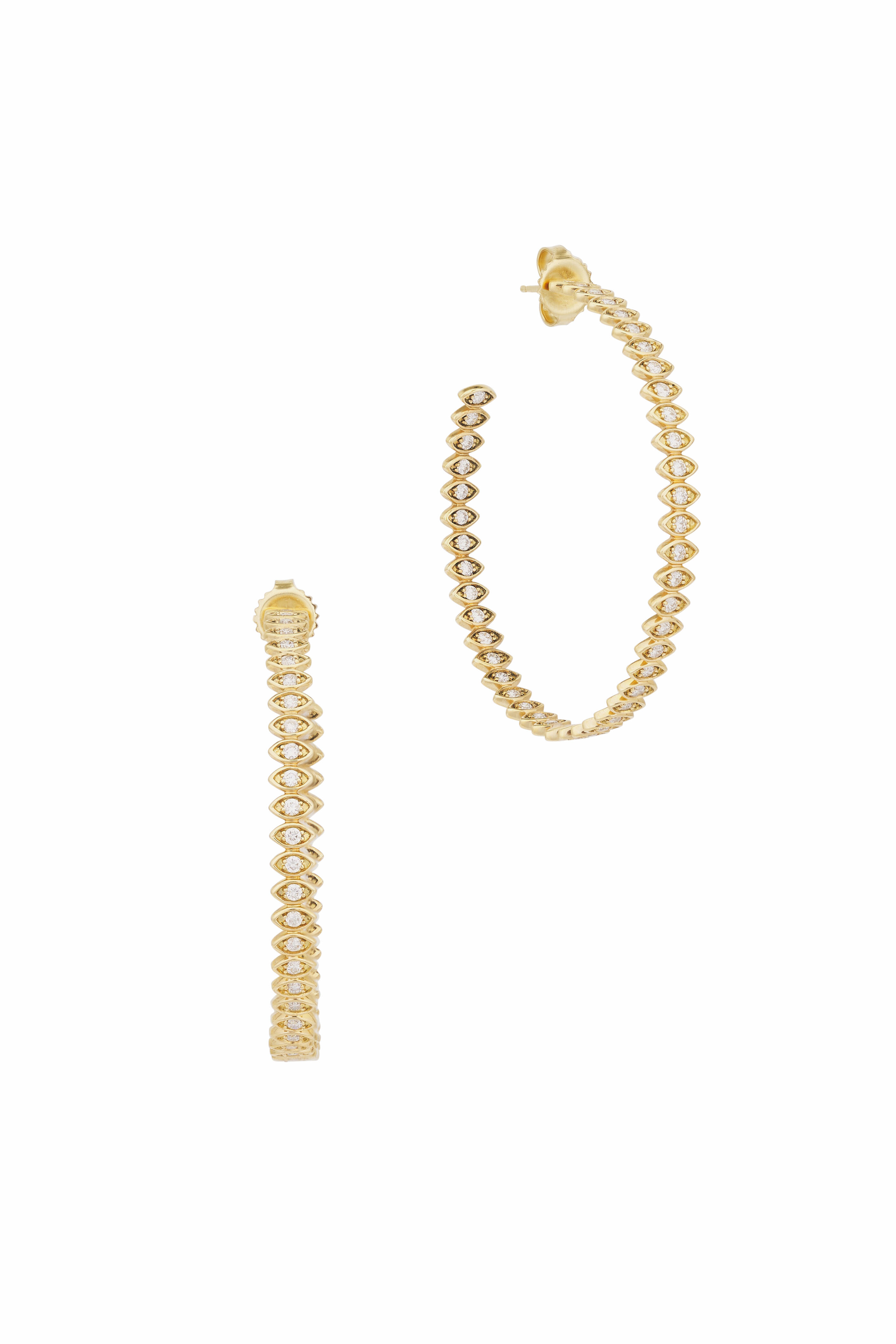 14k Yellow Gold Marquise Diamond Evil Eye Hoops