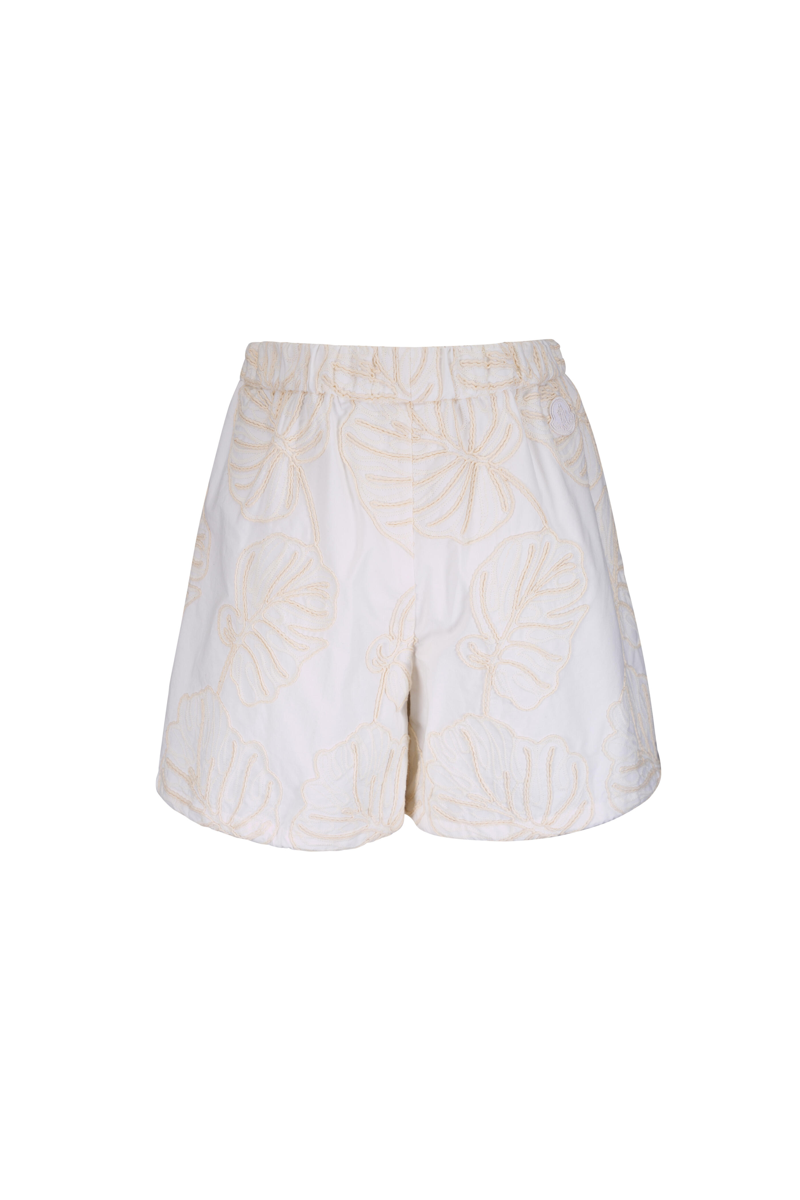 White Cotton Floral Embellished Shorts