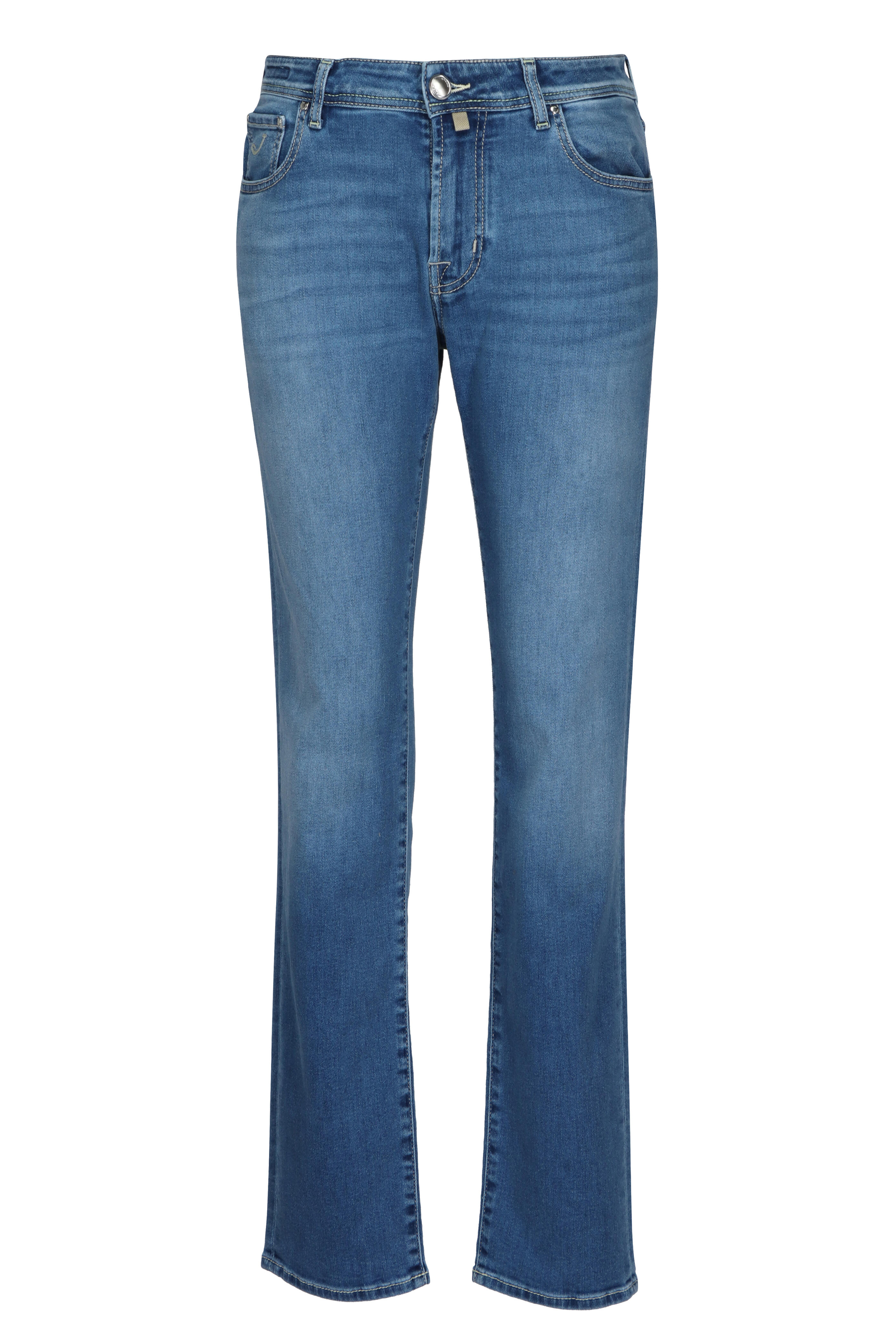 Zip fly. Belt loops. Regular rise. Five pocket styling. Made in Italy. 94% cotton, 4% elastomultiester, 2% elastane. Machine wash.