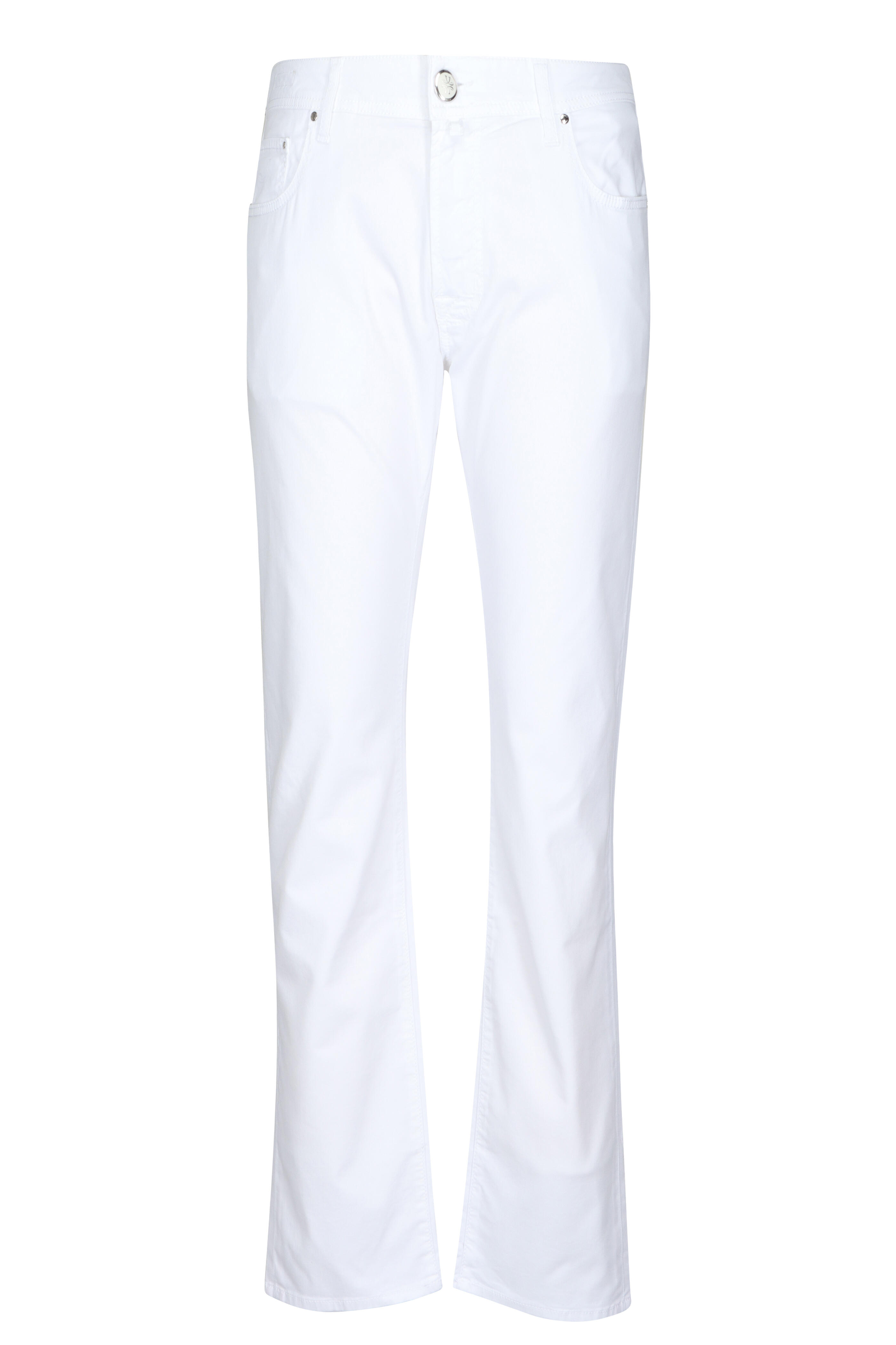 Button fly. Belt loops. Five pocket styling. Made in Italy. Regular-slim fit. 98% cotton, 2% elastane. Machine wash.