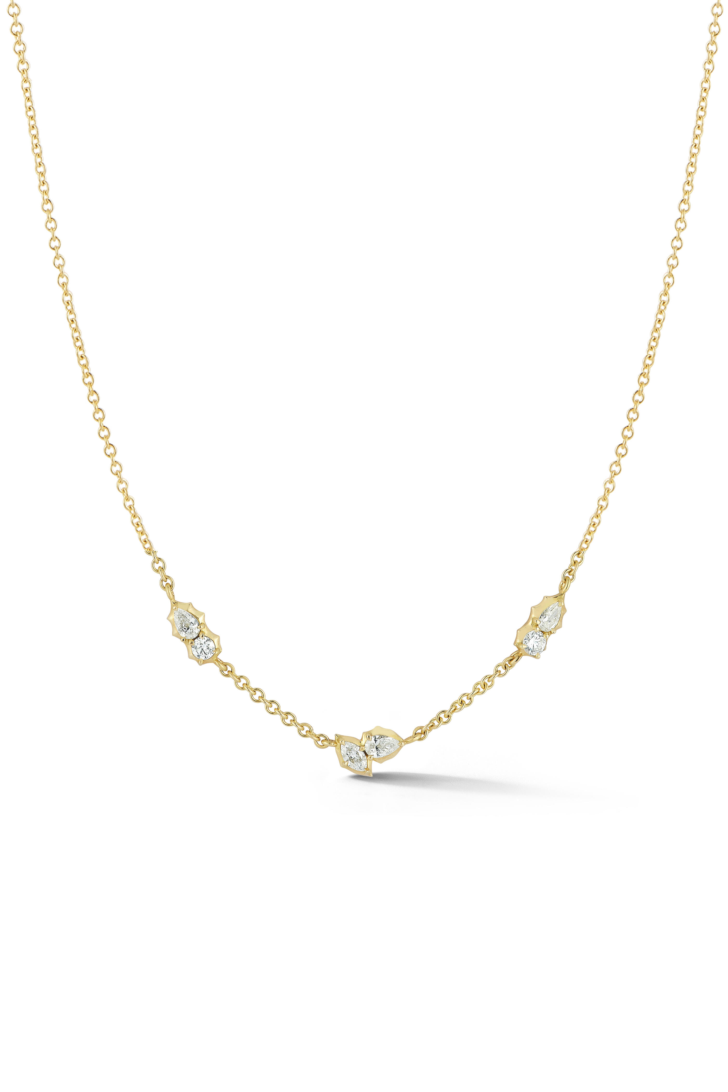 18k Yellow Gold Diamond Posey 3 Station Necklace