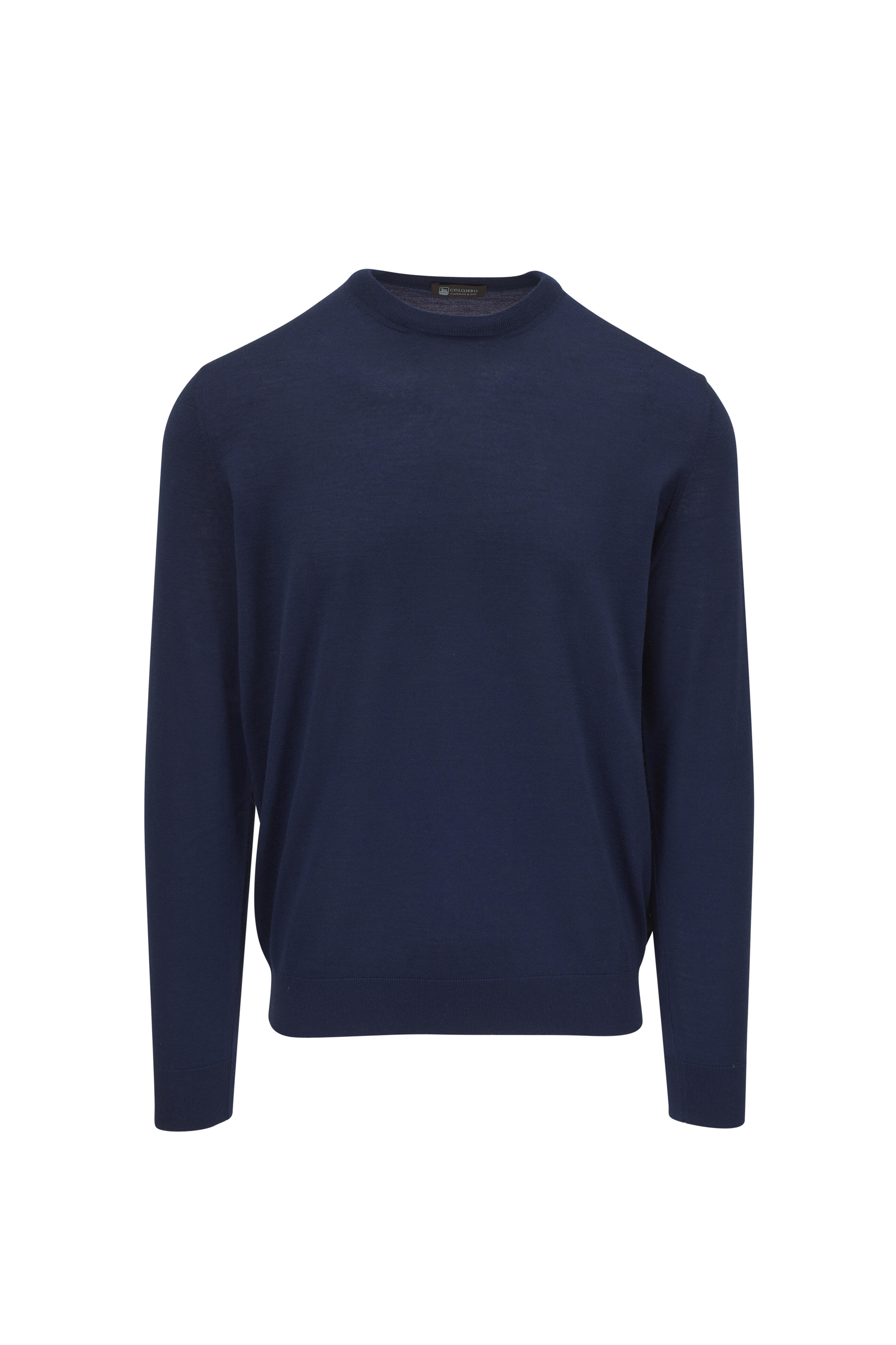 Navy Blue Cashmere & Silk Crewneck Sweater