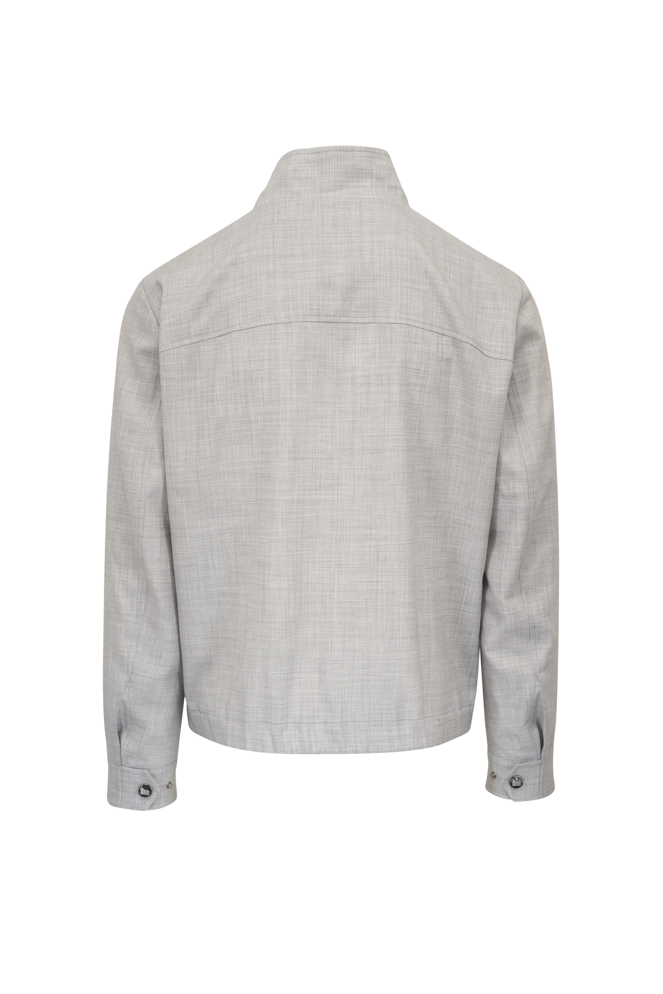 Stand collar. Two-way zip closure. Logo zipper pull. Side slip pockets. Adjustable snap button hem. Made in Italy. Shoulder to hem 27" (size 40). 100% cashmere.