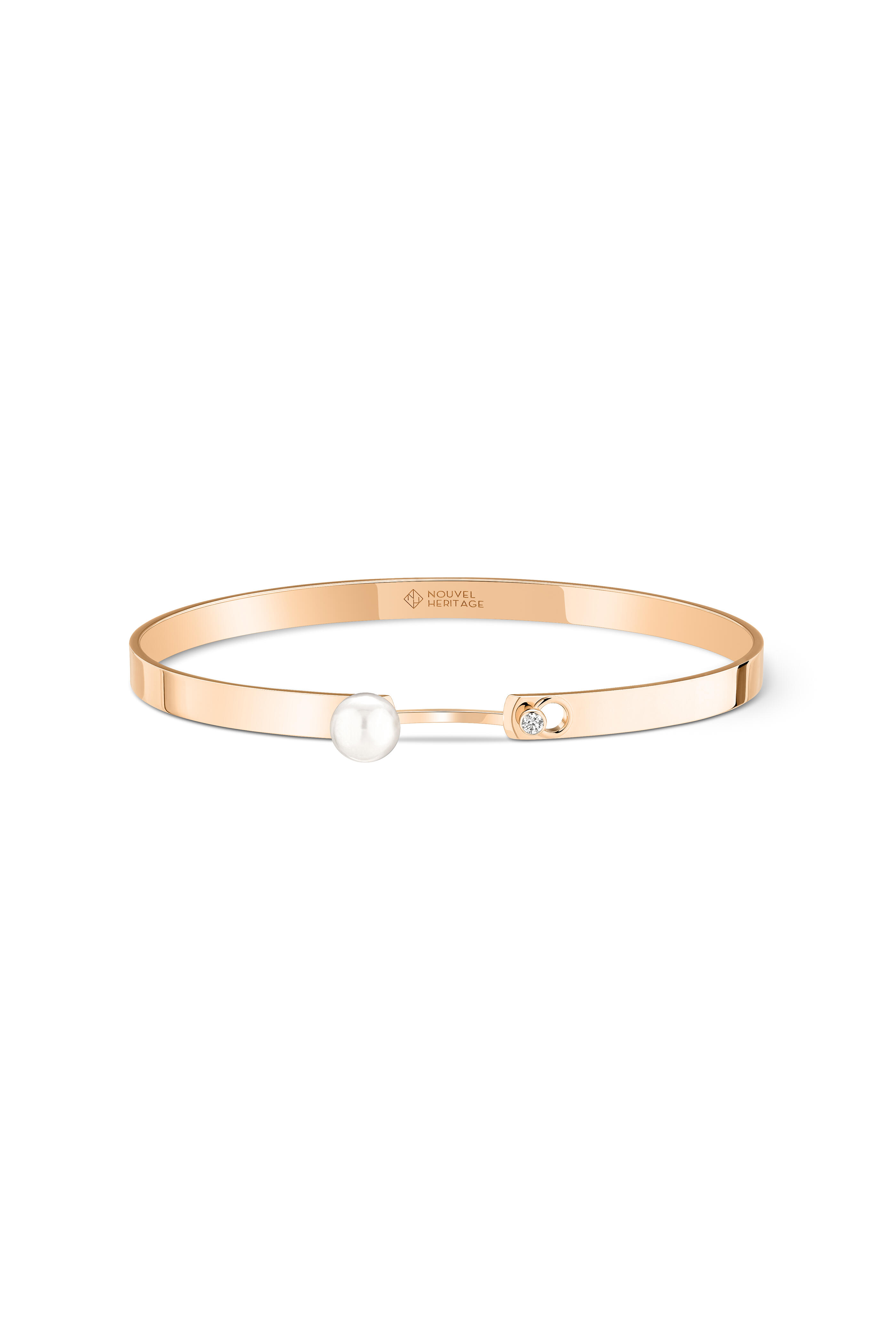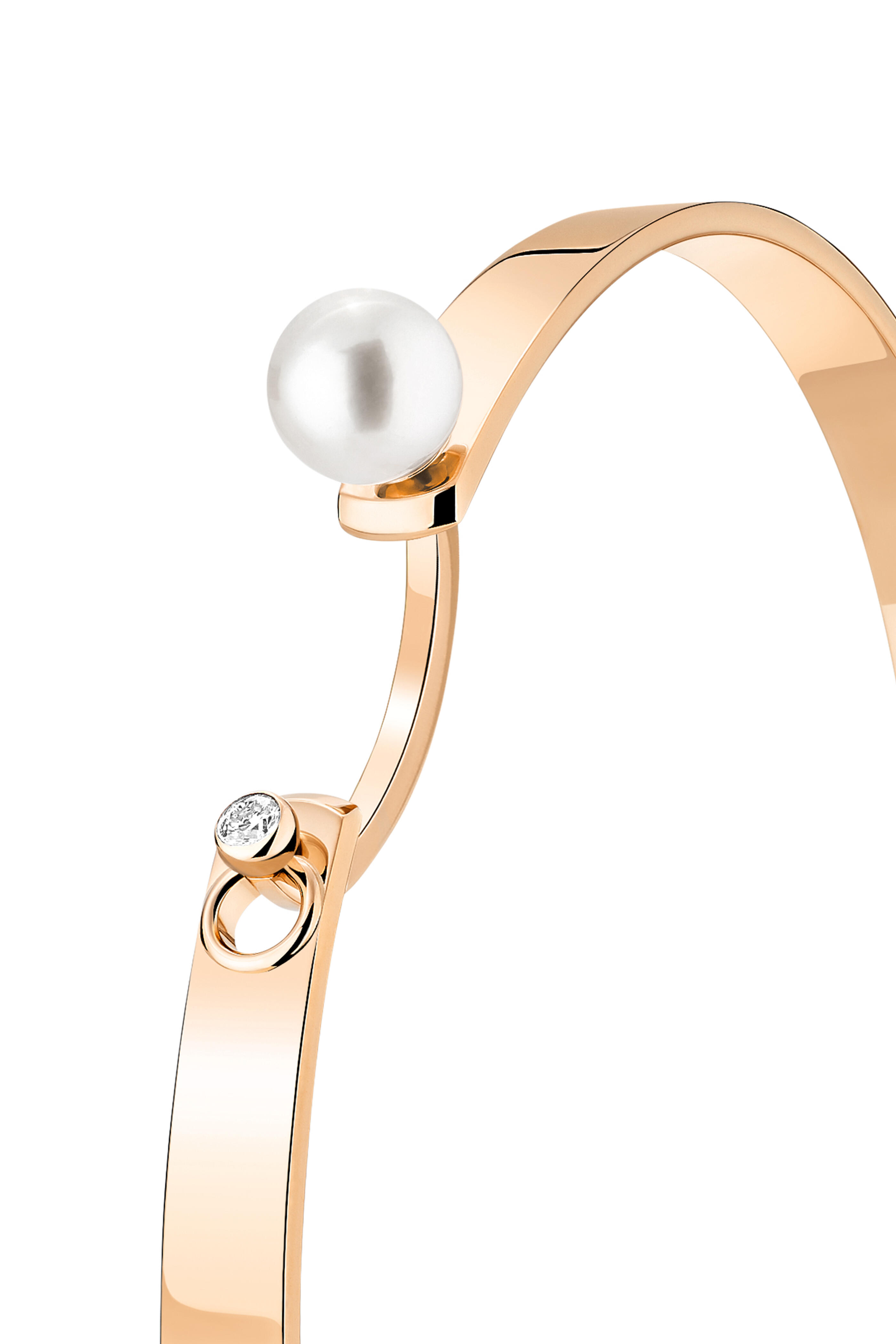 18k rose gold. .03ct white diamond. White Akoya pearl. 4mm.
