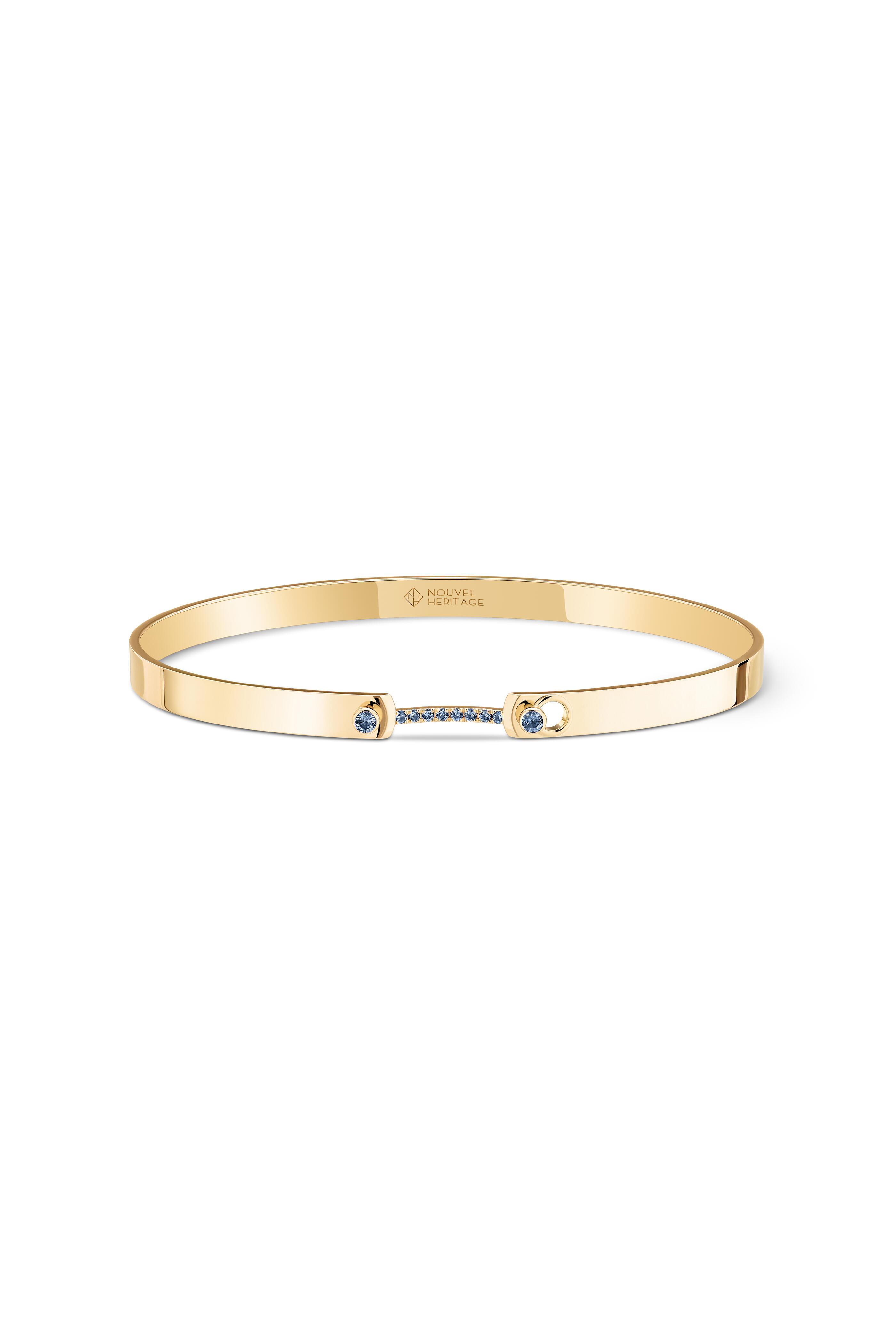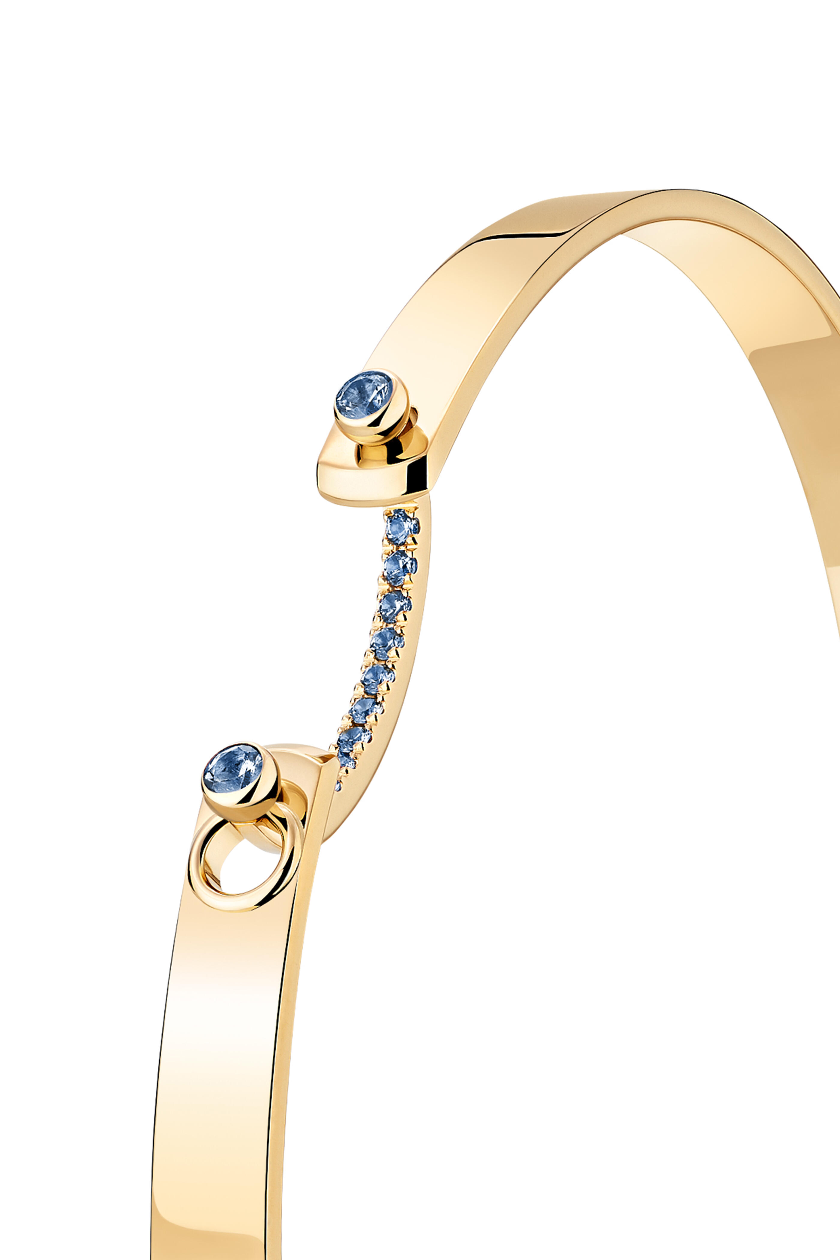 18k yellow gold. .12ct blue sapphire. 4mm.