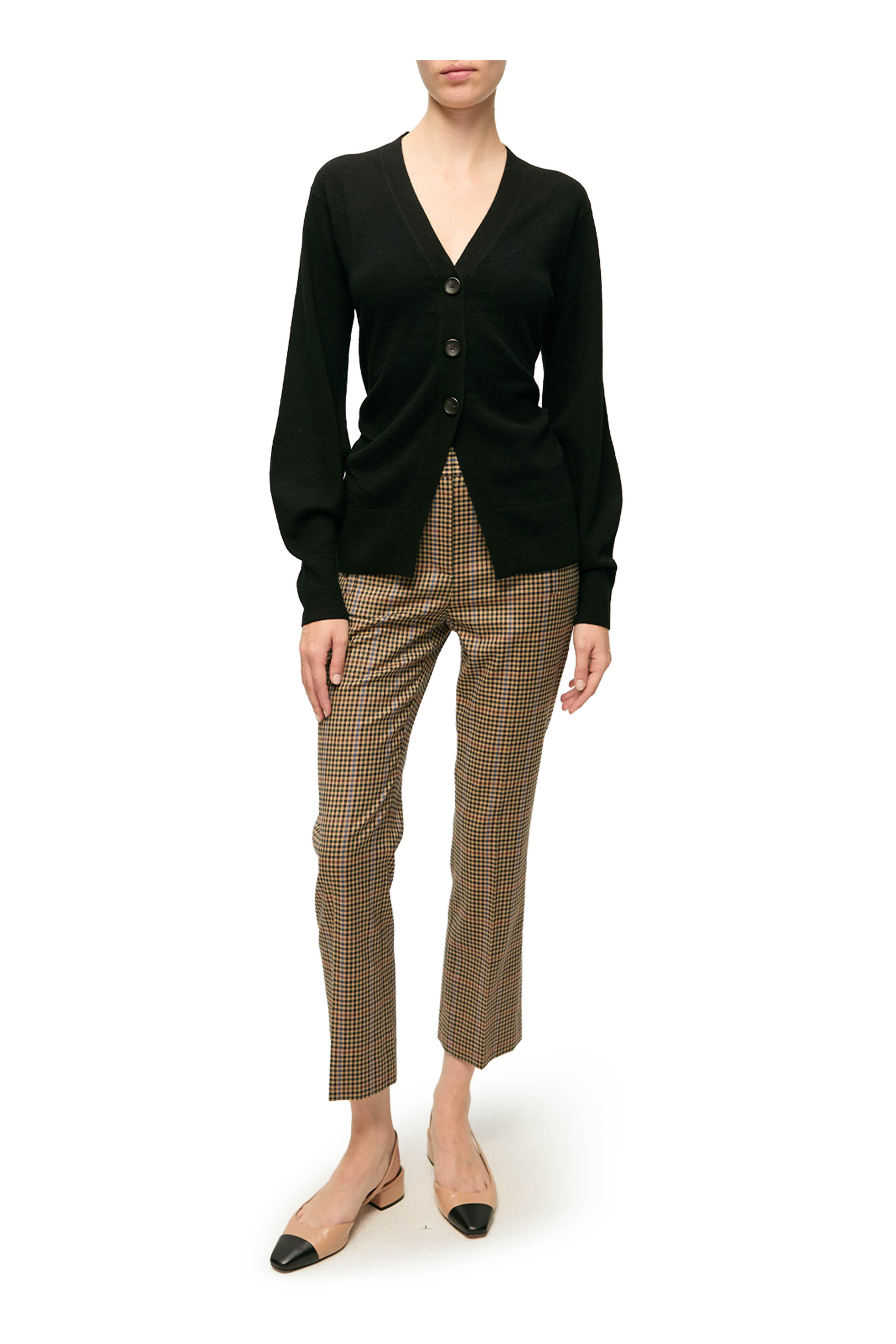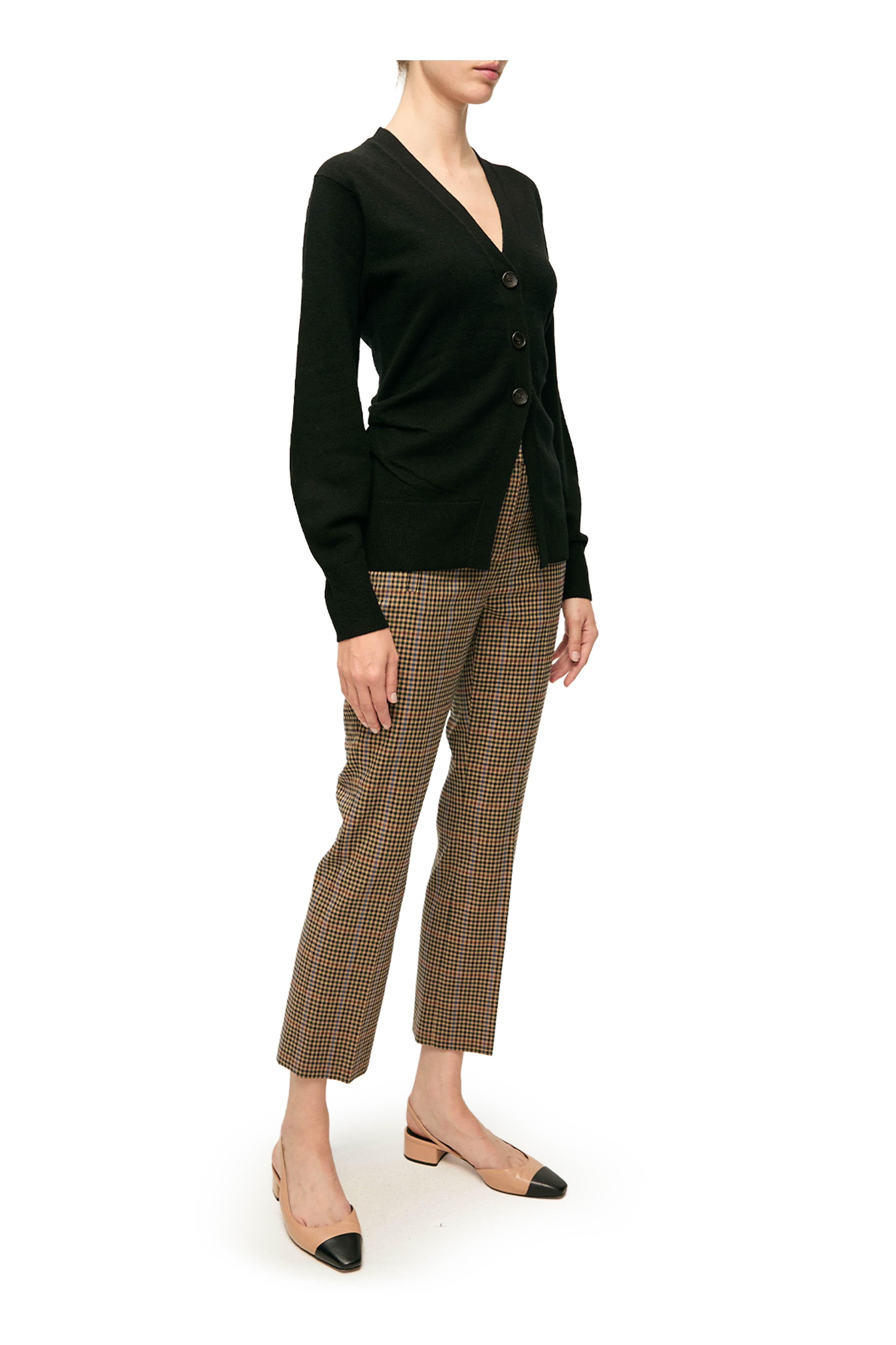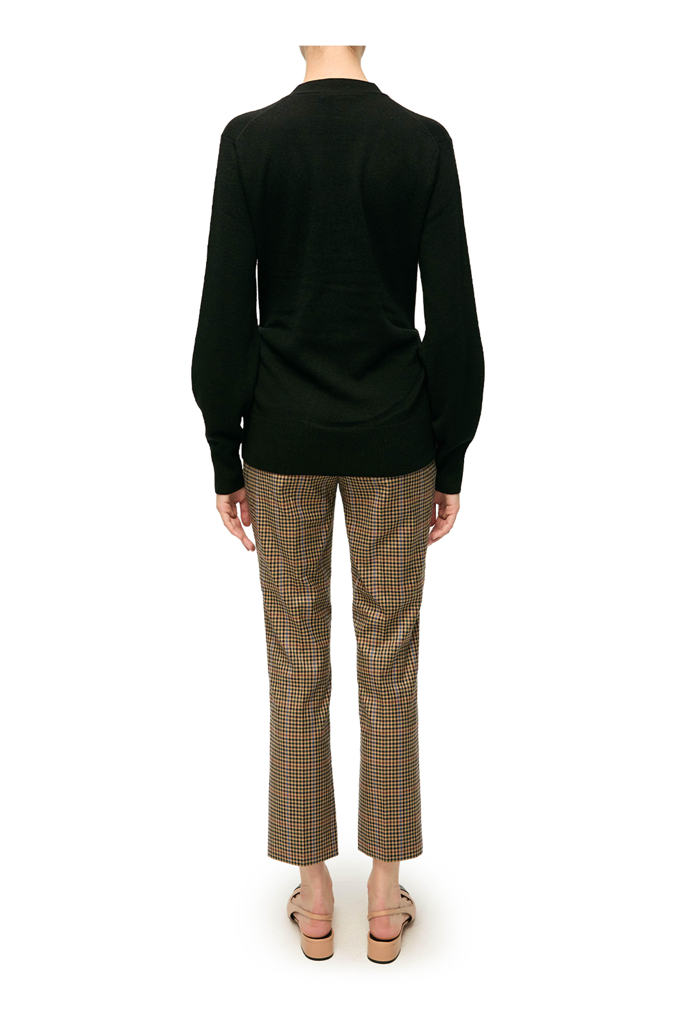 V-neckline. Partial front button placket. Ruching at sides. Oversized blouson sleeves. Ribbed knit trim. Imported. Approximately 25" shoulder to hem (measurements taken from size XS). 100% cashmere. Dry clean.