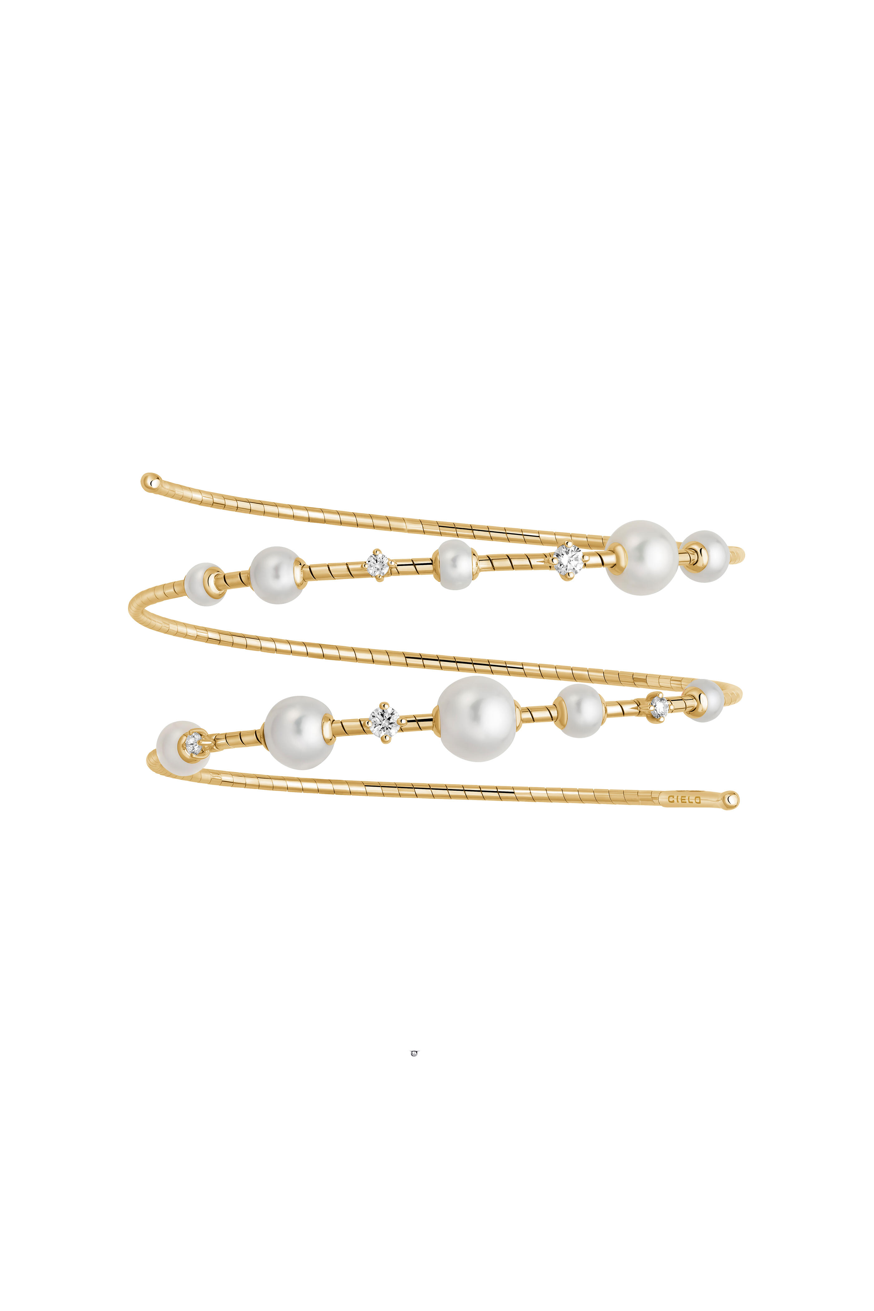 18k Yellow Gold. 0.3 ct Diamond (G/VS). 10 Pearls. 2 Row.