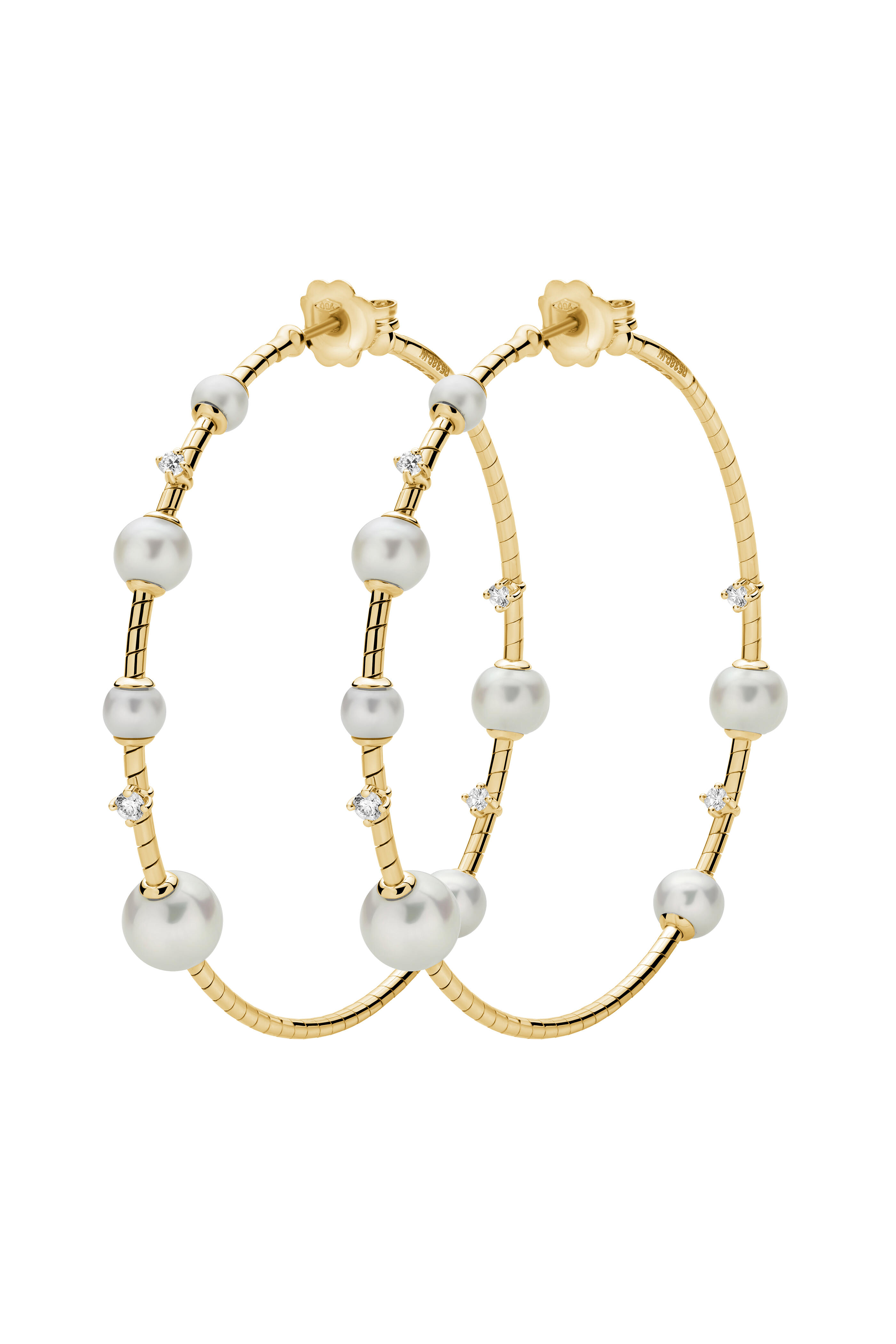 18k Yellow Gold. Pearl. 0.26 ct Diamond (G/VS). 2".