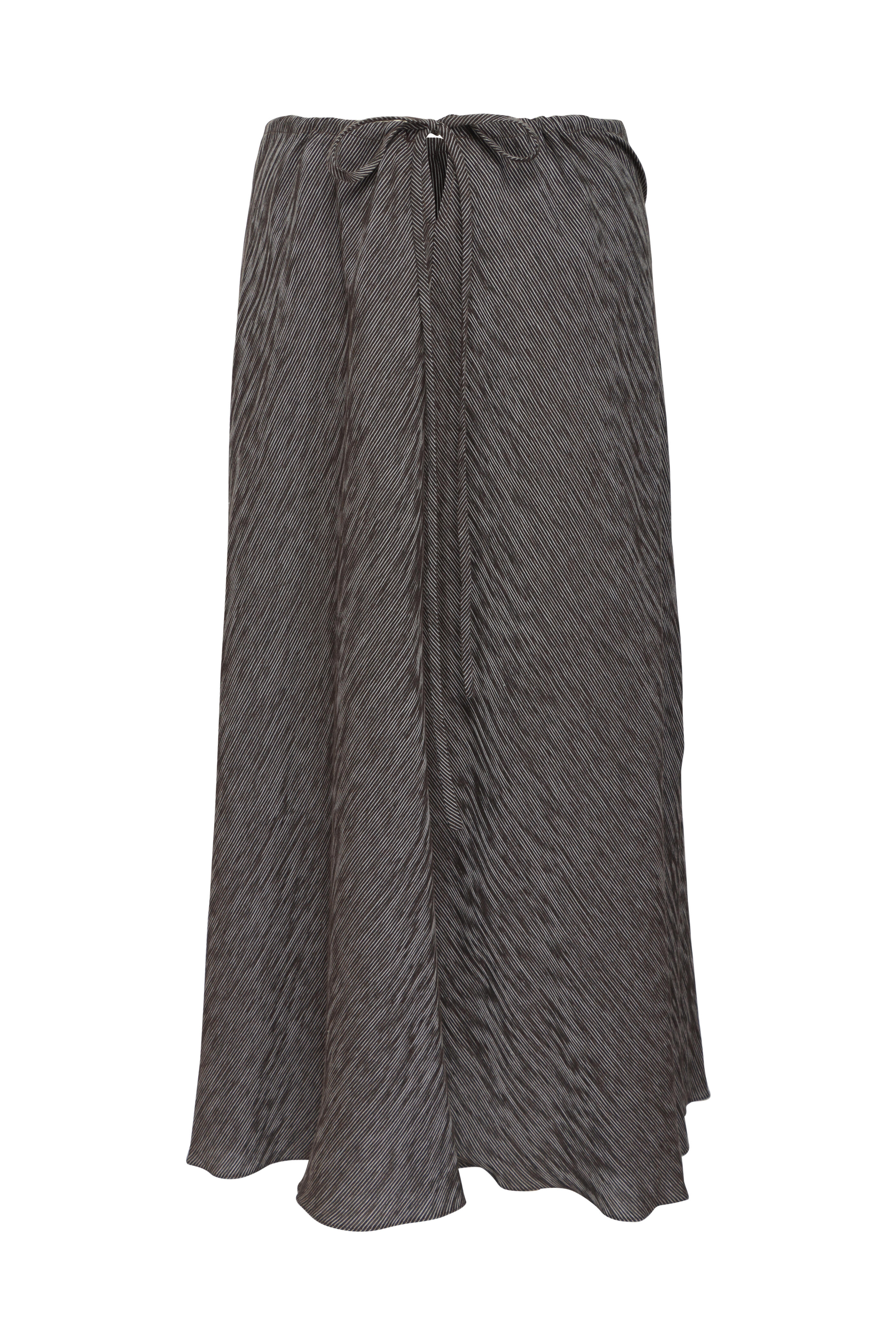 Mid rise. Self-tie drawstring waist. Aline silhouette. Made in USA. Midi length. 100% cotton. Dry clean.
