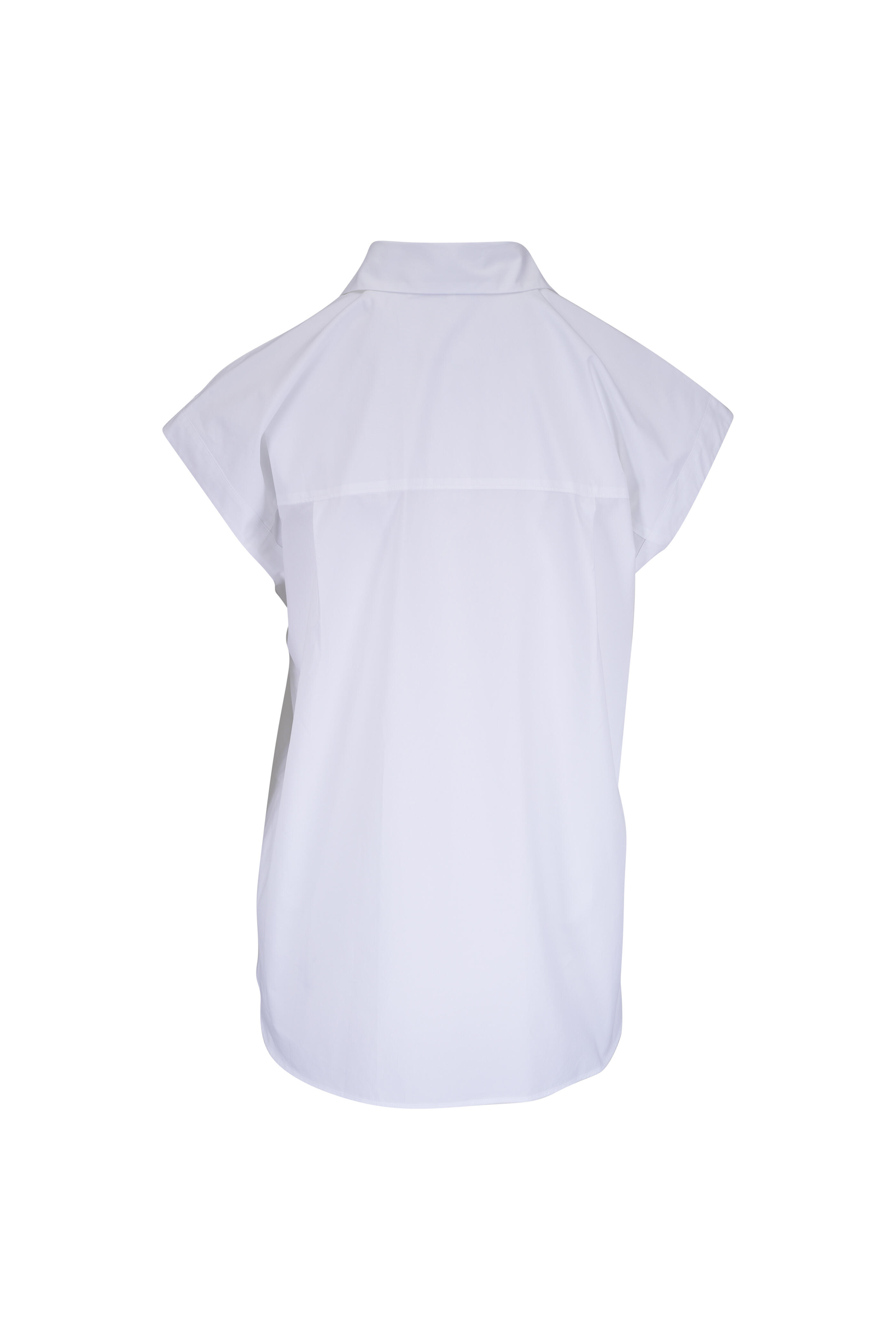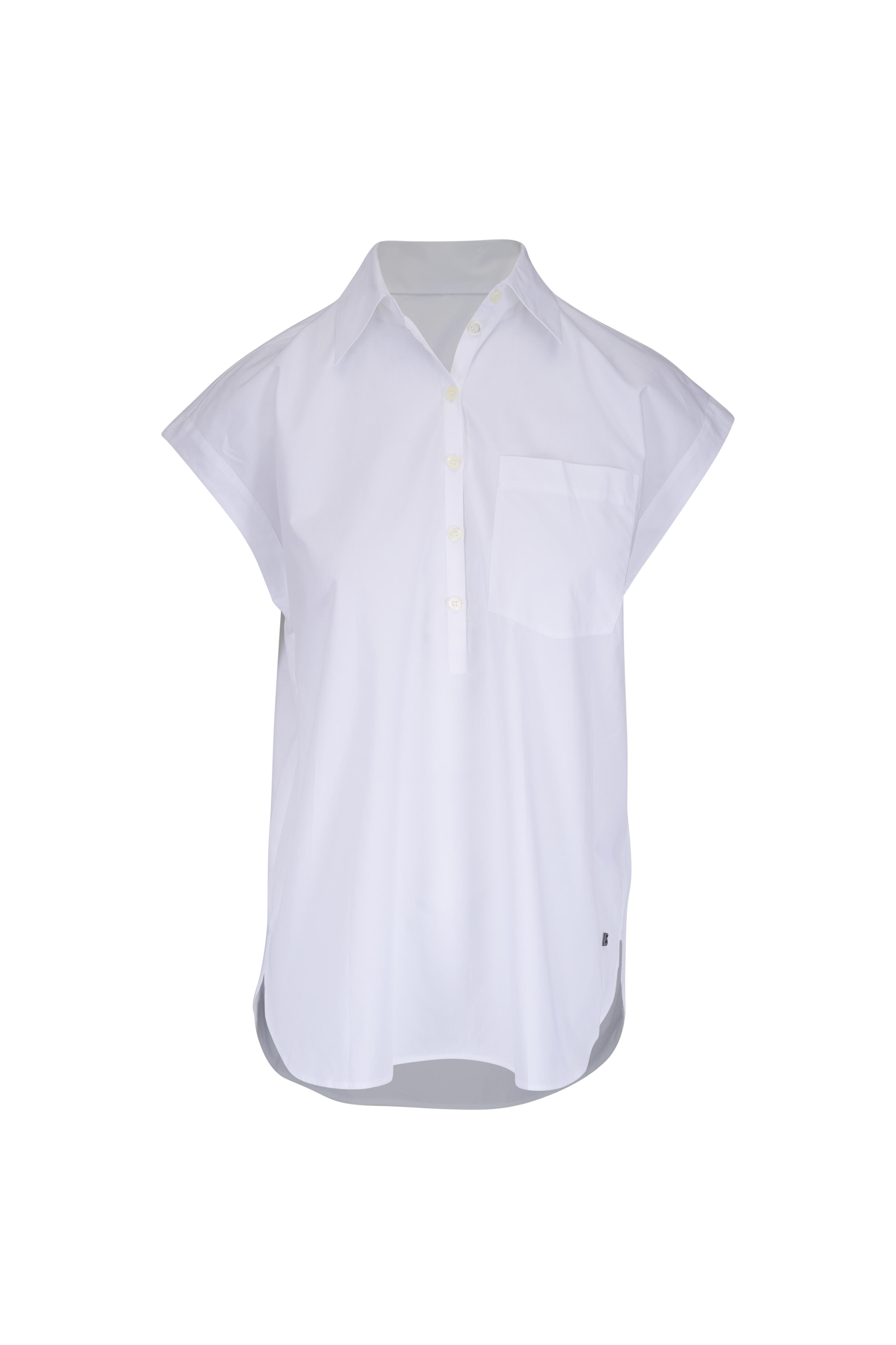 Spread collar. Front button placket. Chest patch pocket. Slightly longer hem at the back. Side slit. Imported. 100% cotton. Machine wash.