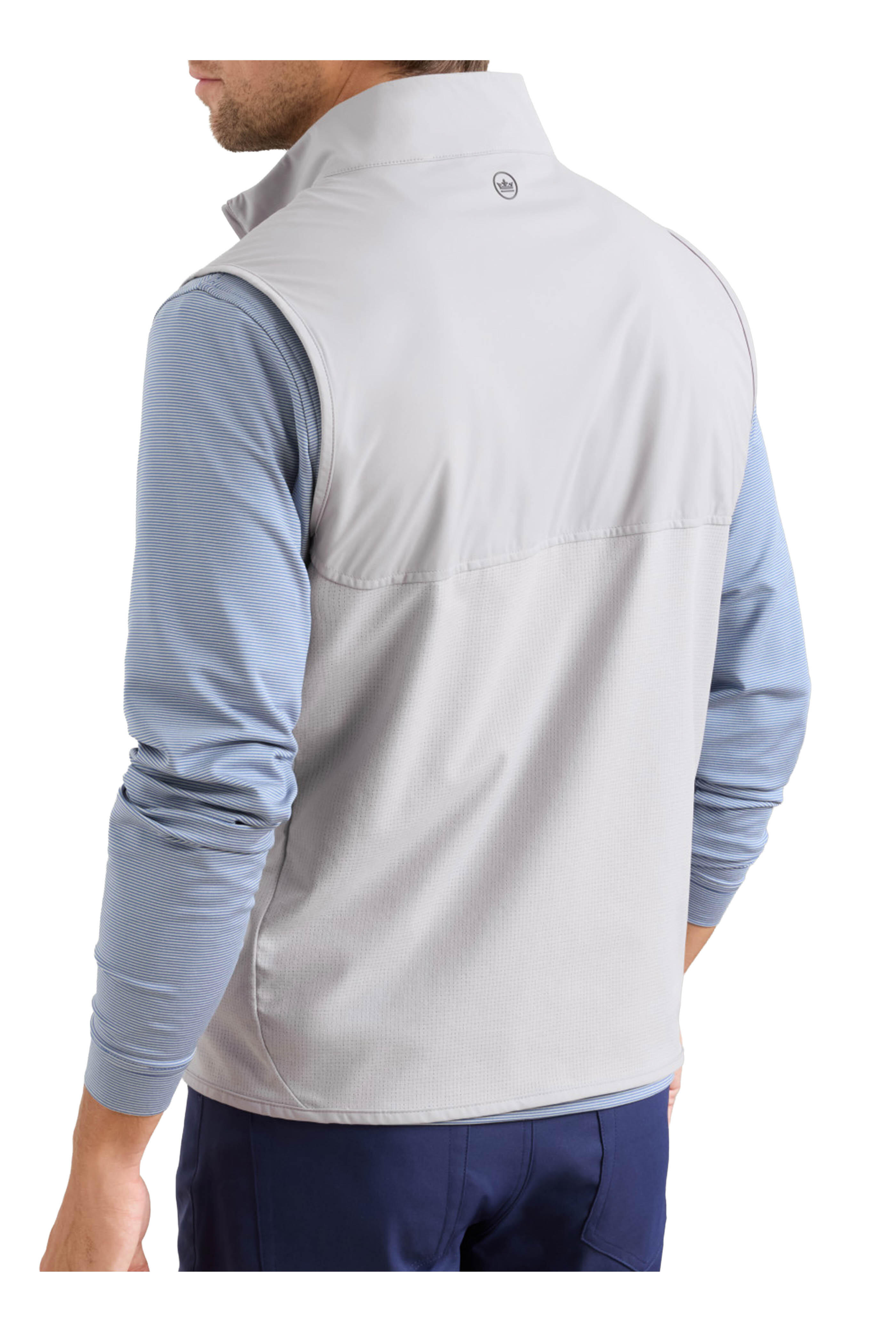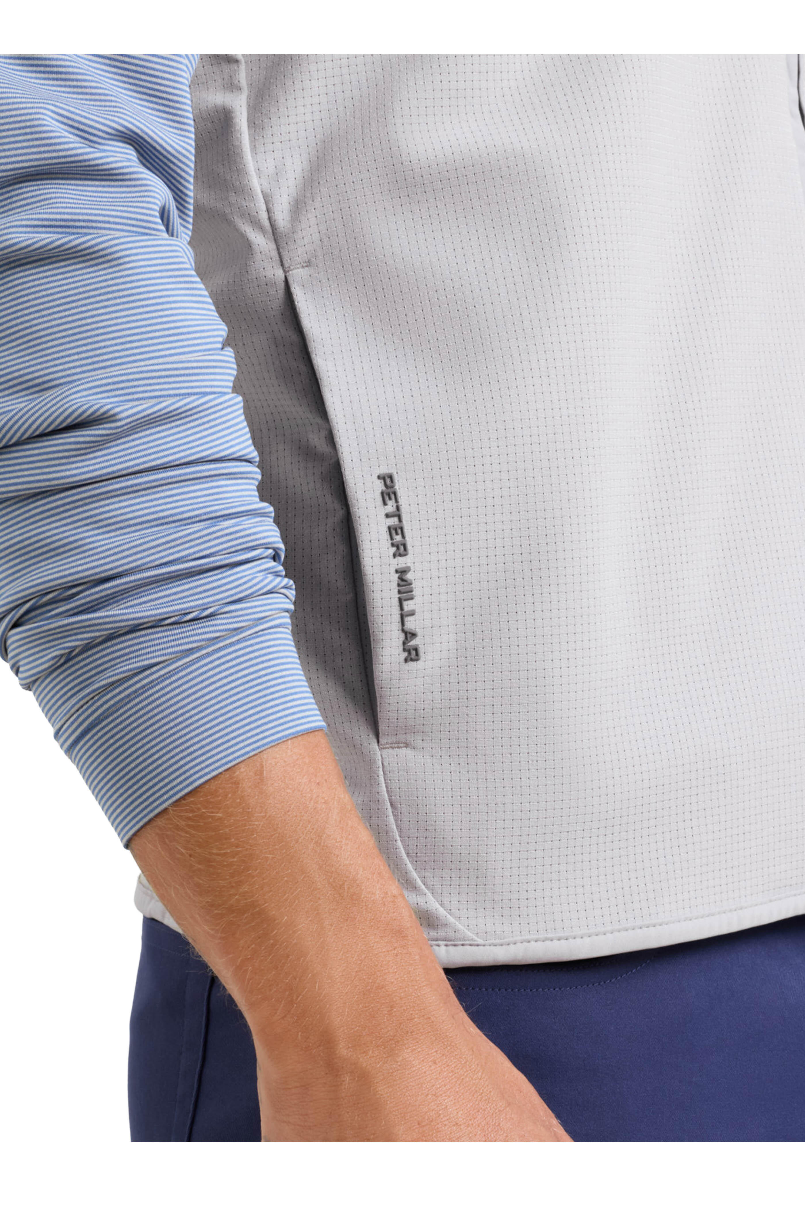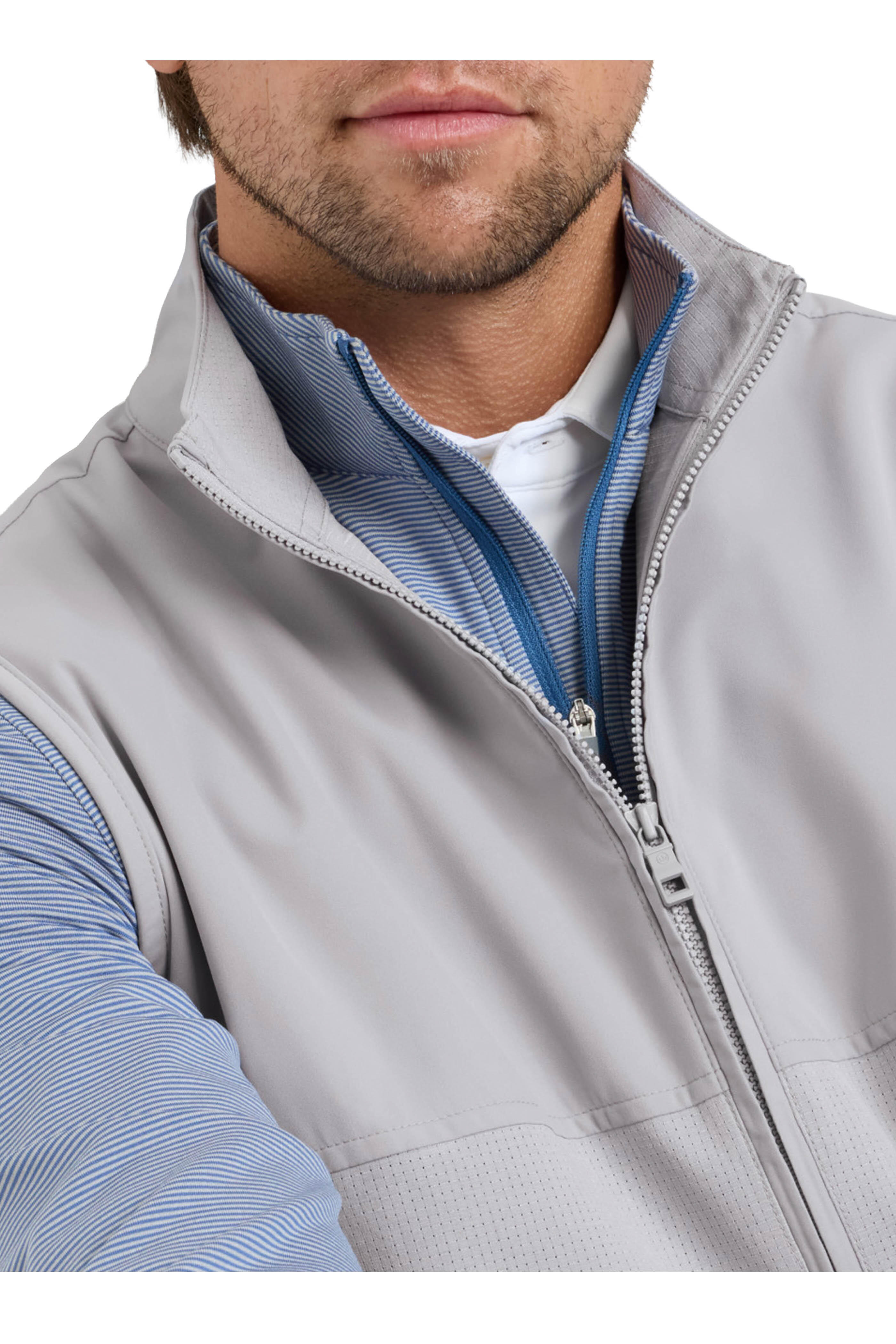 Stand collar. Two-way front zip placket. Lower waist slip pockets; internal slip pockets. Straight hem. Imported. Shoulder to hem 28" (size l). 98% polyester, 2% spandex. Machine wash.