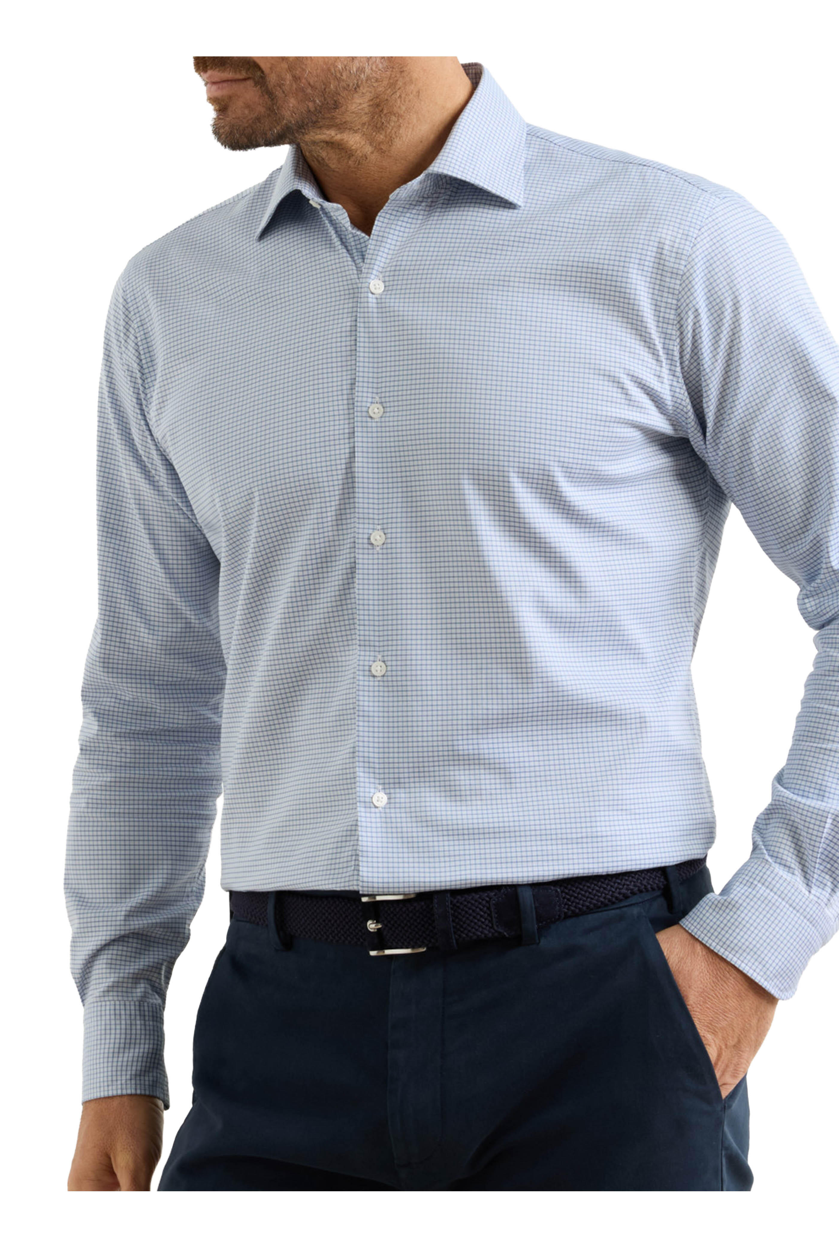Conway Crown Lite Windsor Blue Check Sport Shirt