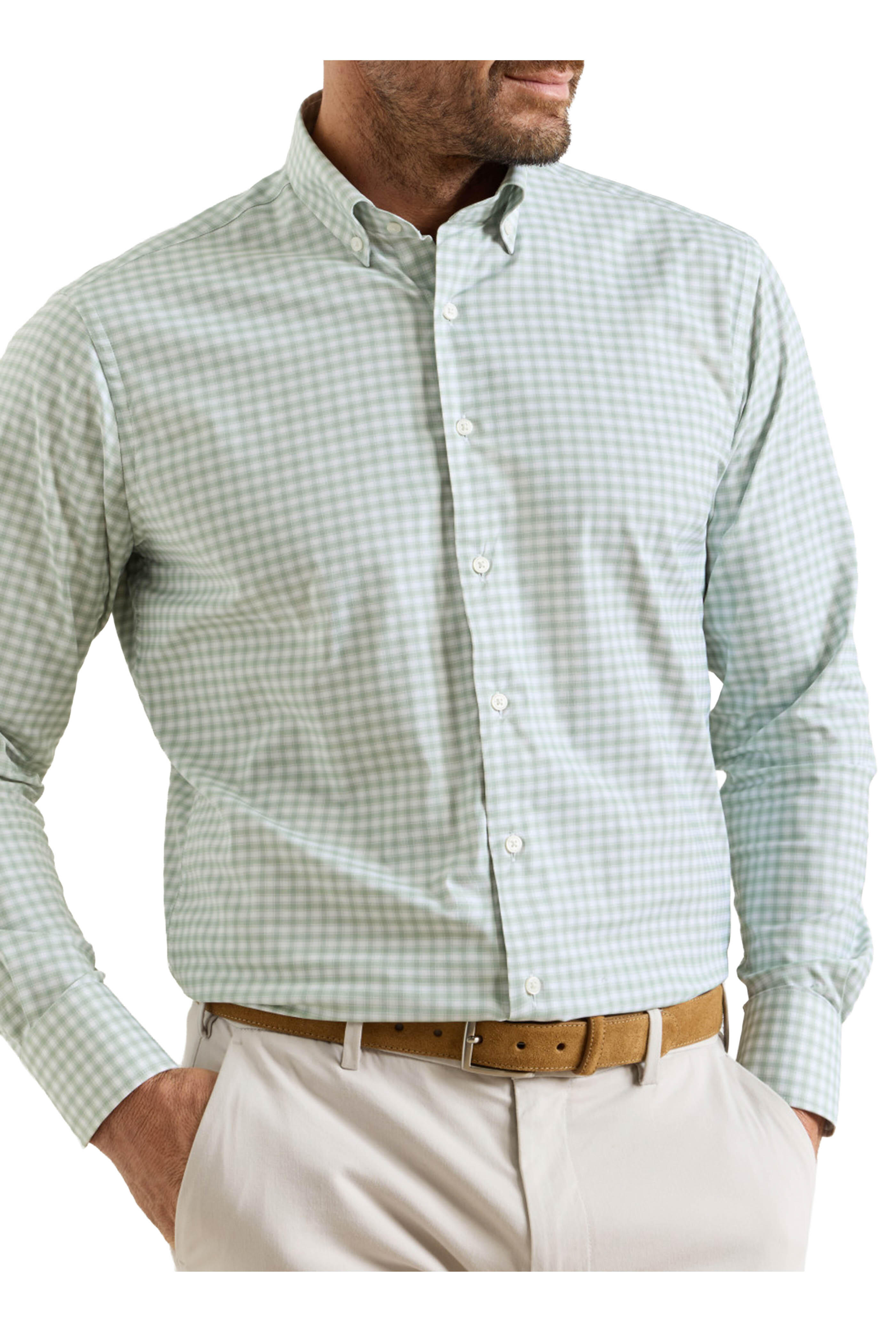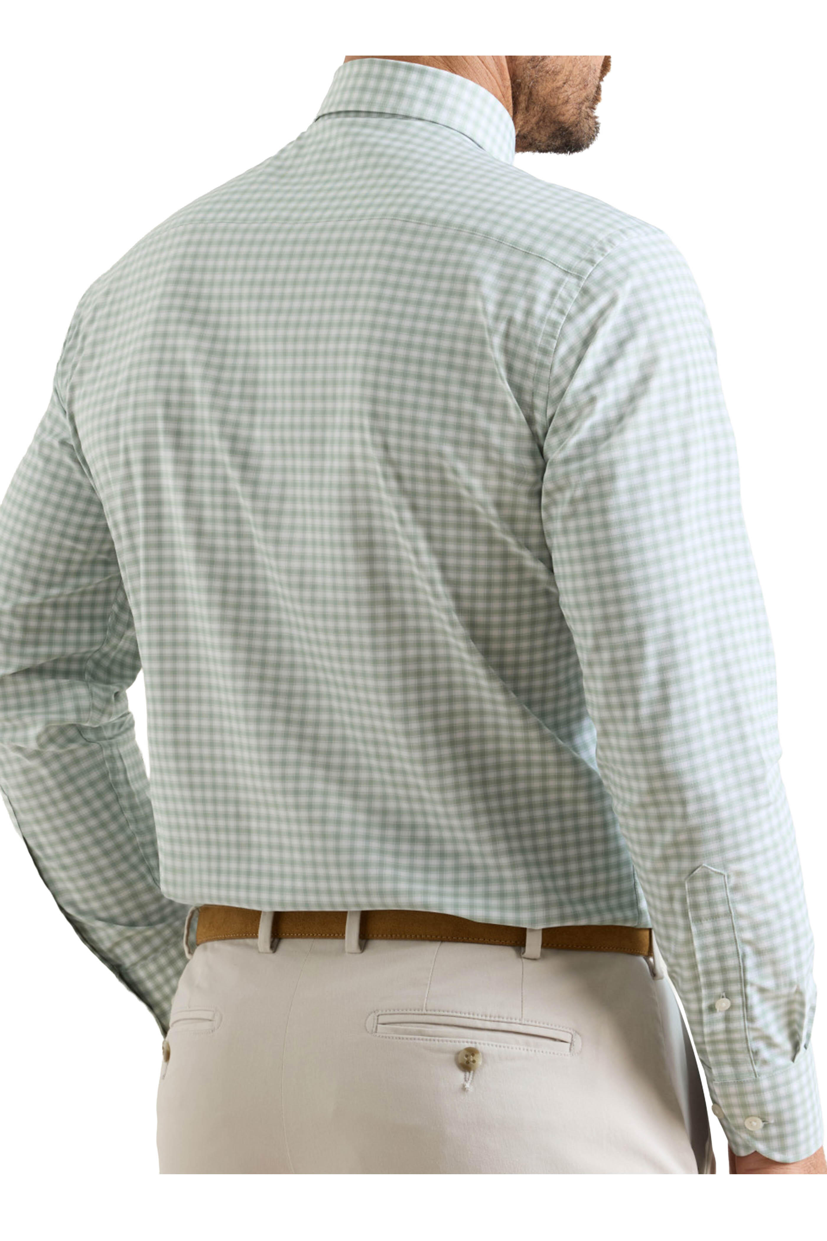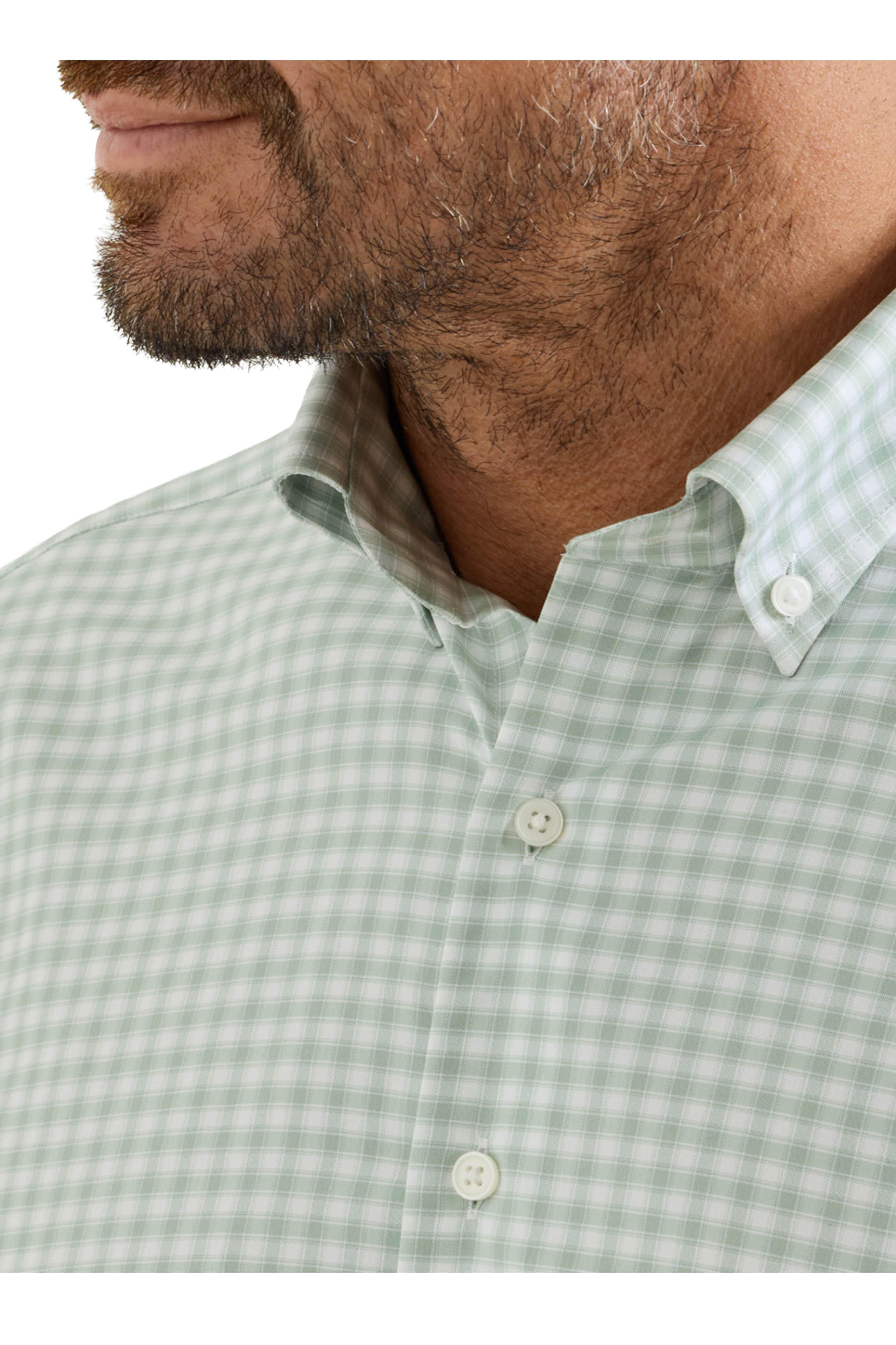 Button down collar. French front button placket. Single button adjustable barrel cuffs. Two-way stretch, wicking and UPF 50+ sun protection. Imported. Classic fit. 52% nylon, 43% polyester, 5% spandex. Machine wash.